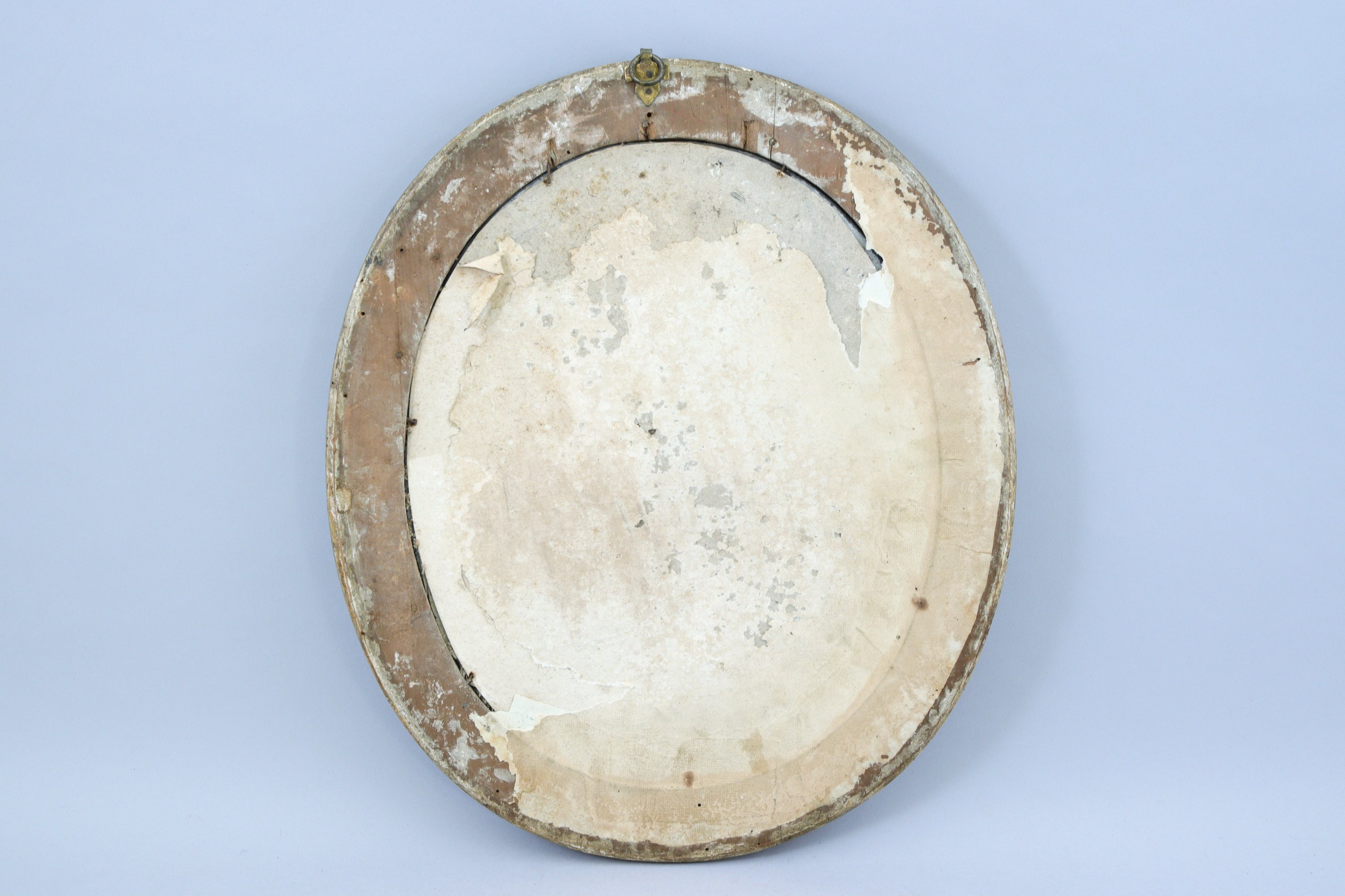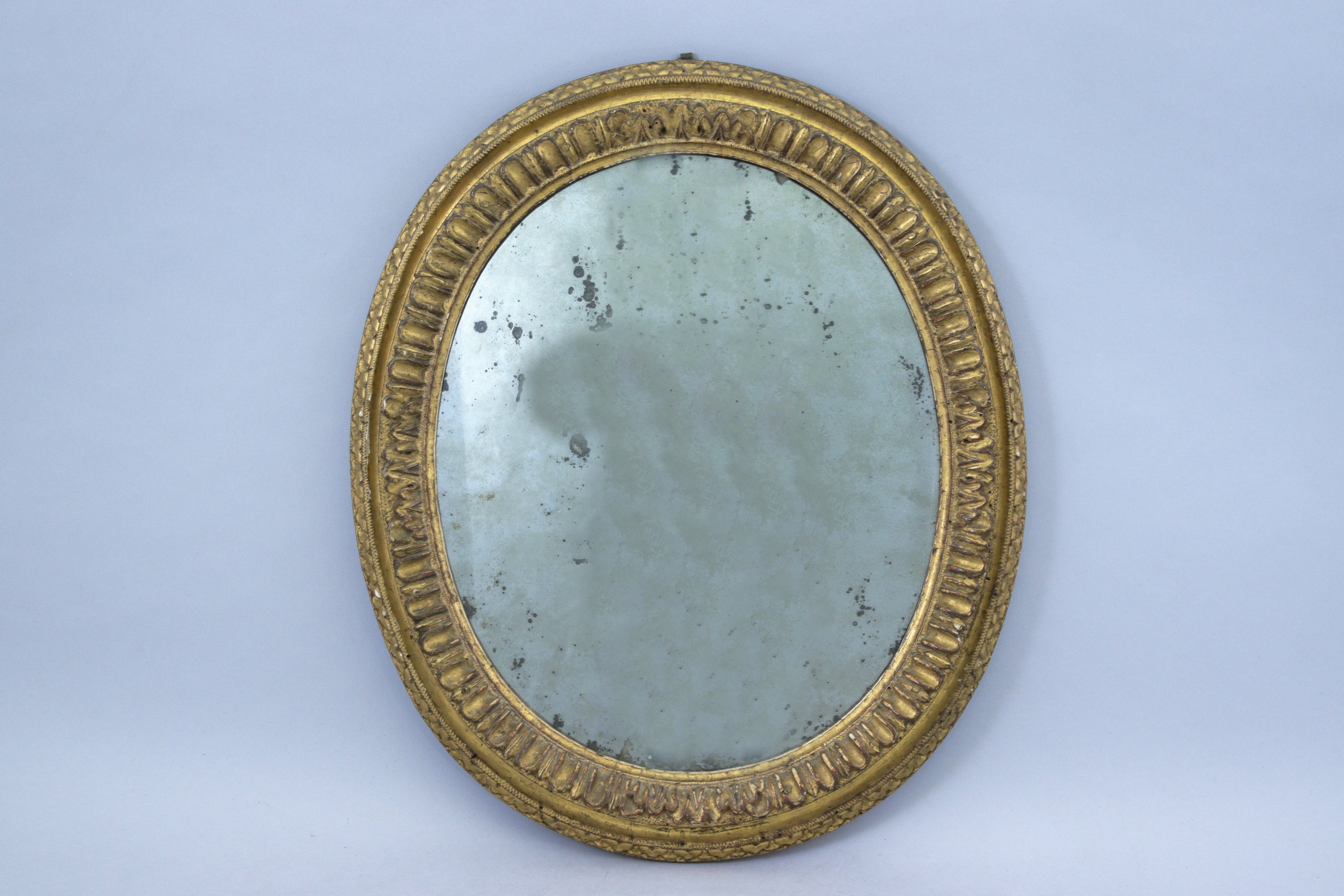 Miroir ovale en bois doré, mouluré et sculpté à décor...