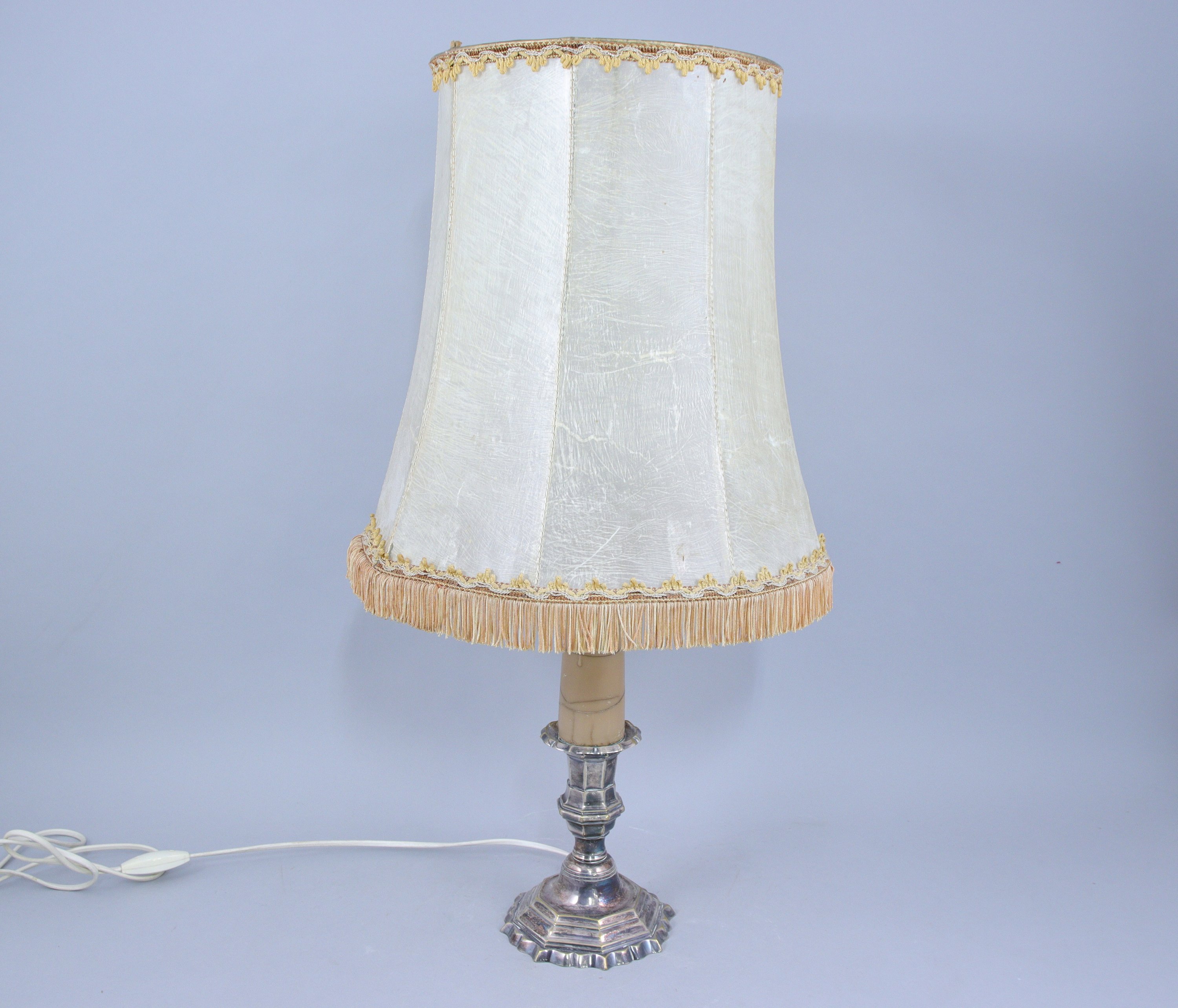 en métal argenté. Le fût octogonal reposant sur une base en cloche à succession de doucines.