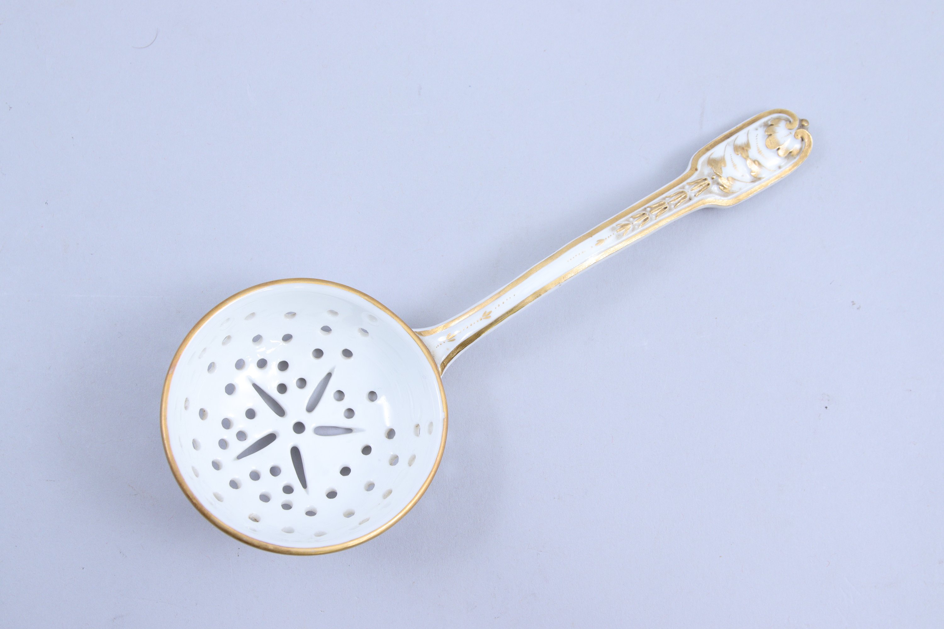 modèle à filet coquille en porcelaine à décor doré et en relief de feuilles. Le cuilleron à motif d'étoile à cinq branches.