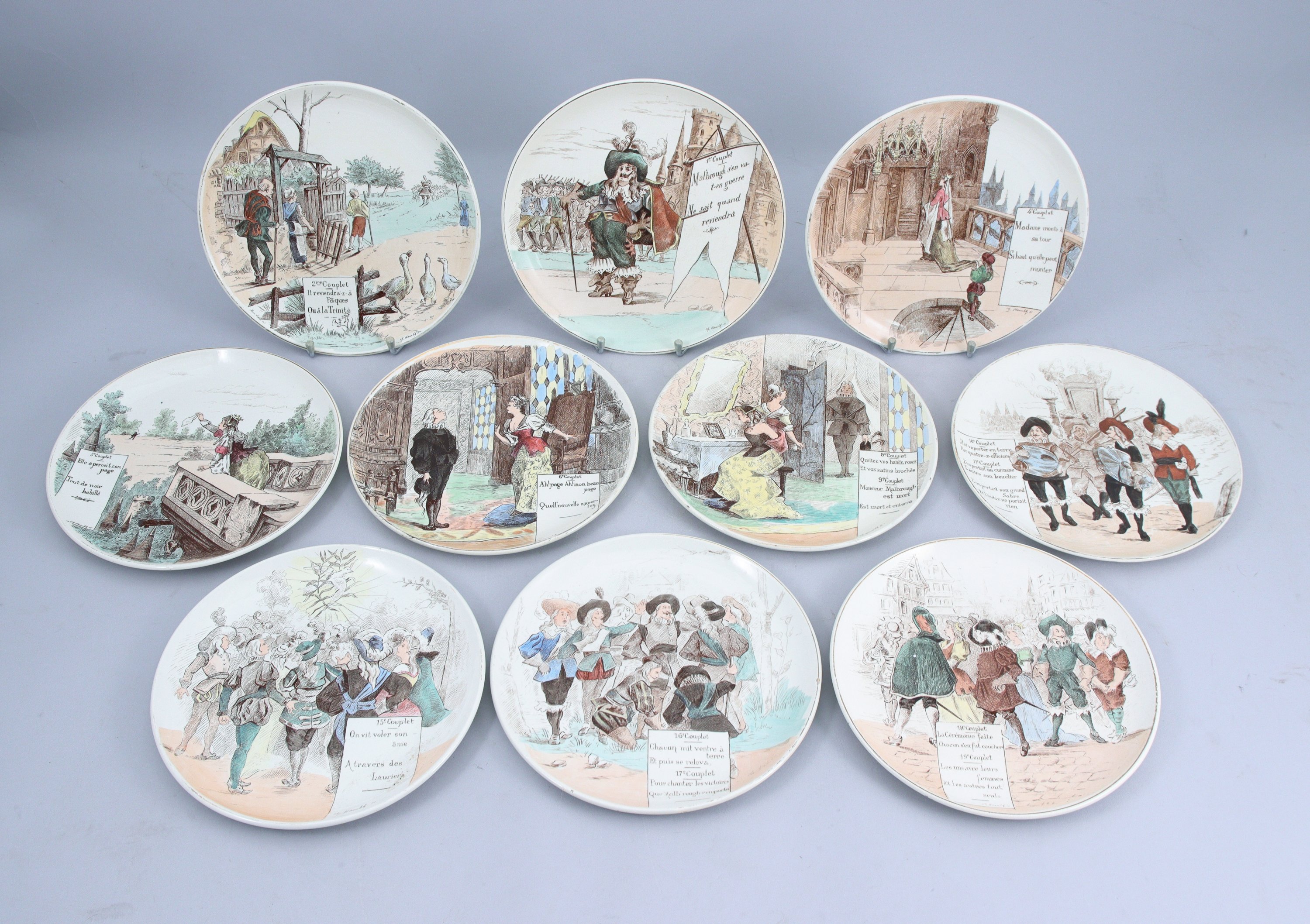 Suite de dix assiettes en faïence à décor imprimé polychrome illustrant les paroles de la comptine