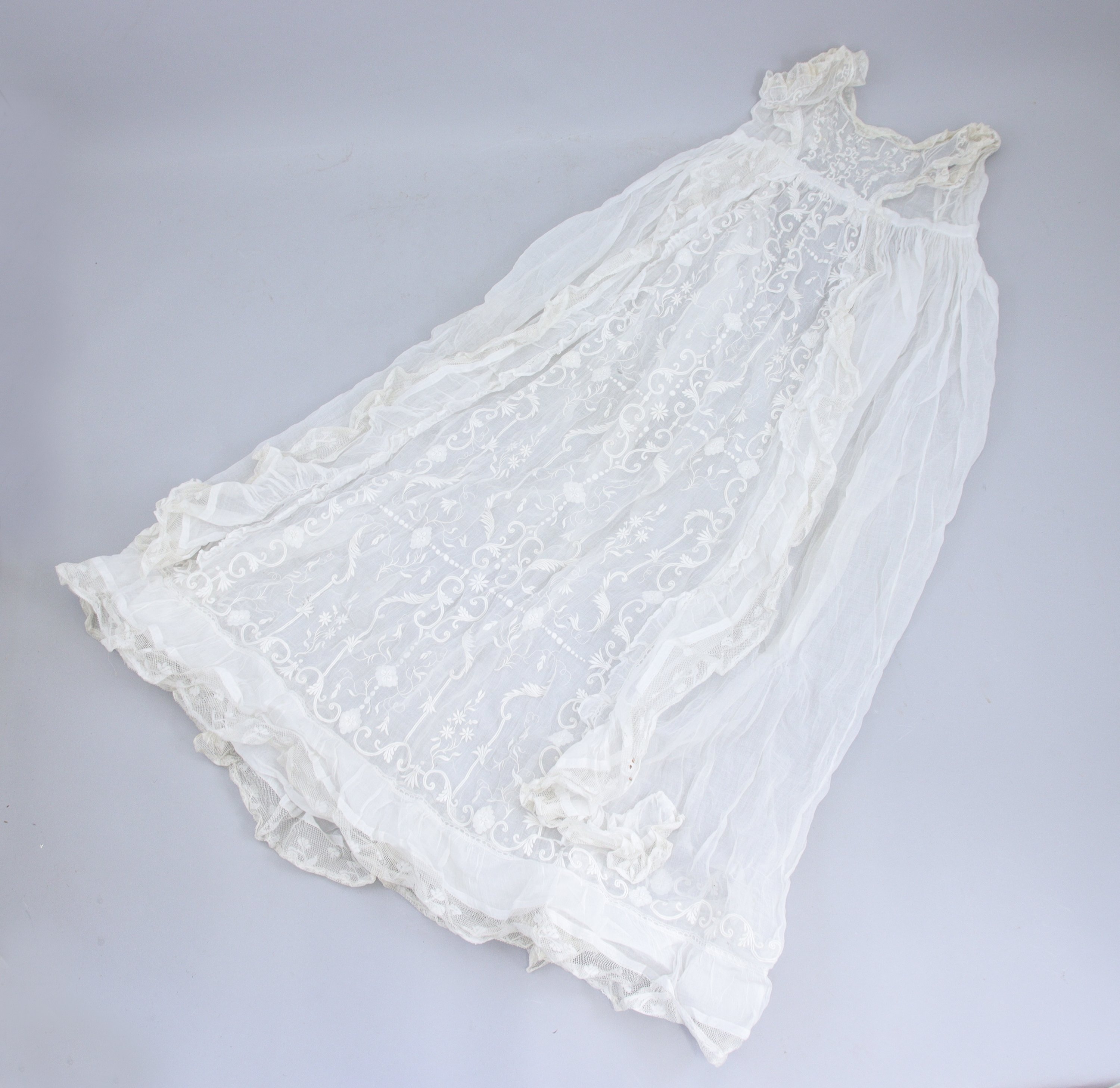 en coton et dentelle, brodée de fleurettes et rinceaux.