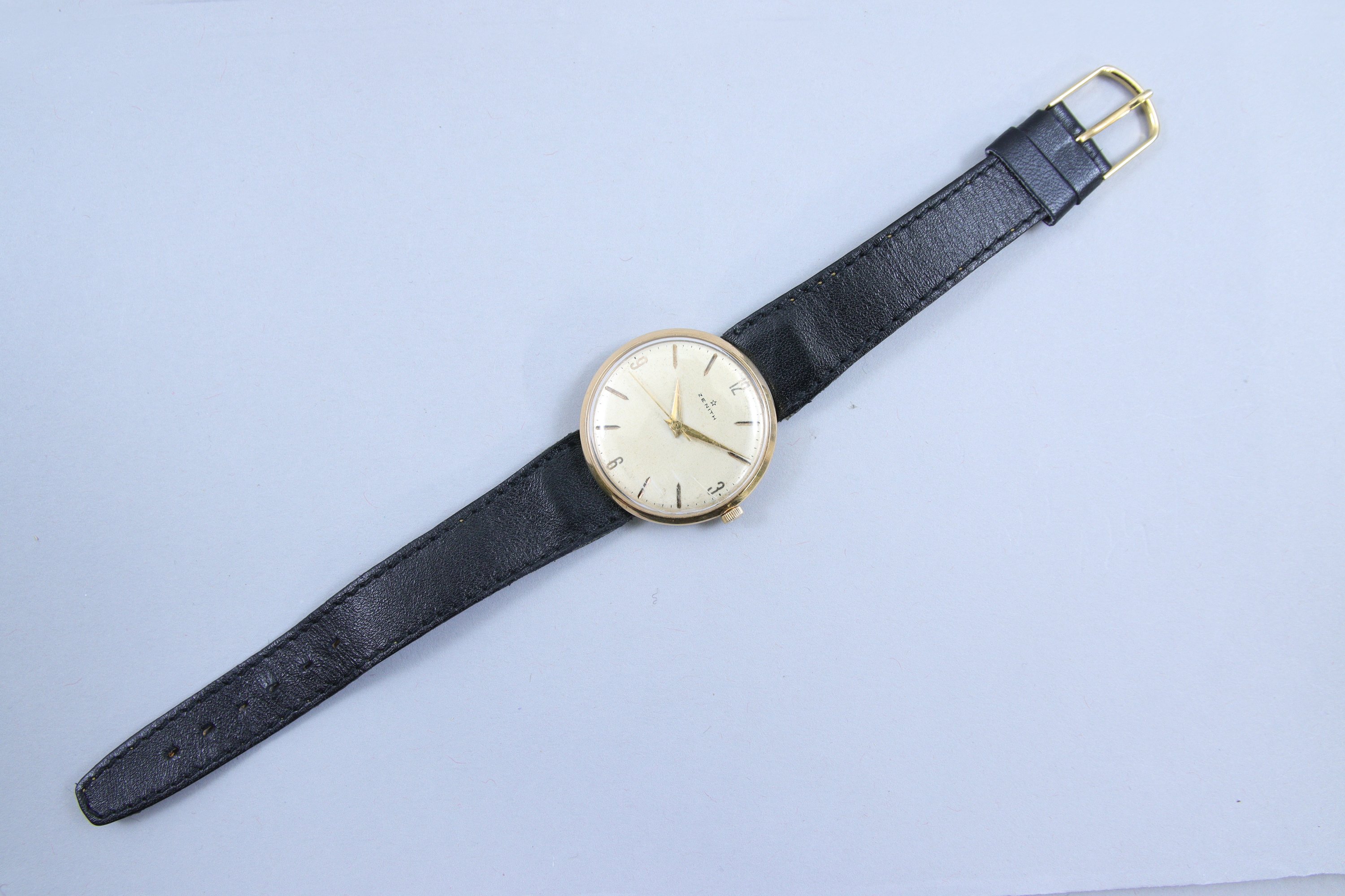 en or jaune 750 millièmes. Cadran signé avec index noir et or. Couronne signée. Anses soudées. Mouvement mécanique numéroté 653314.