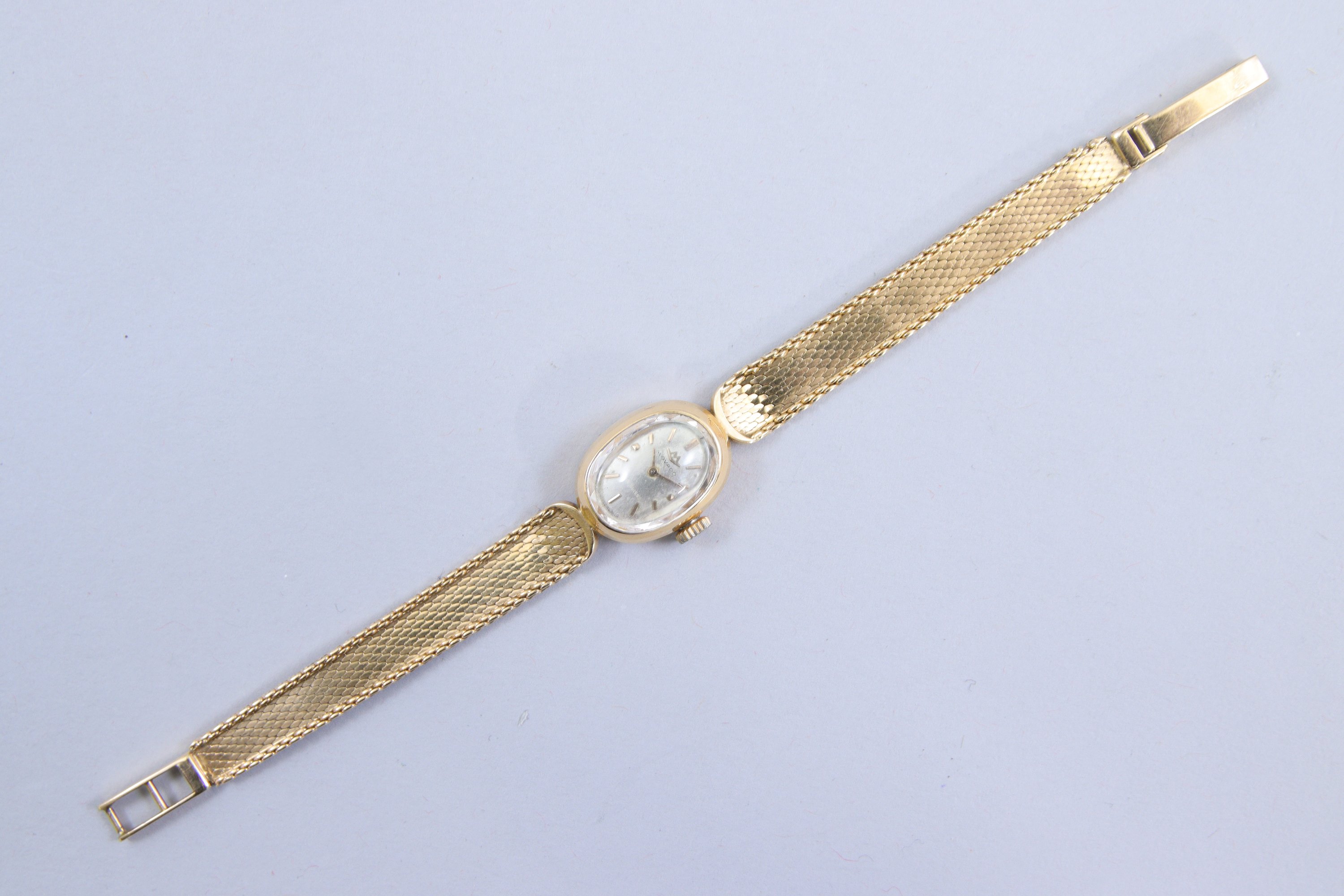 en or jaune 750 millièmes. Le boitier de forme ovale avec le remontoir à trois heures. Bracelet souple en or jaune 750 millièmes.