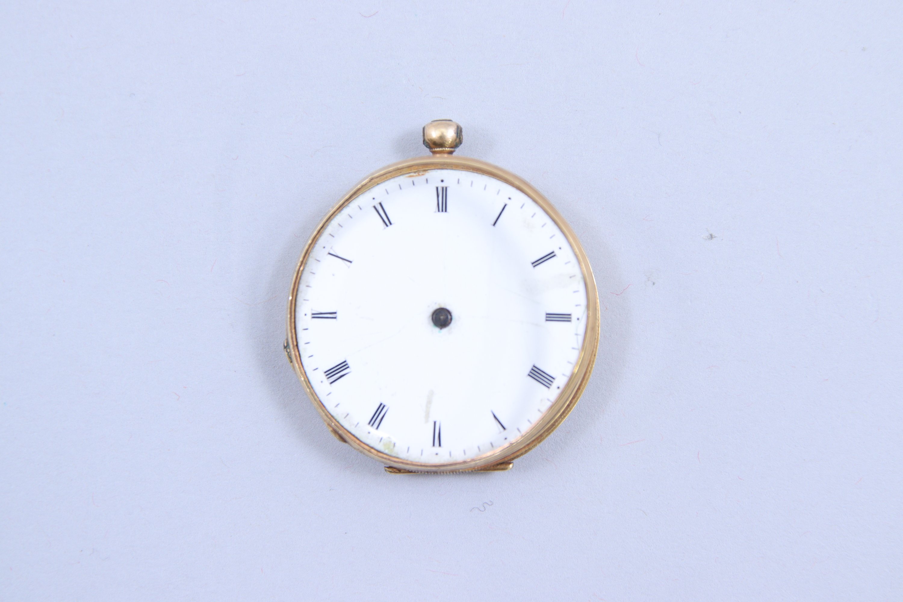 Joint: une montre de gousset à remontage par clé, en or jaune 750 millièmes. Poids brut: 23,57 gr. (en l'état).