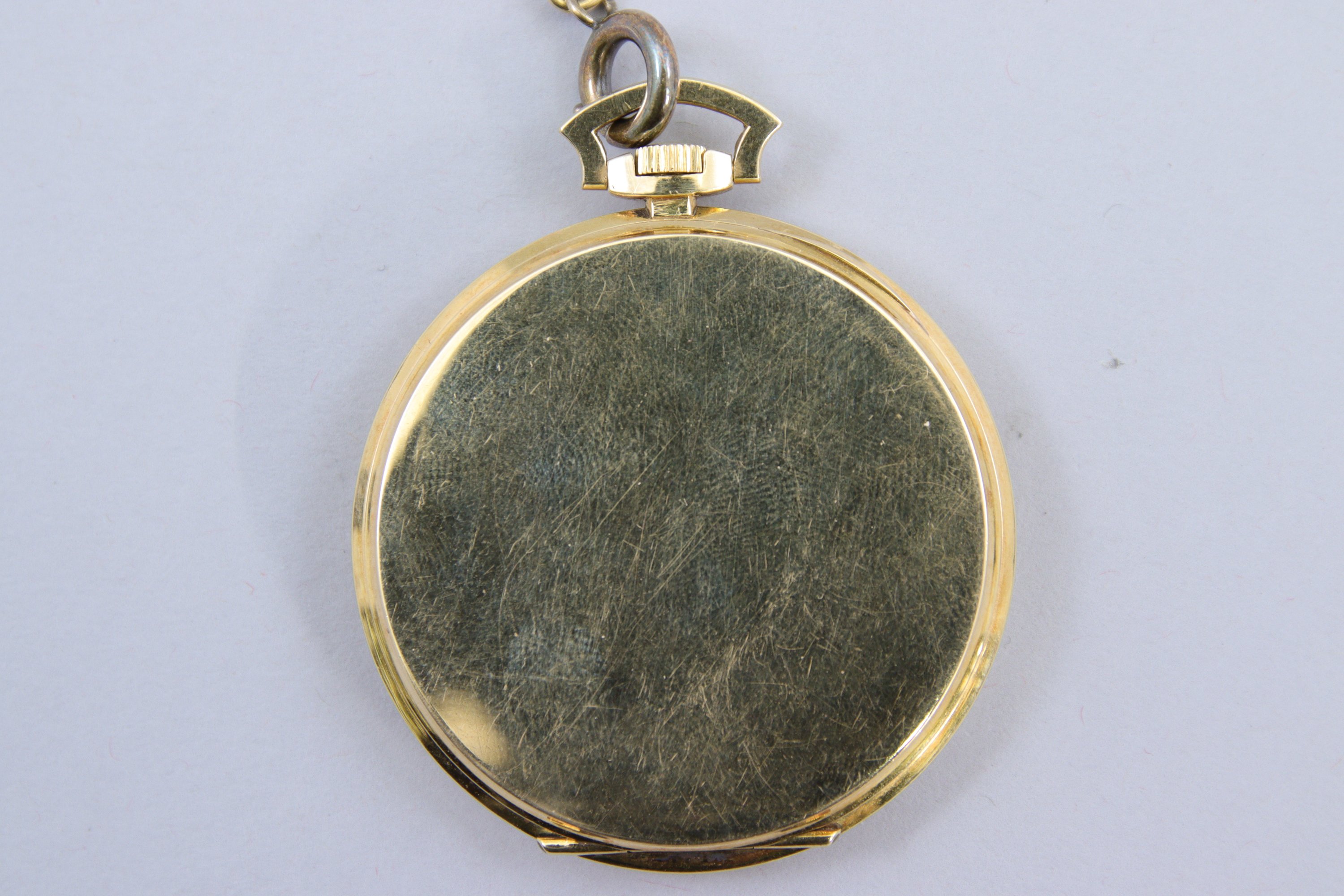 en or jaune 750 millièmes. Les heures en chiffres arabes, le cadran des secondes à six heures, remontoir à midi. Le cache-poussière daté "25 mai 1939".