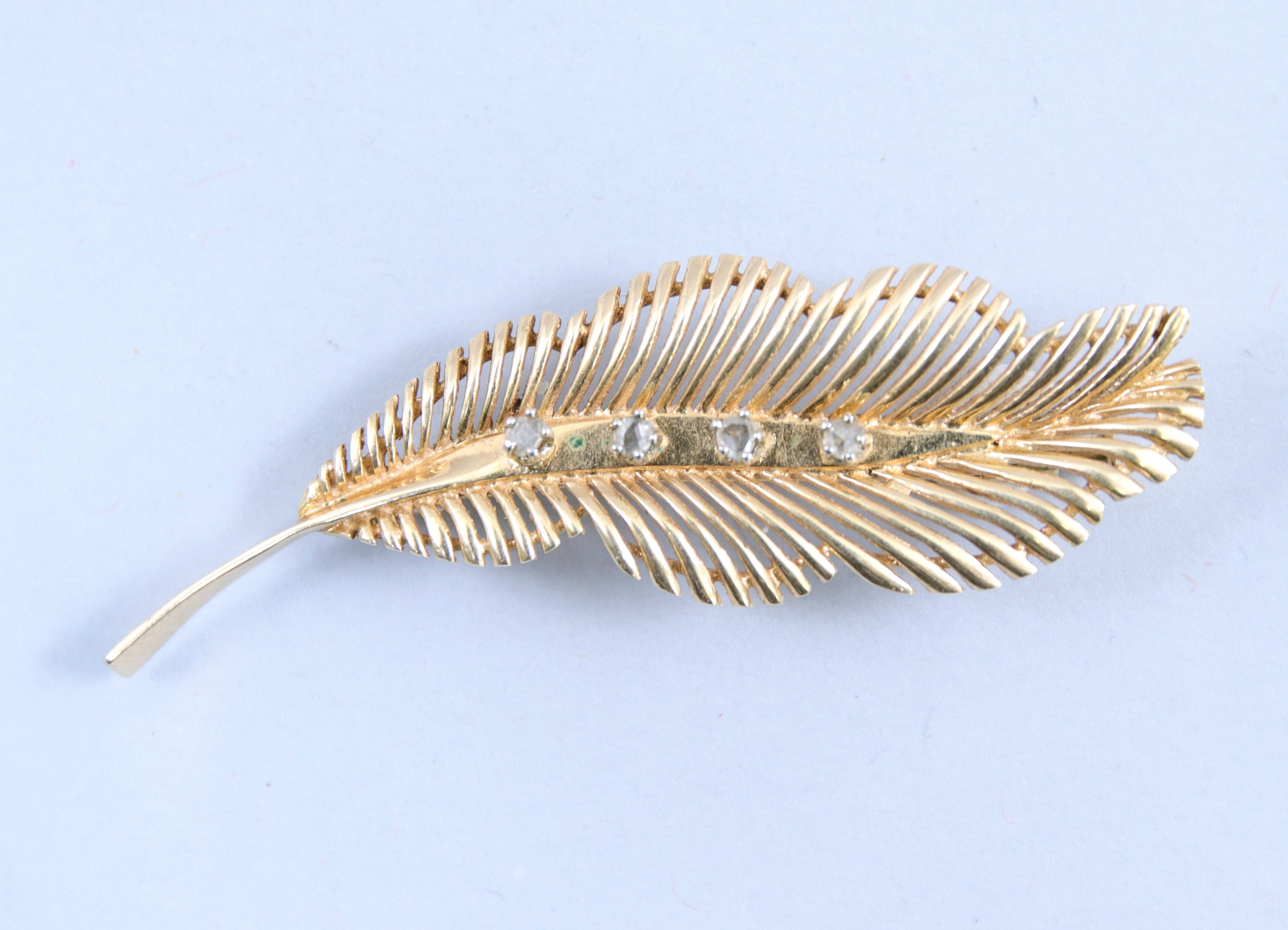 Broche plume en or jaune 750 millièmes,