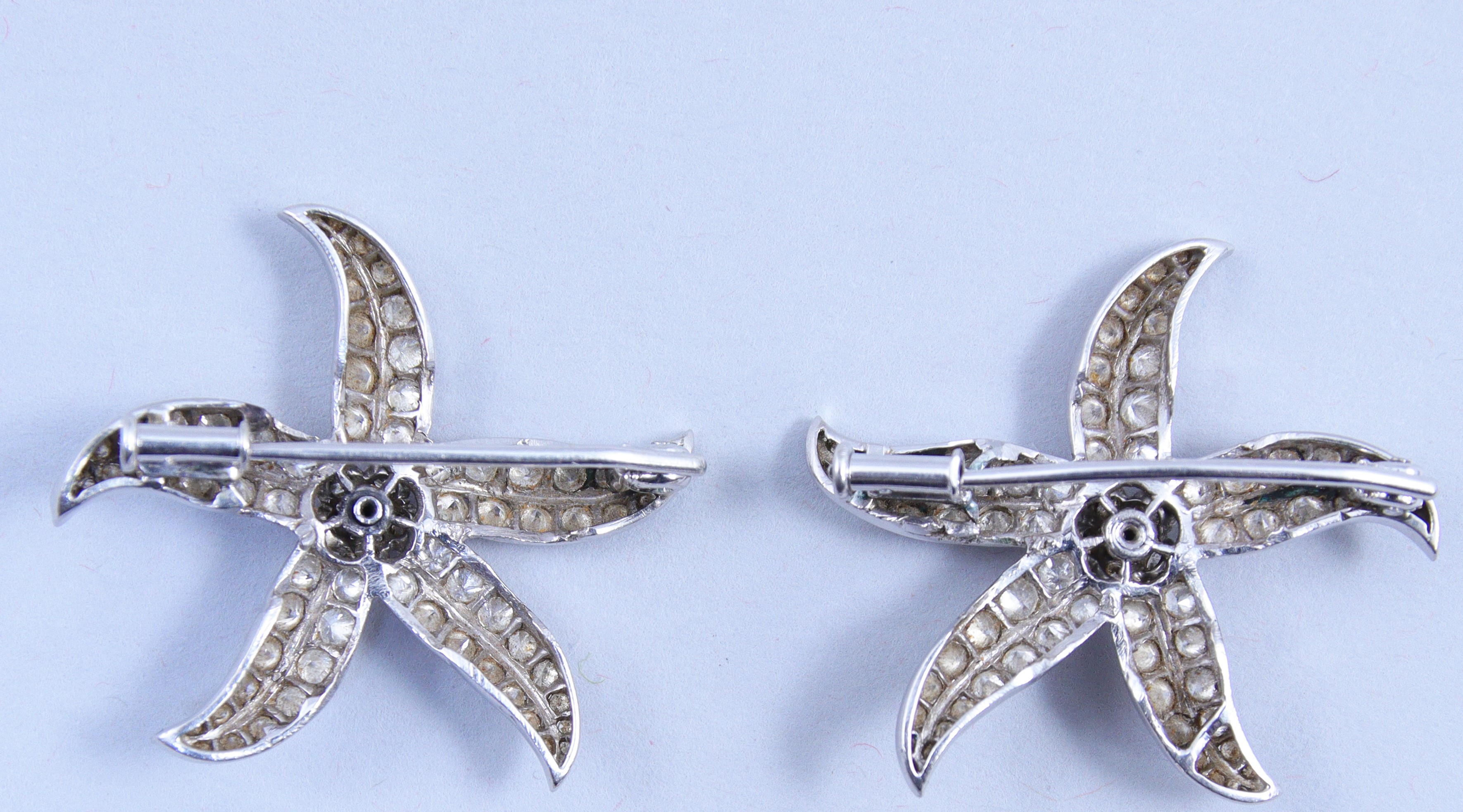 Paire de broches en or gris 750 millièmes à décor...