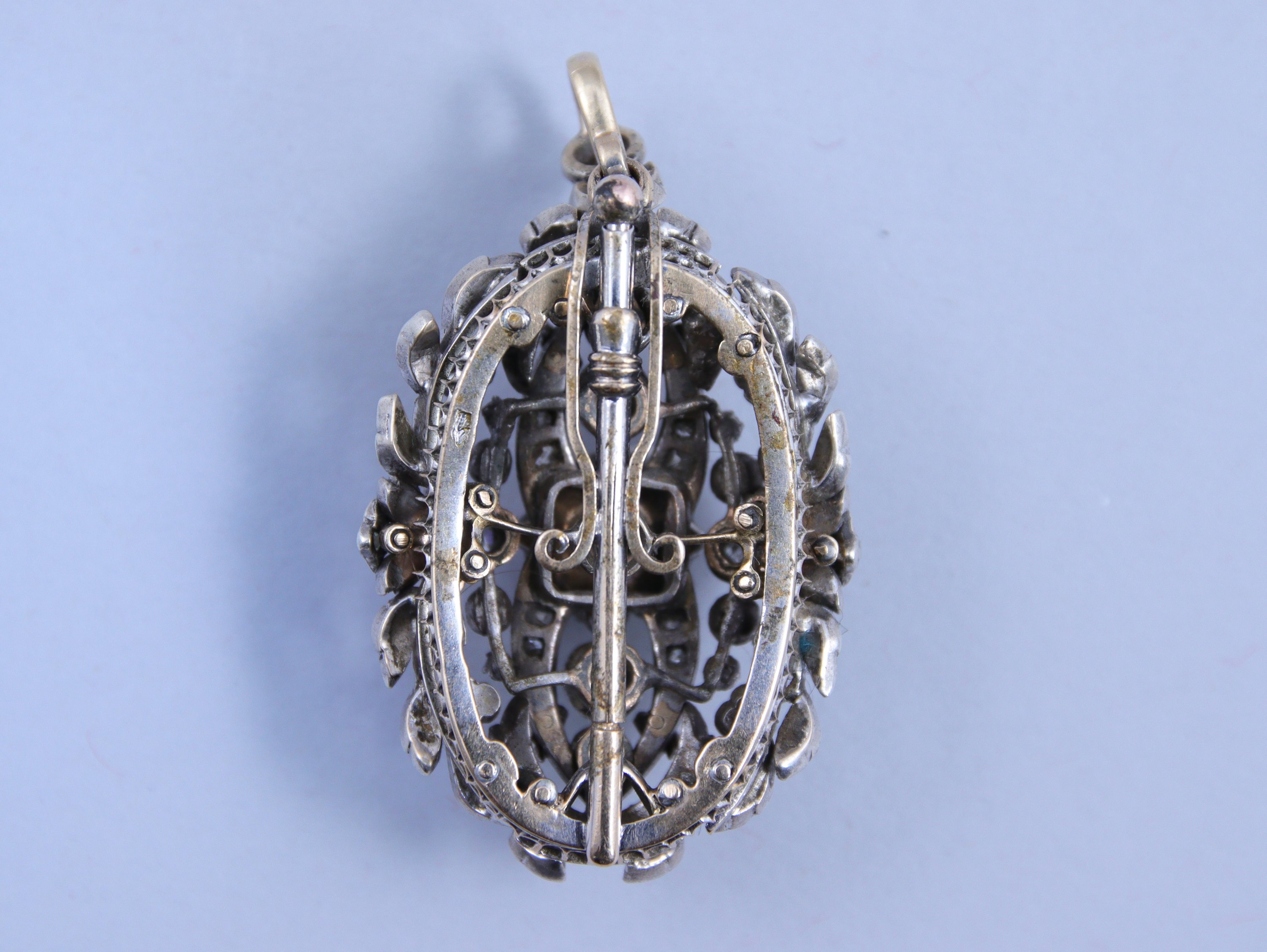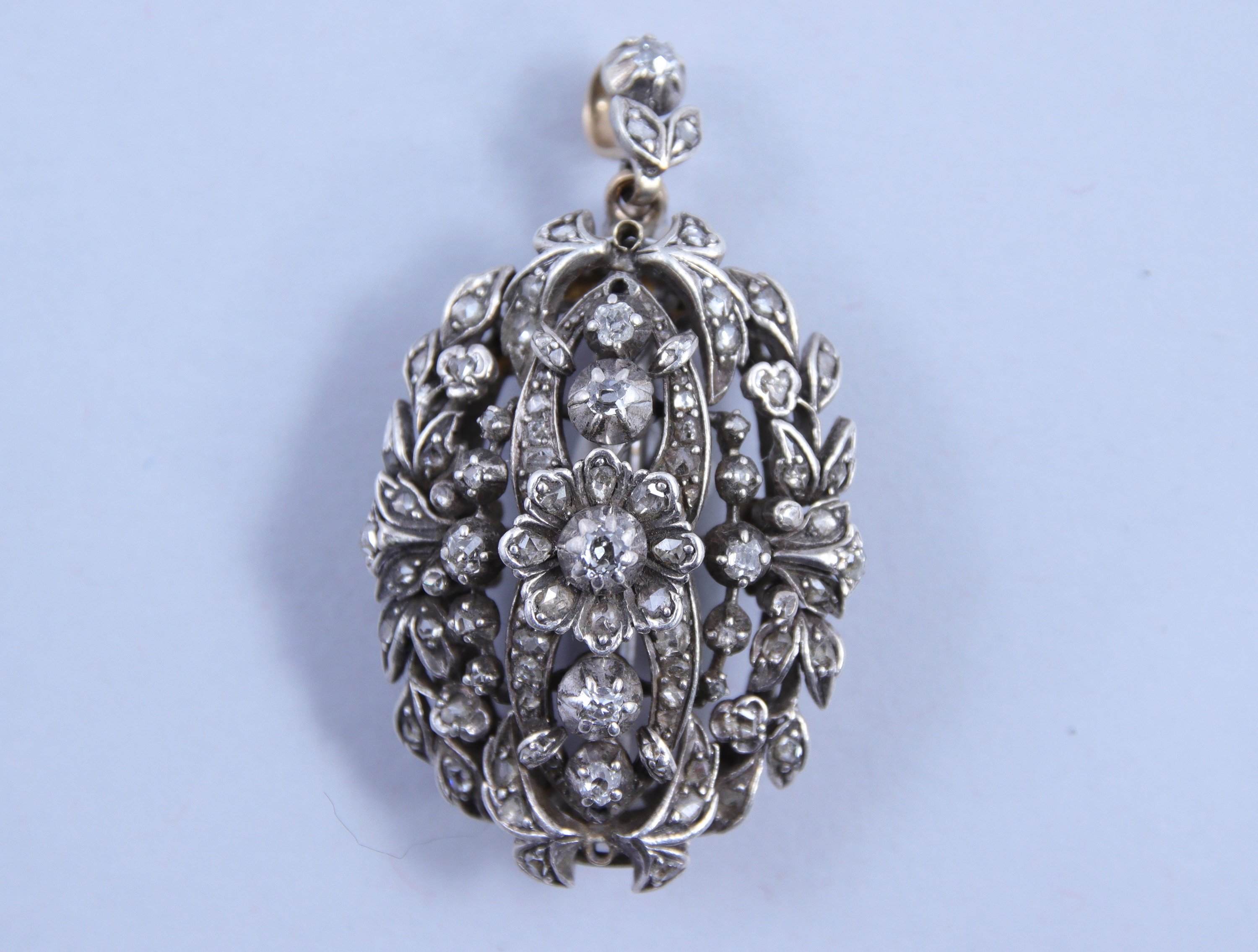 en argent 925 millièmes et or 750 millièmes à décor ajouré de fleurs et feuillages, entièrement serti de diamants de taille ancienne et taillés en rose.