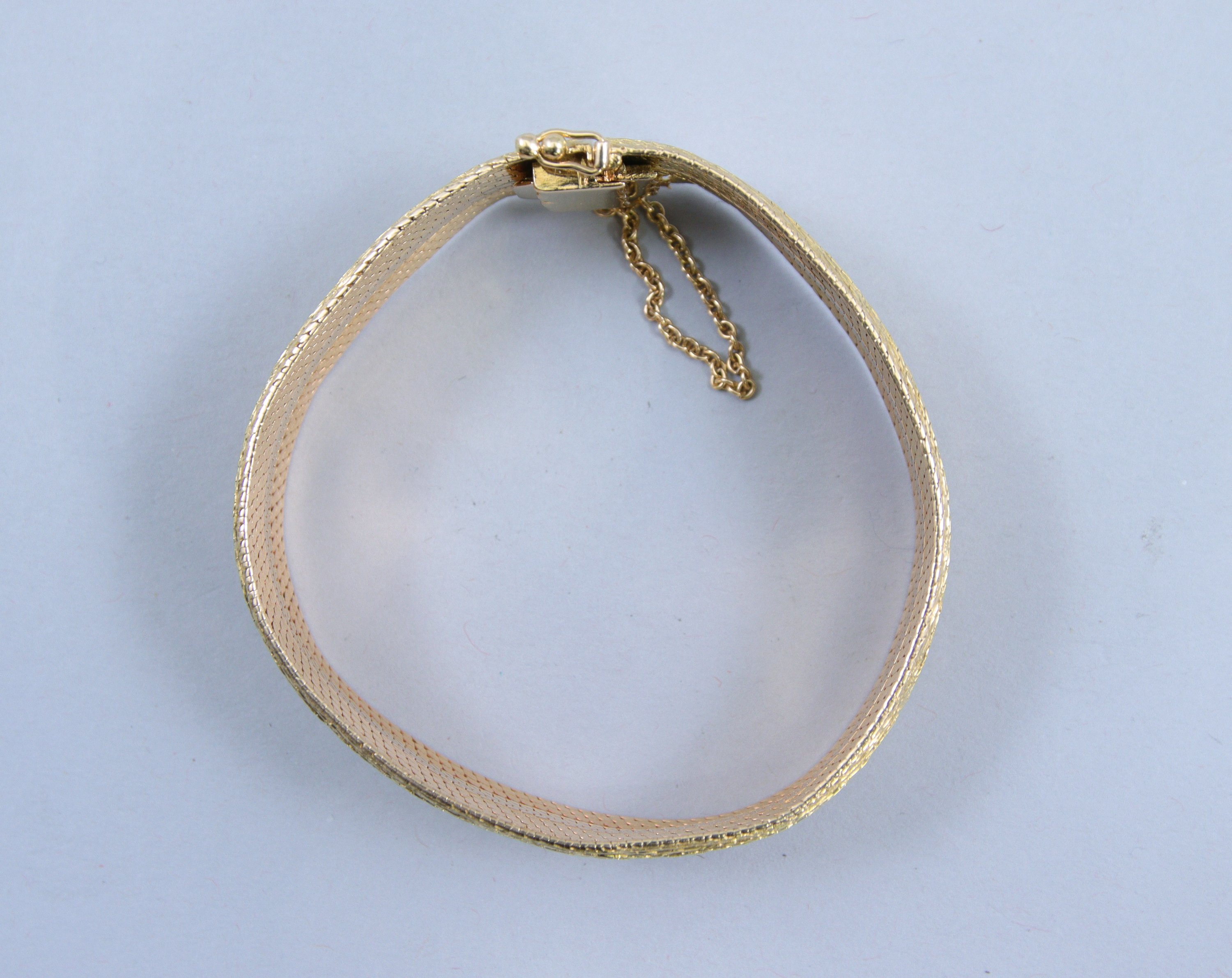en or jaune 750 milièmes deux tons tressées et souples. Chainette de sécurité.