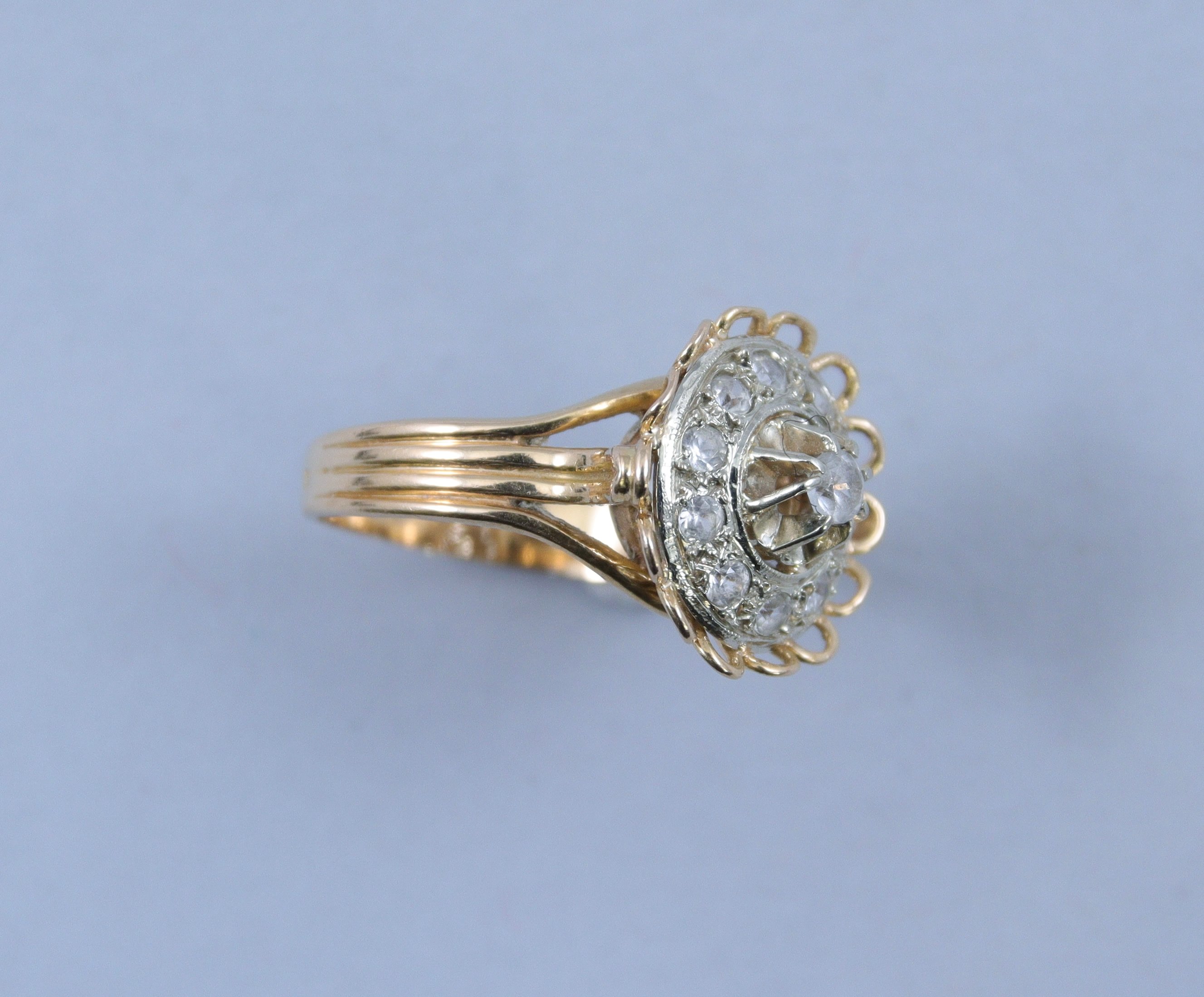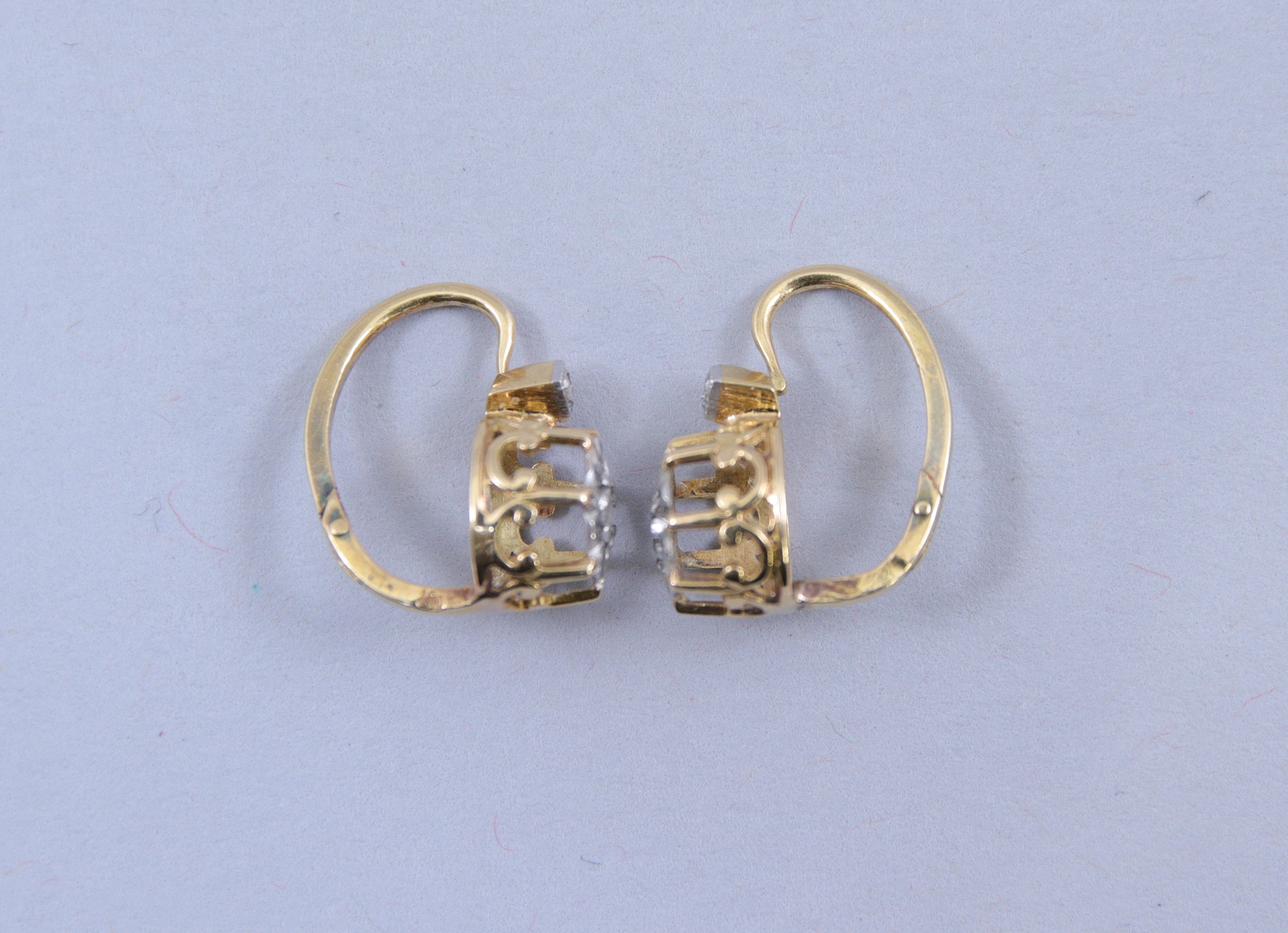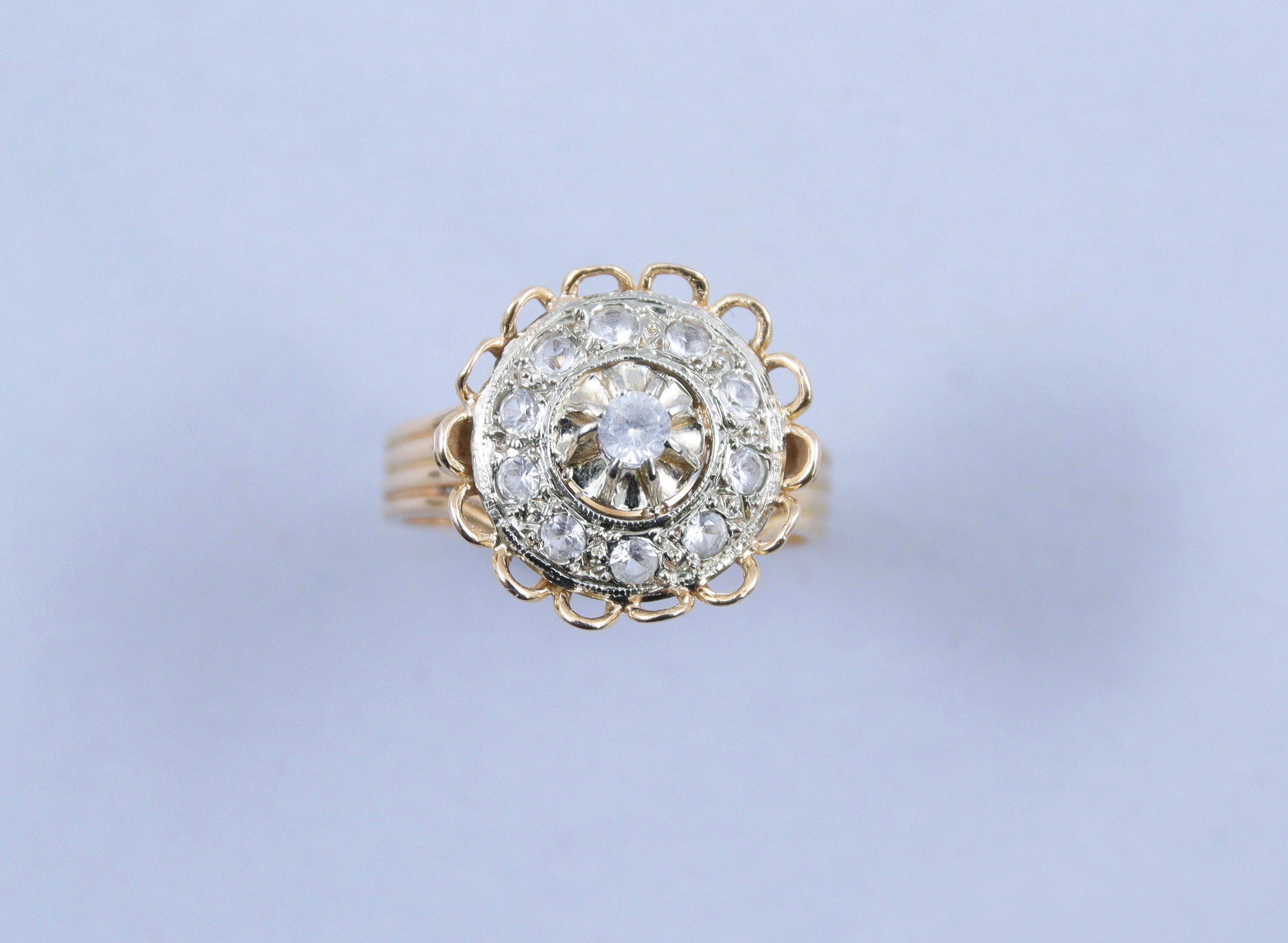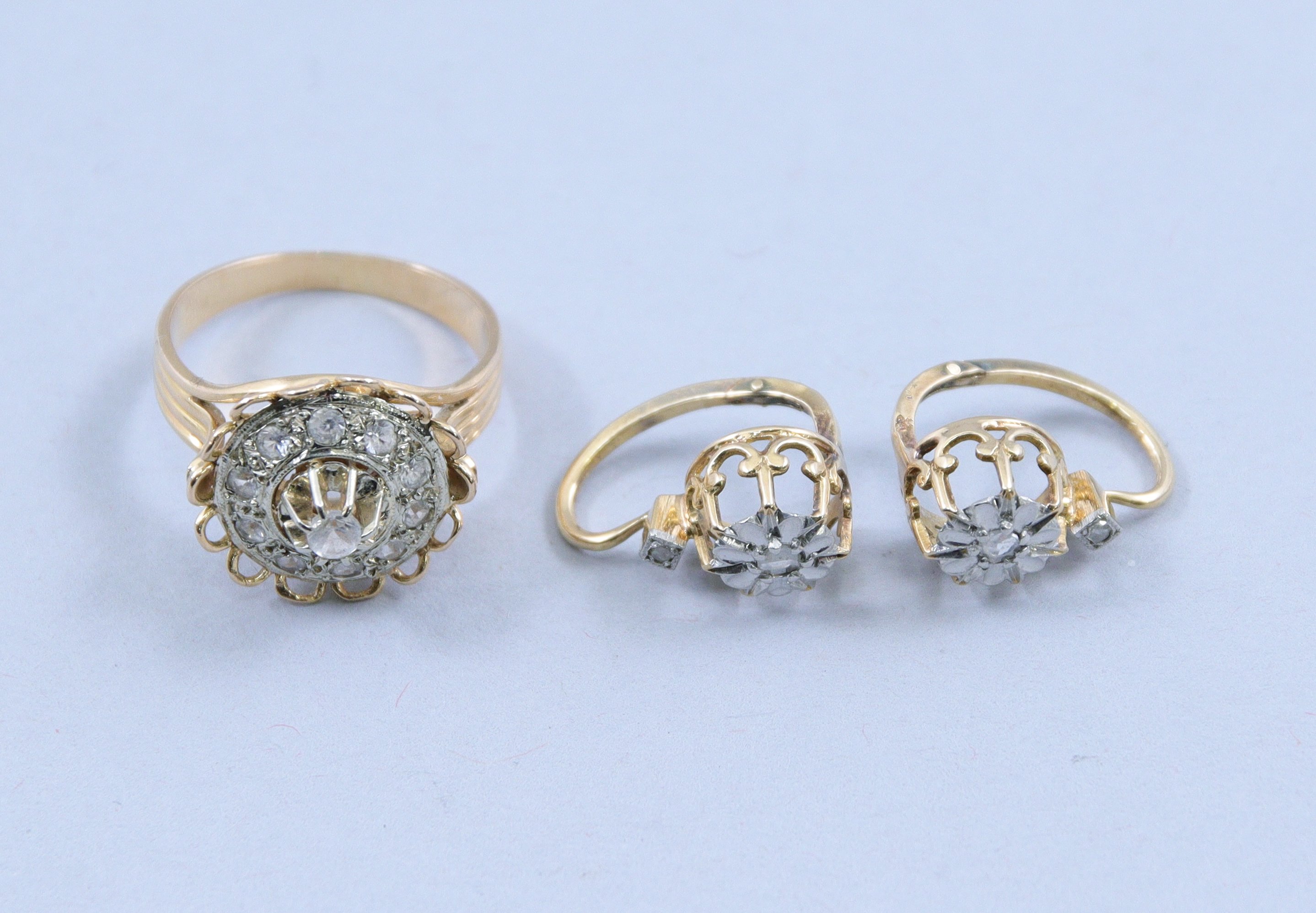 en or jaune 750 millièmes et pierres blanches comprenant une bague (3,6 gr.) et une paire de dormeuses (2,3 gr.).