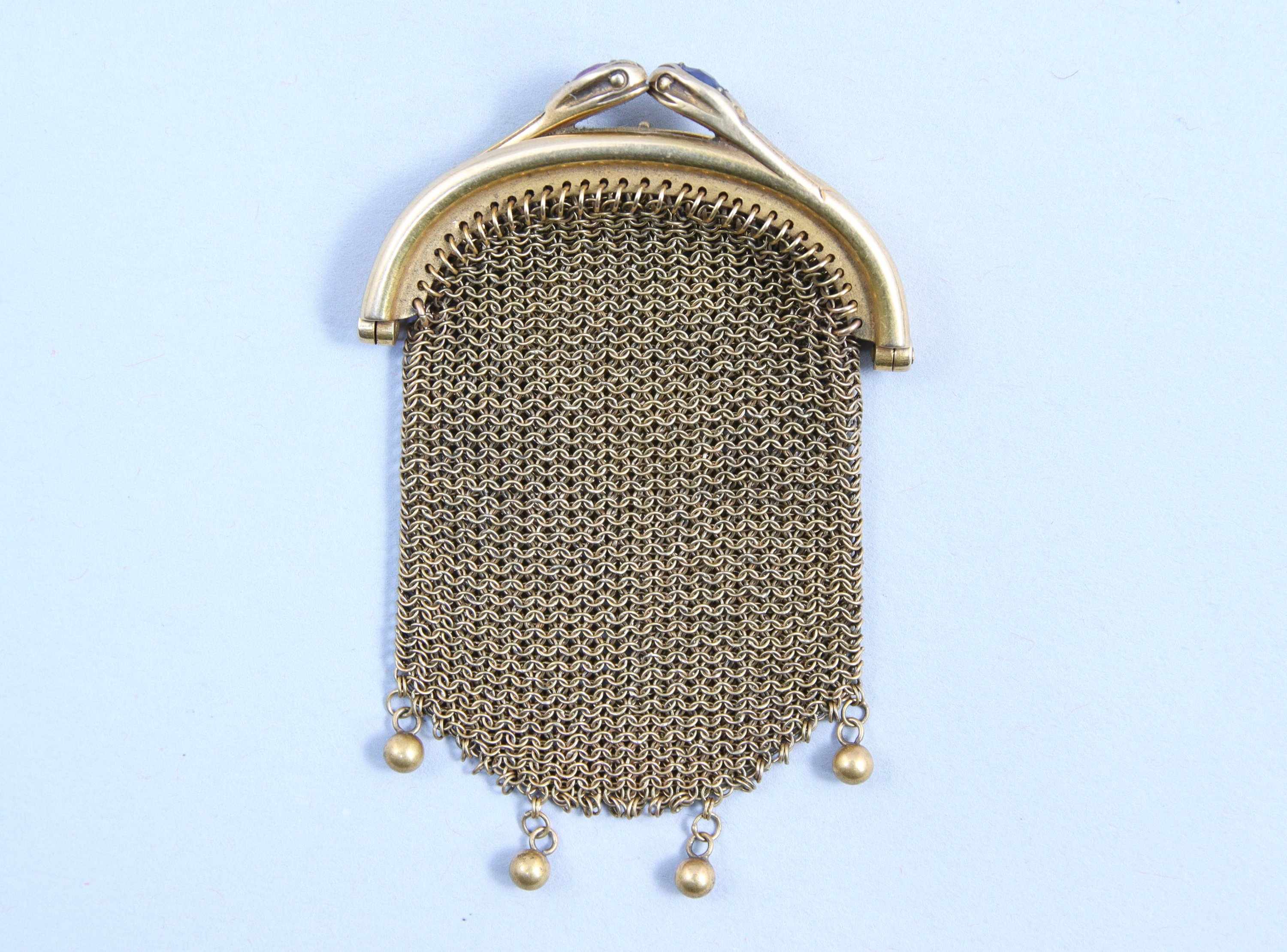 en or jaune 750 millièmes, le fermoir orné de deux têtes de serpent avec un rubis et une pierre bleue.