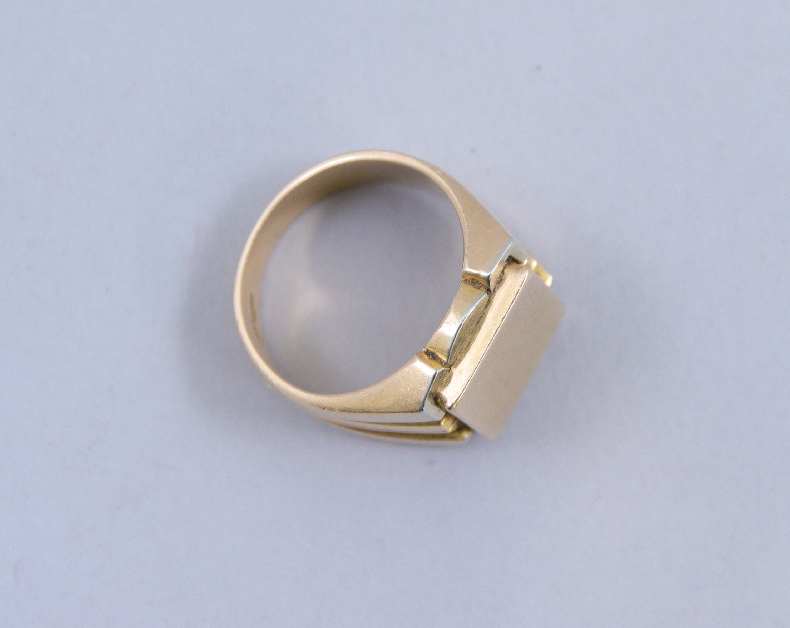 en or jaune 750 millièmes, le chaton non monogrammé, l'épaule à décor strié.