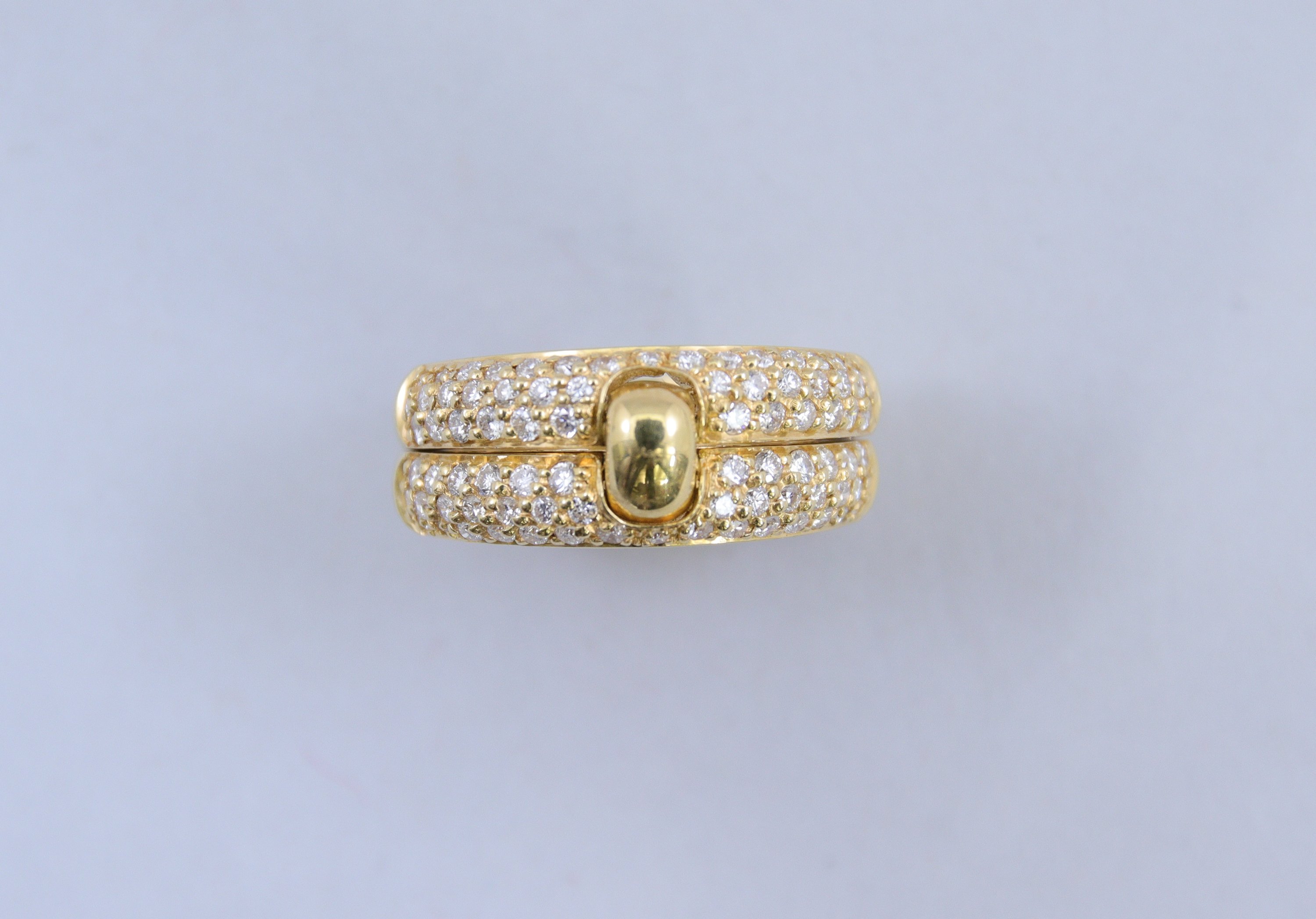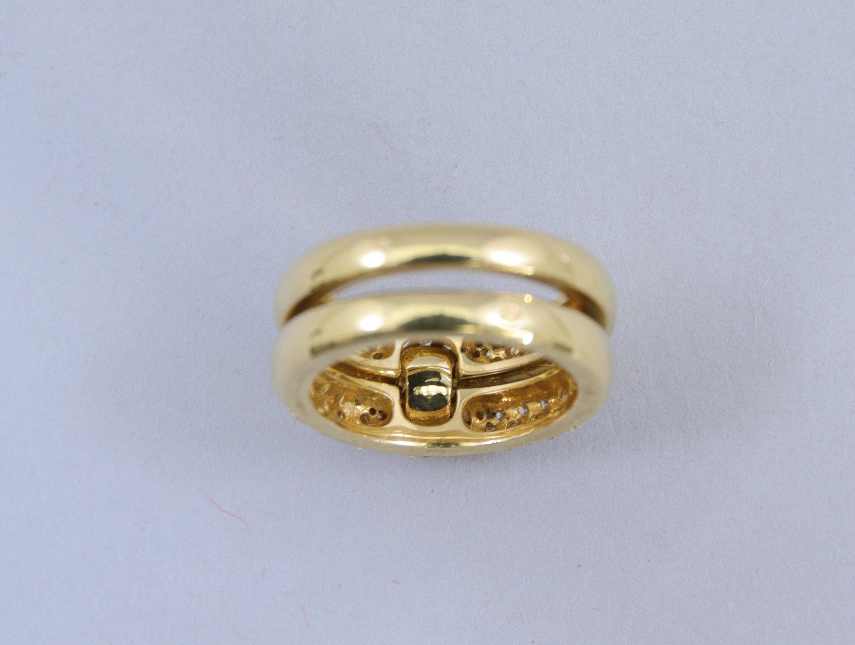 en or jaune 750 millièmes, à deux anneaux, ornée de brillants. Gravée à l'intérieur: "CHUT...<3 - JE T'AIME"