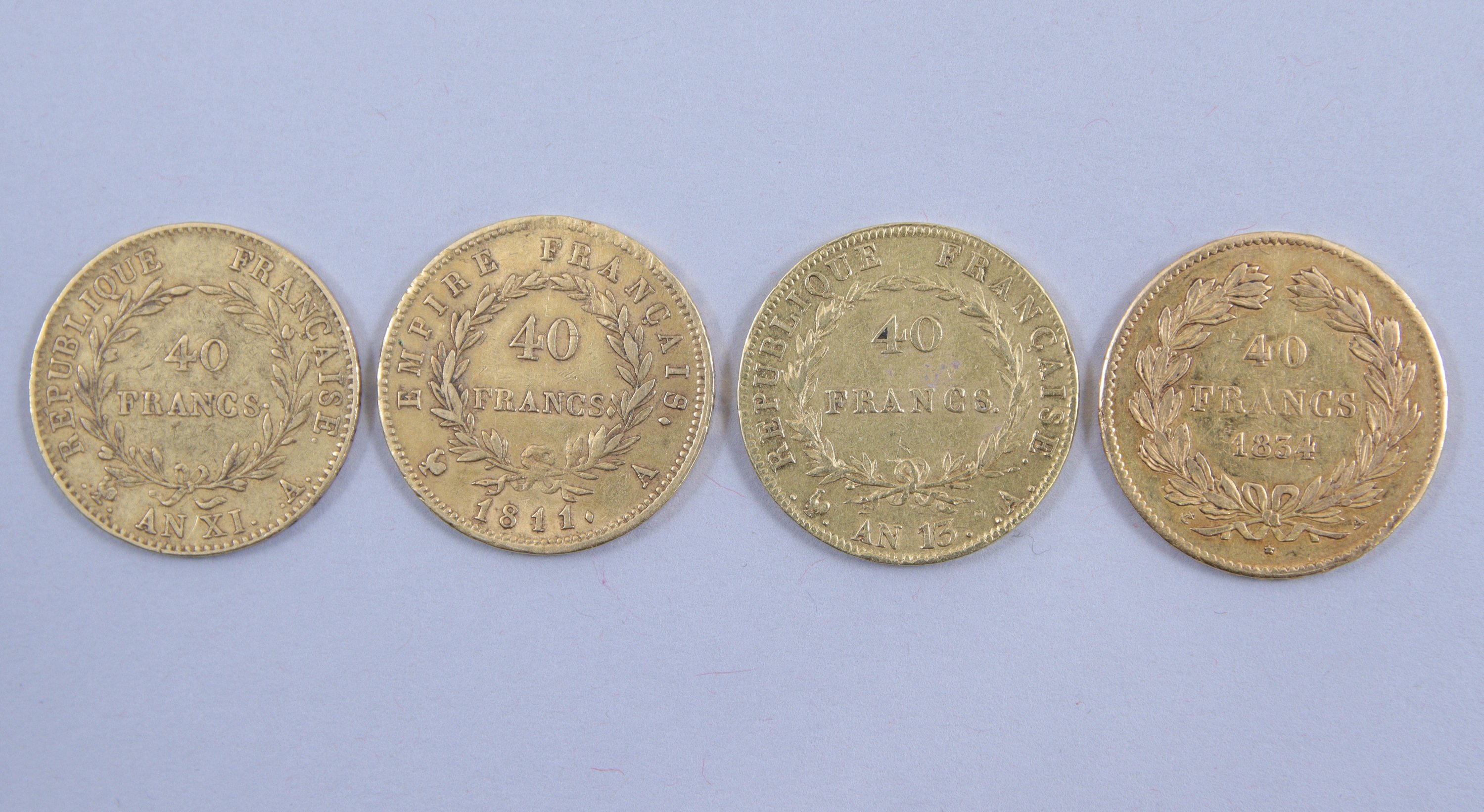 FRANCE. 4 PIÈCES de 40 FRANCS OR: