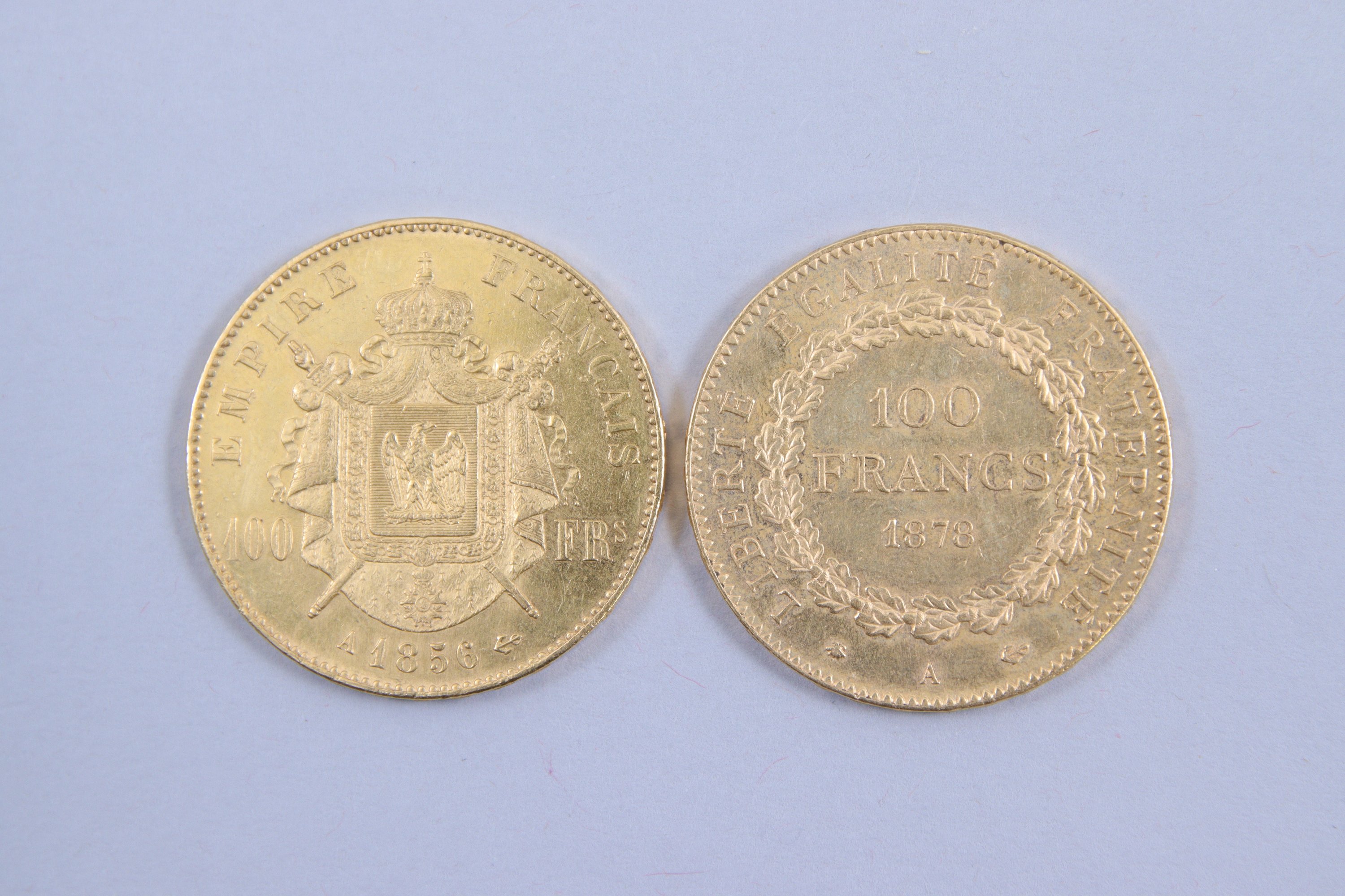 FRANCE. 2 PIÈCES de 100 FRANCS OR: