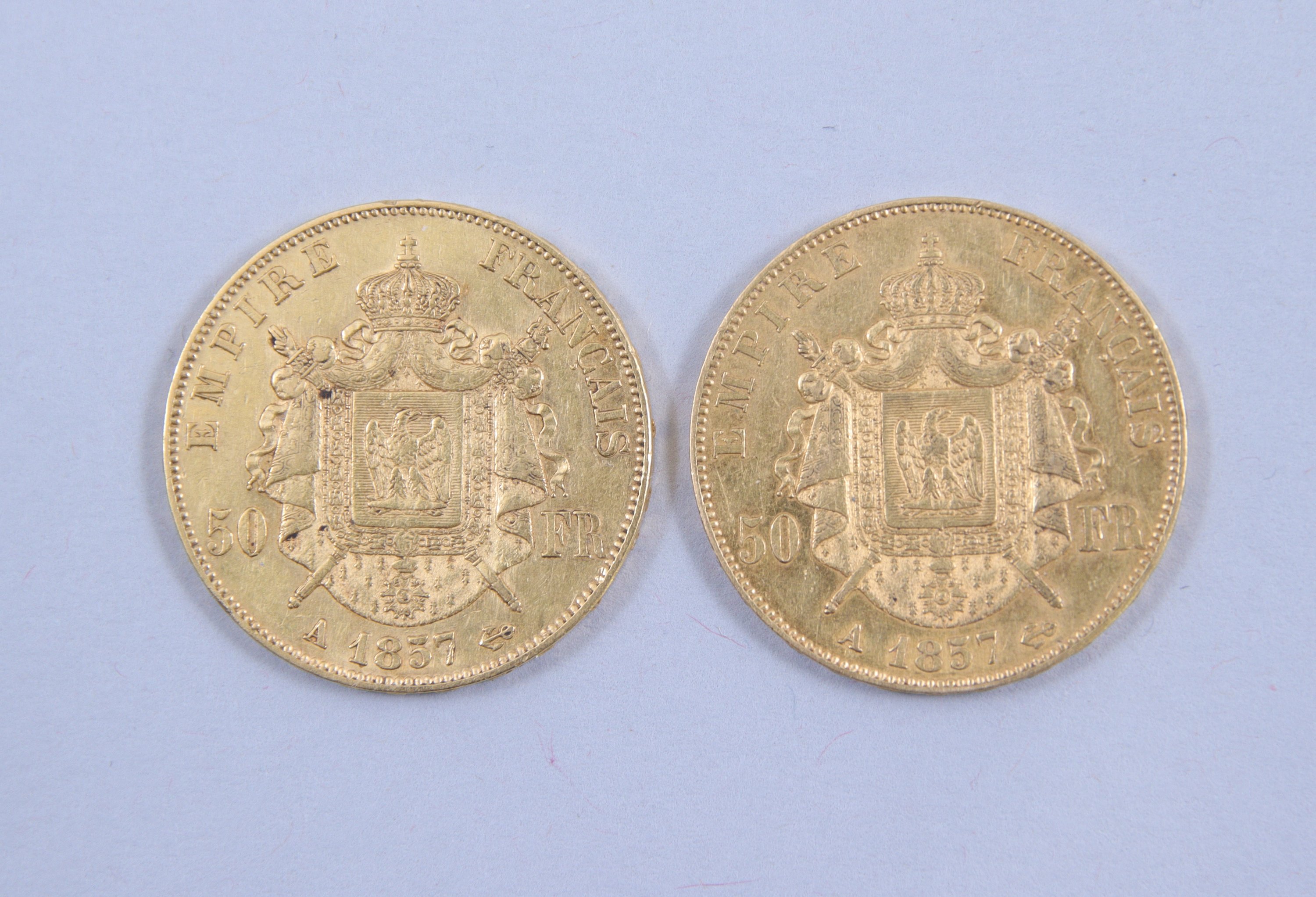 FRANCE. 2 PIÈCES de 50 FRANCS OR, Napoléon III, 1857.