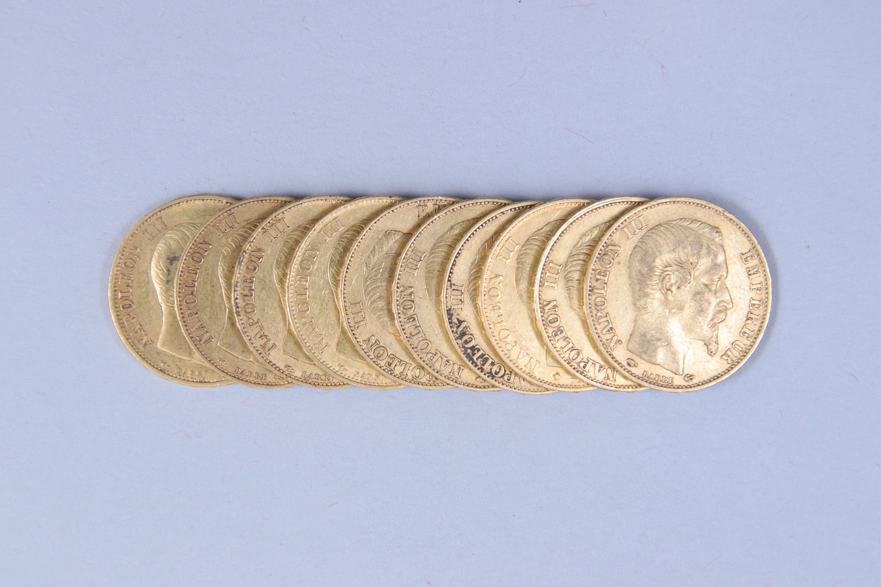 FRANCE. 10 PIÈCES de 20 FRANCS OR, Napoléon III tête nue, 1853, 1854 (4), 1856 (2), 1857, 1859 (2).