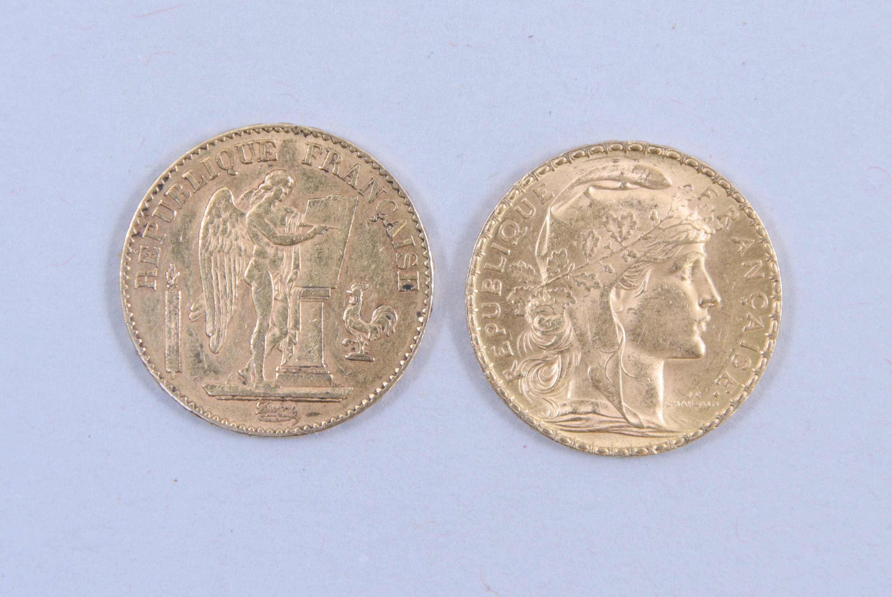 FRANCE. 2 PIÈCES de 20 FRANCS OR : - 1...