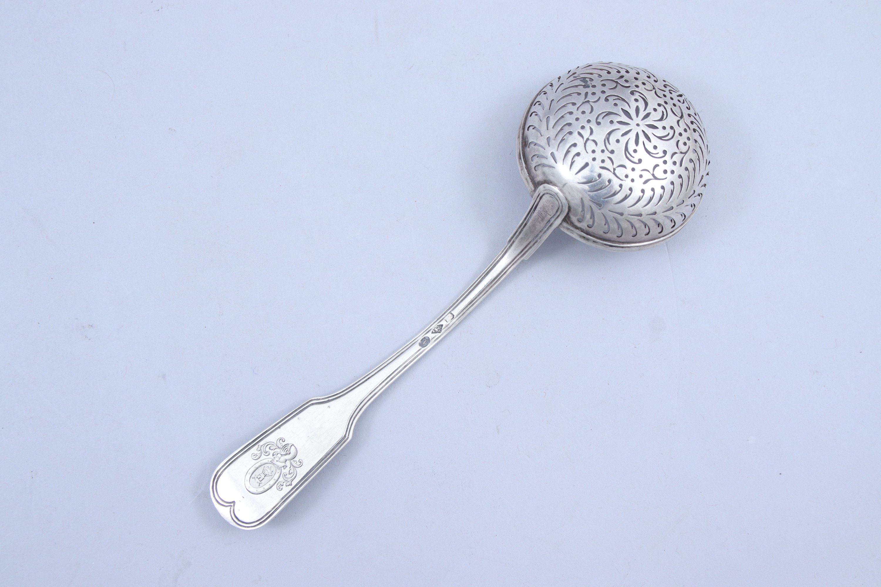 en argent, modèle filet contour aux armes des La Verteville. Le cuilleron repercé de fleurs et feuillages.