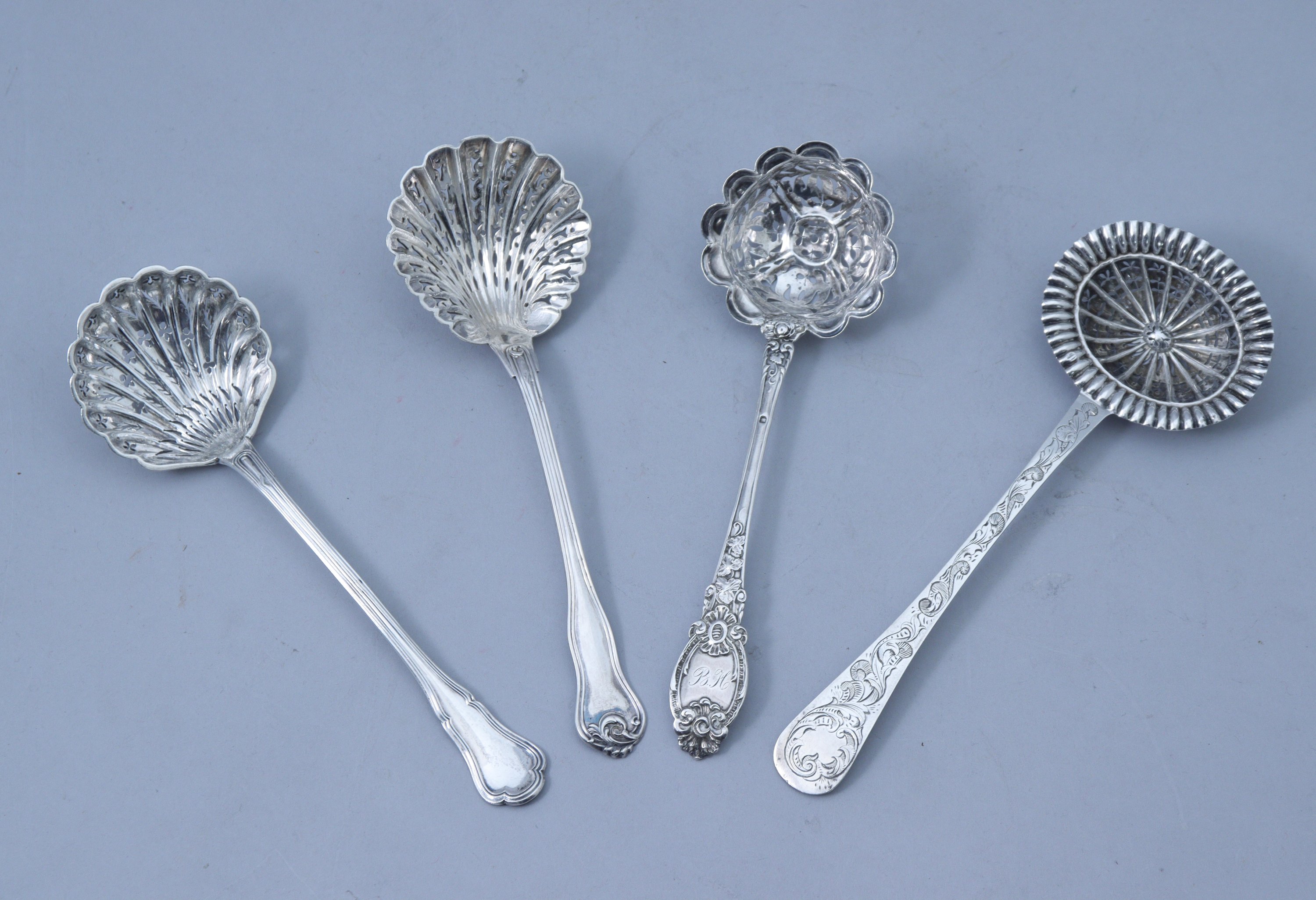 en argent, de différents modèles, deux à filets et deux à décor rocaille.