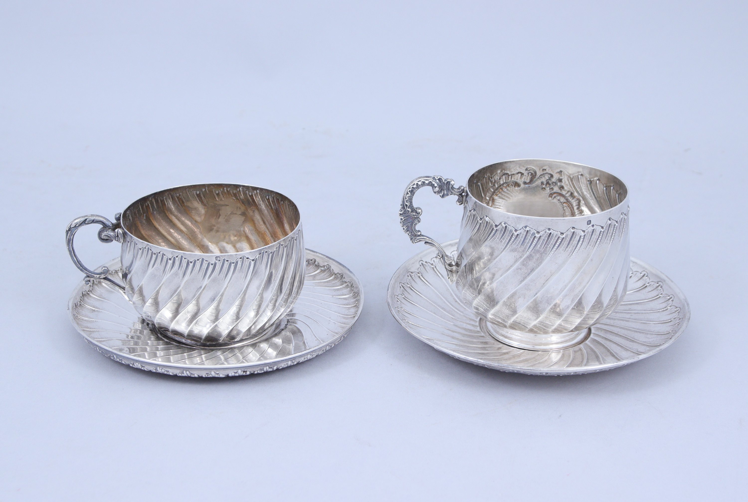 en argent, de deux modèles différents. Chacune à une prise, l'une à décor rocaille. Le corps à décor godronné présentant au centre un cartouche non monogrammé.