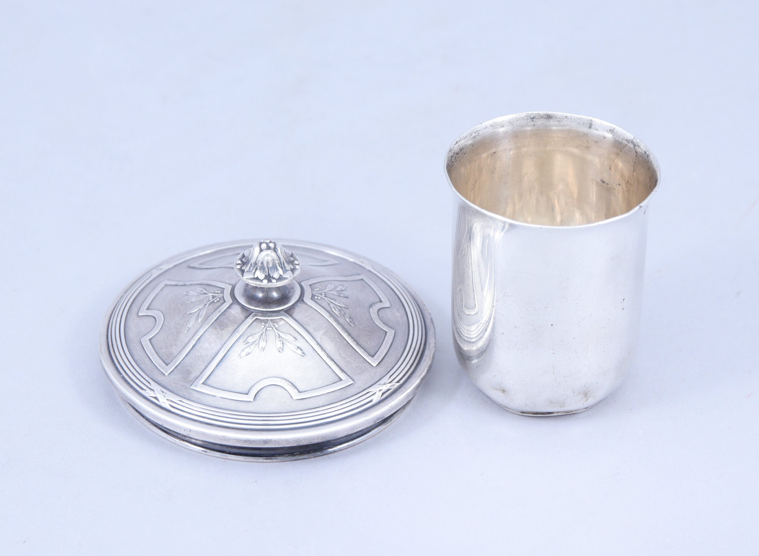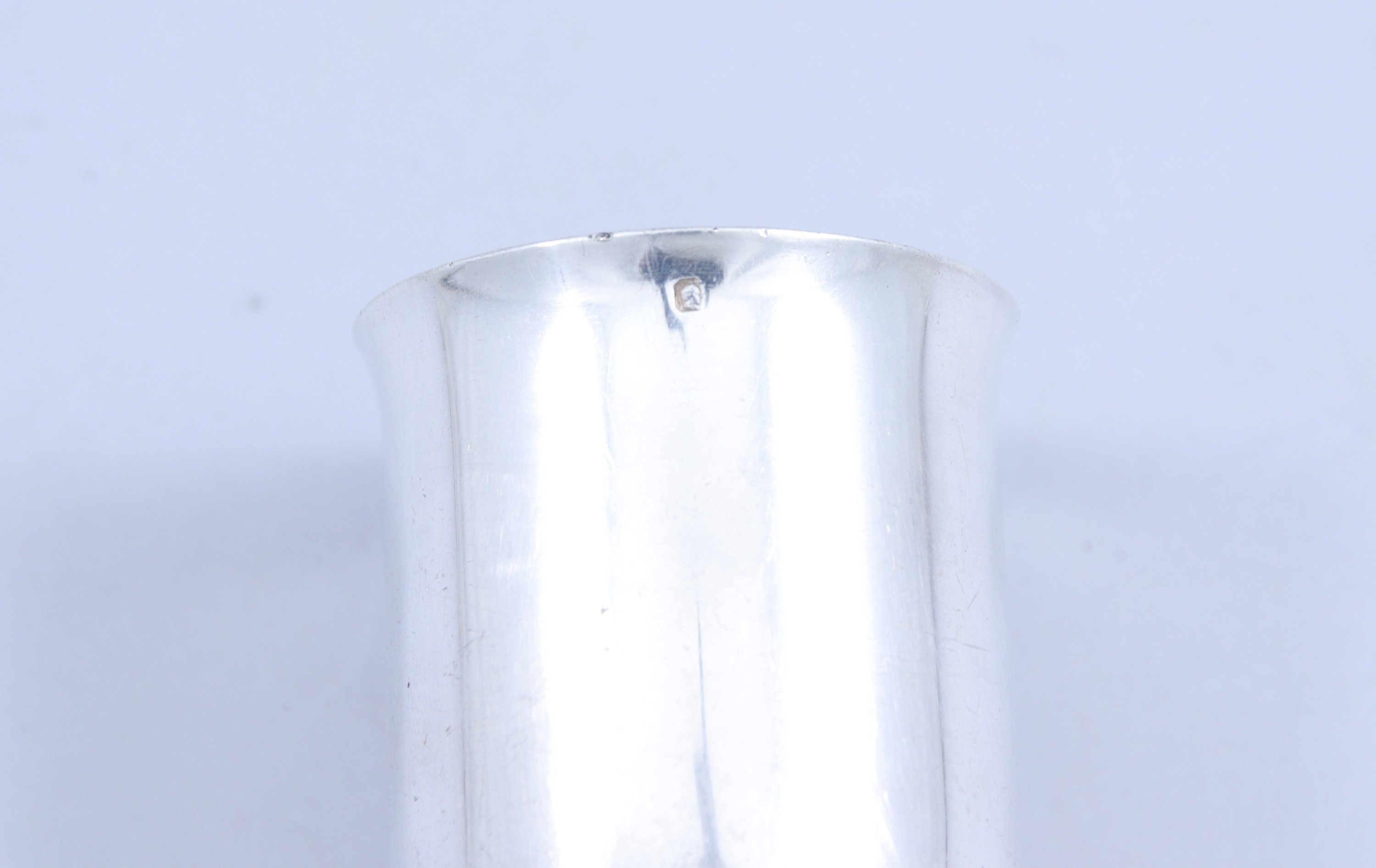 - Timbale tulipe en argent uniplat. Minerve 1er titre. Orfèvres: Frères Saglier & Cie (poinçon insculpé en 1897) 82 g.