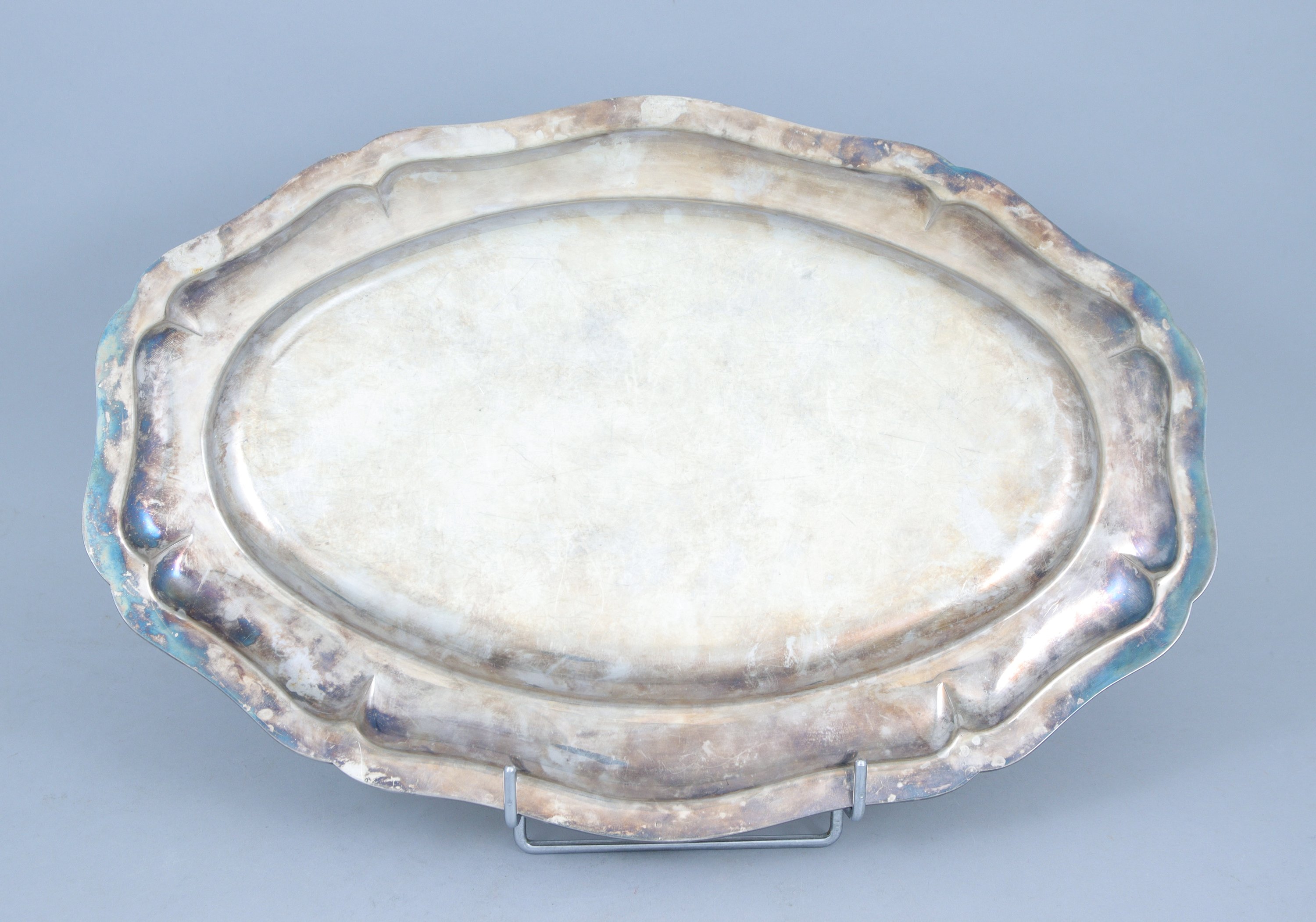 en argent de forme oblong, modèle à filets contours, l'aile chantournée.