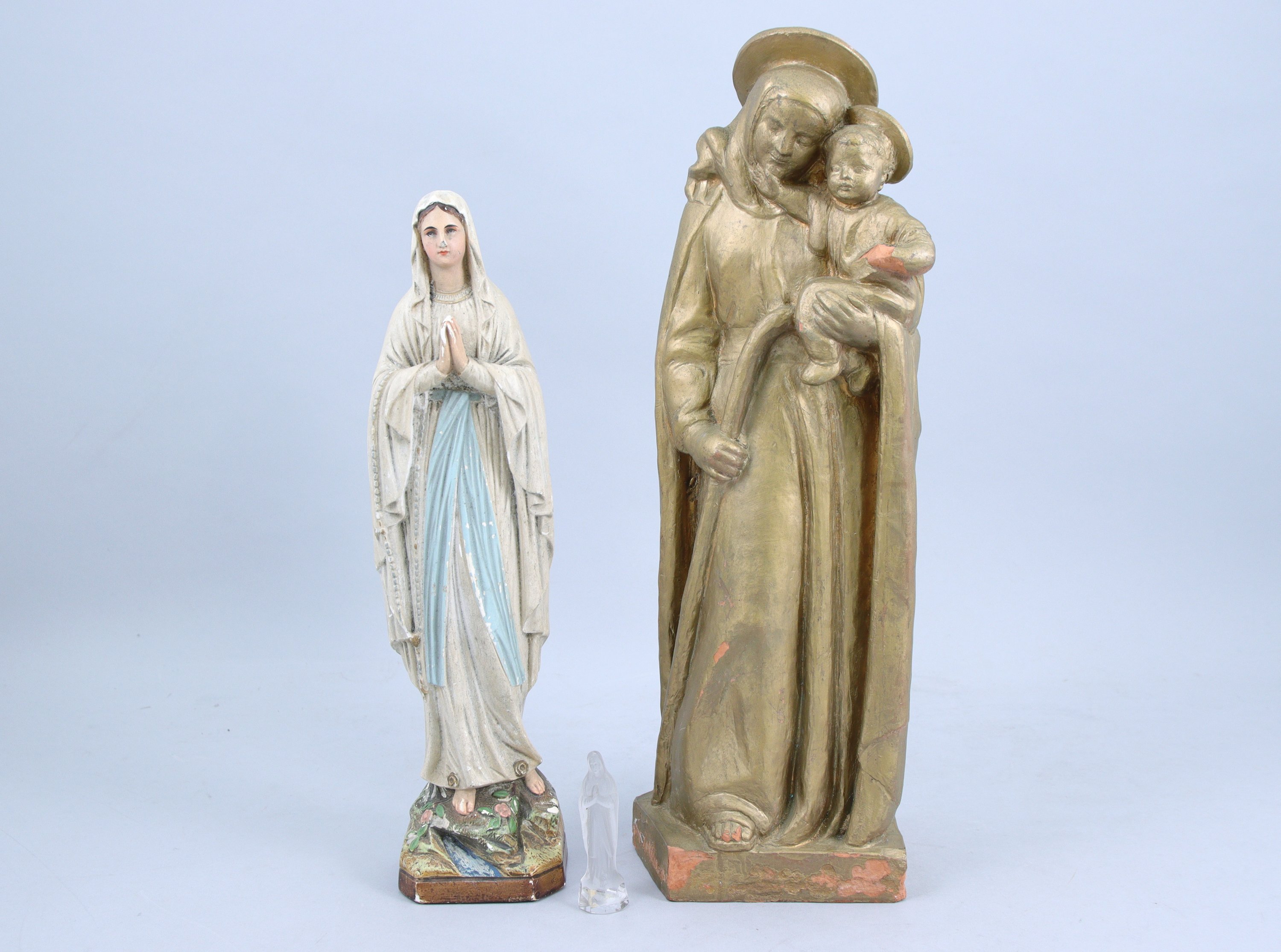 - Boye-Thomas à Toulouse, Vierge en prière en plâtre polychrome, signée à l'arrière. Haut. 34,5 cm.(éclats, manques).