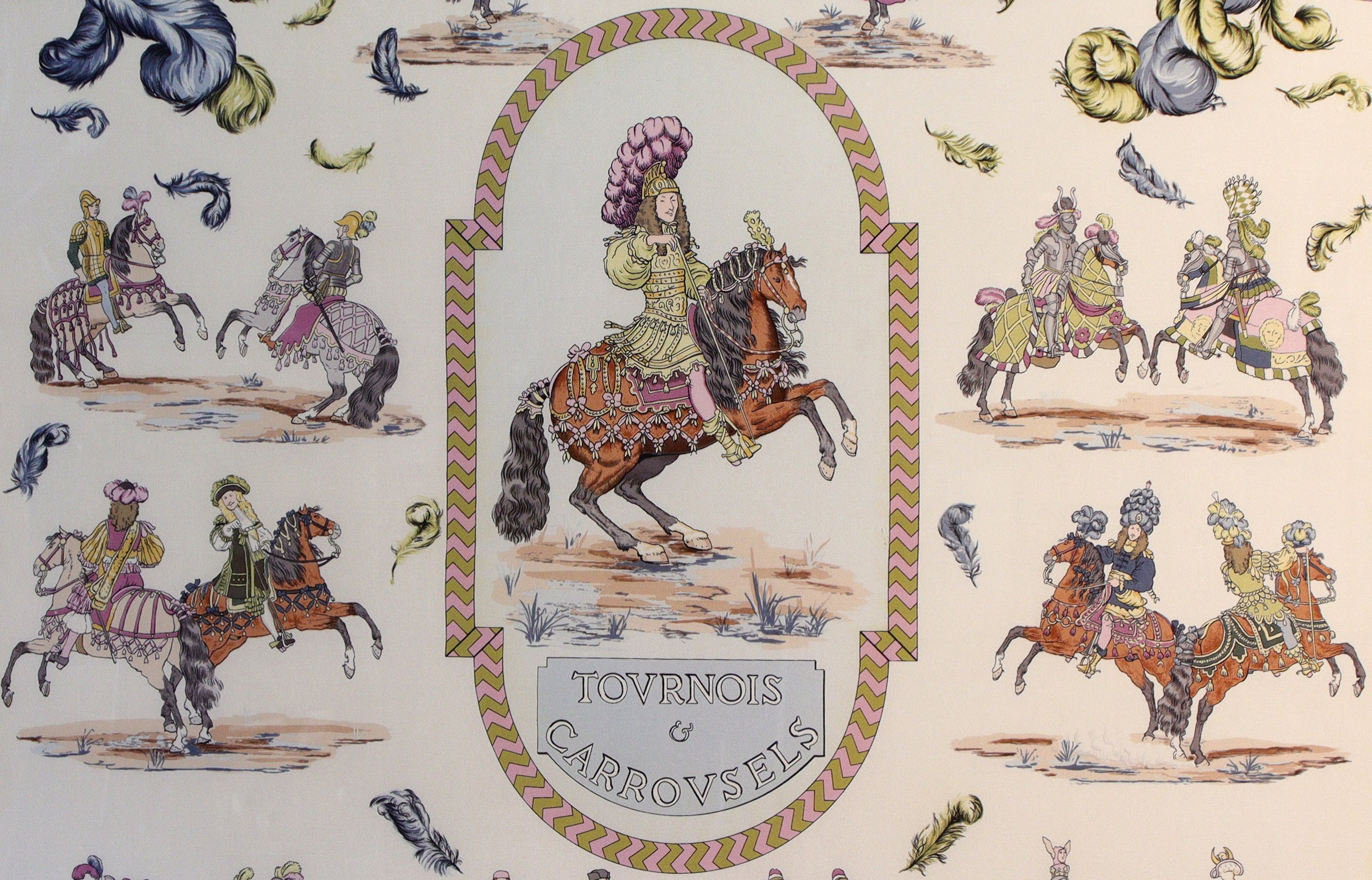 Hermès"Tournois et Carousels"Soie, signée Ledoux.Haut. 87 Larg. 85 cm.(En l'état....