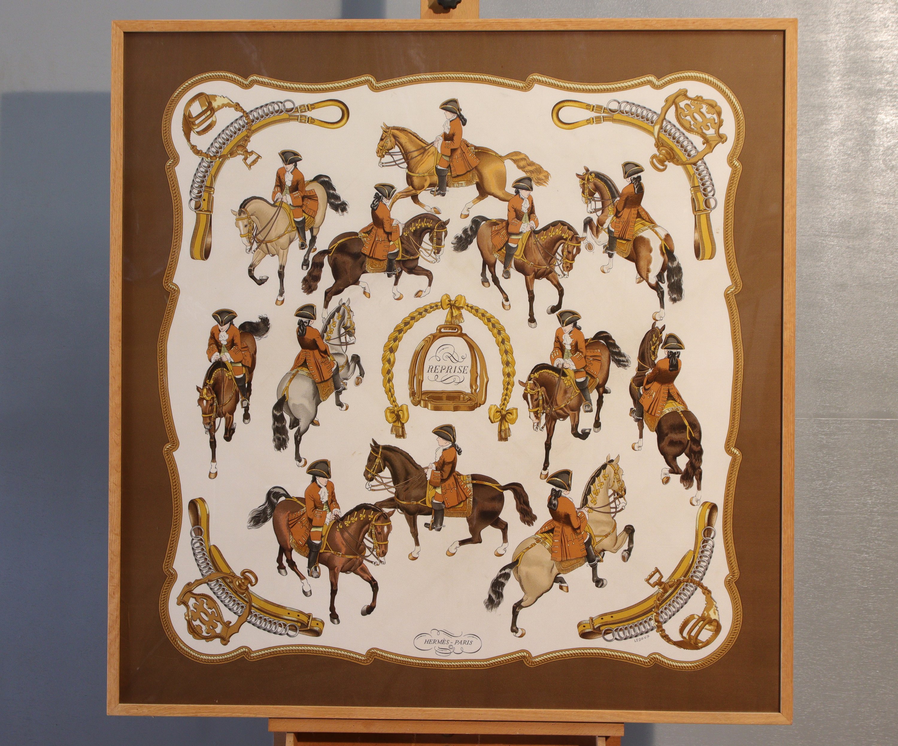 Hermès Carré "Reprise"Soie, signée Ledoux.Haut. 89 Larg. 87,5 cm.(En l'état....