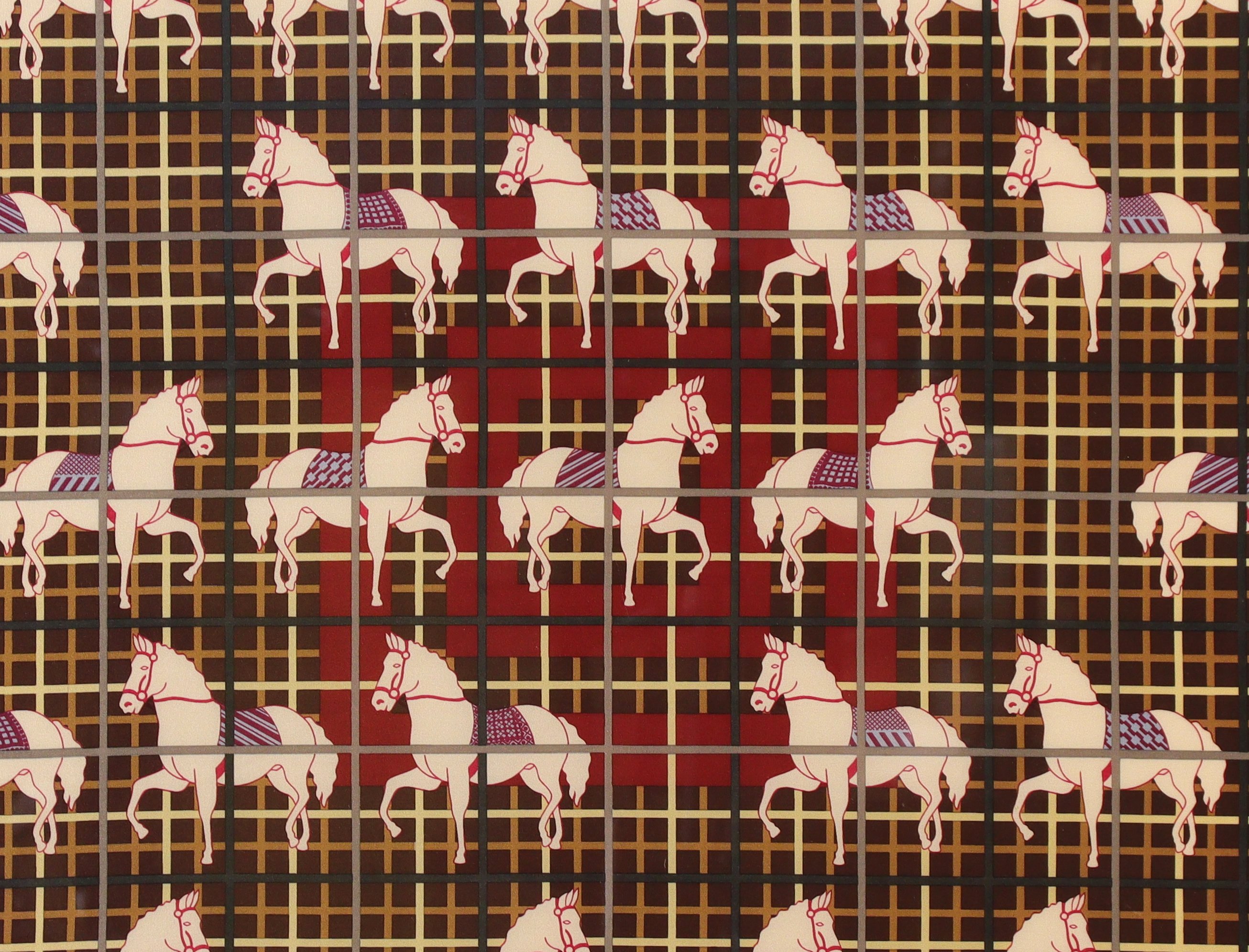 Carré "Sans titre" chevaux sellés dans un décor géométrique.