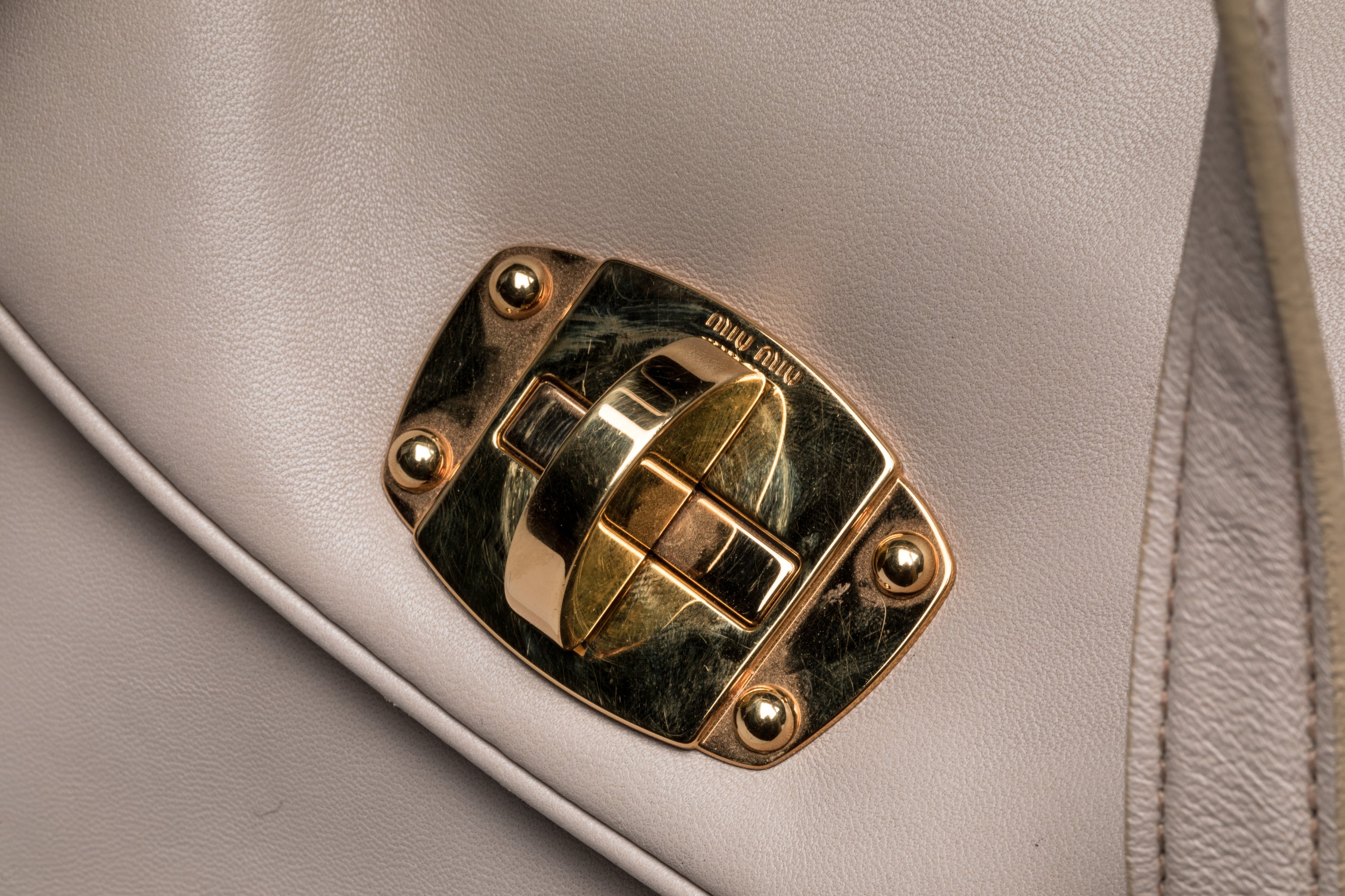 Miu Miu Sac à main porté épaule en cuir beige.Quatre...
