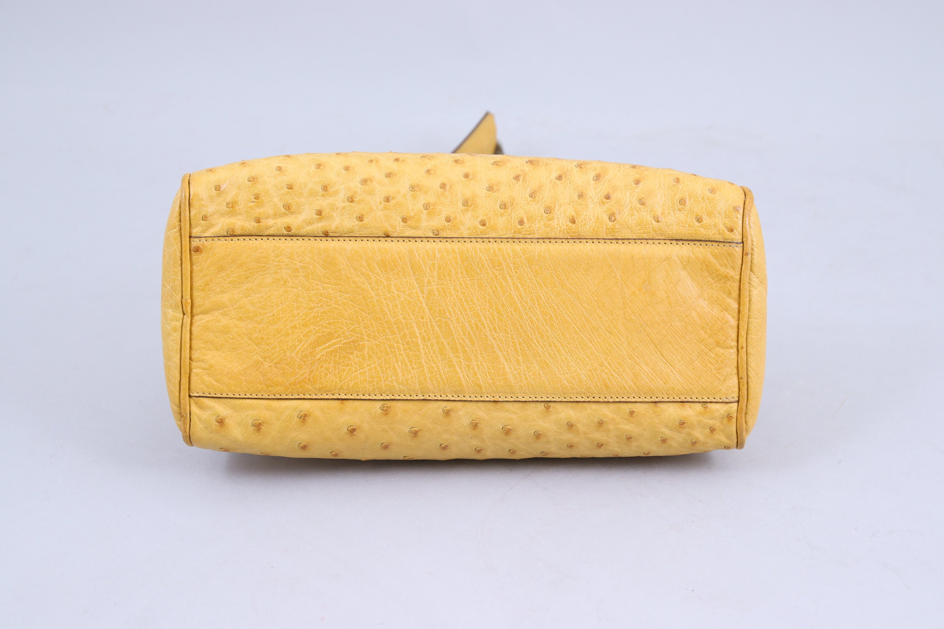 en cuir d'autruche jaune. Deux anses, cadenas et clé.