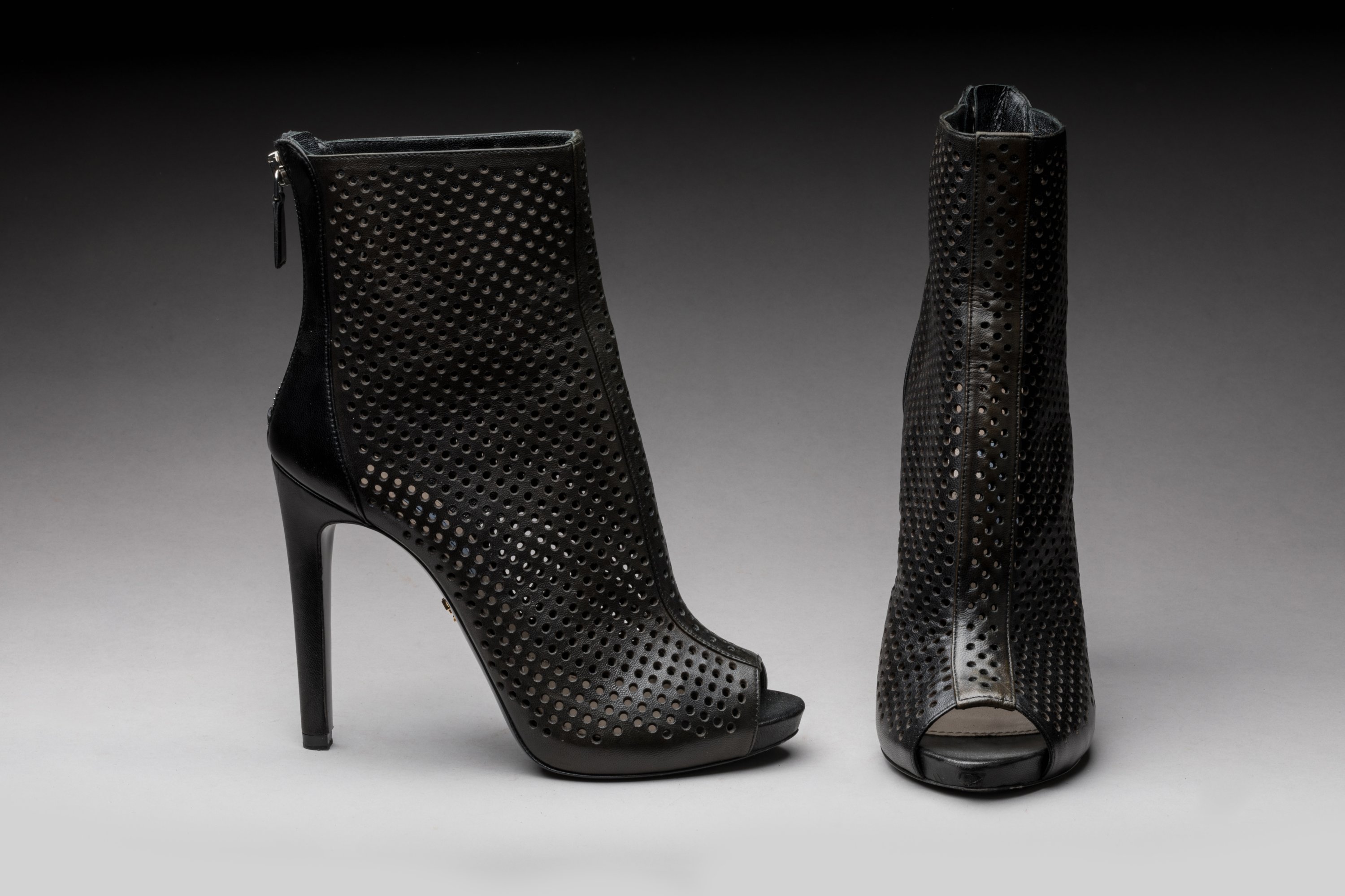 en cuir noir ajouré, fermeture éclair sur le contrefort.