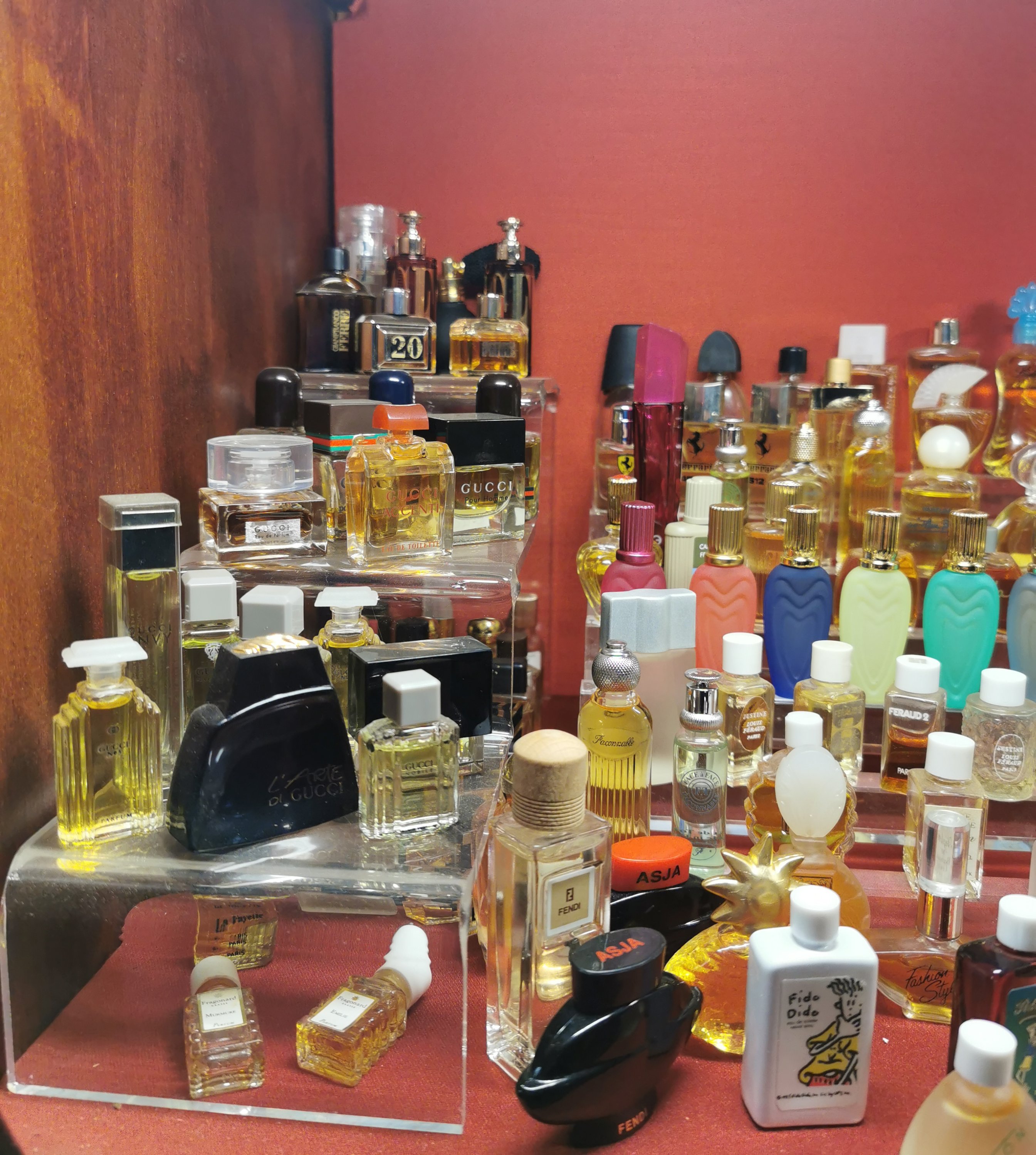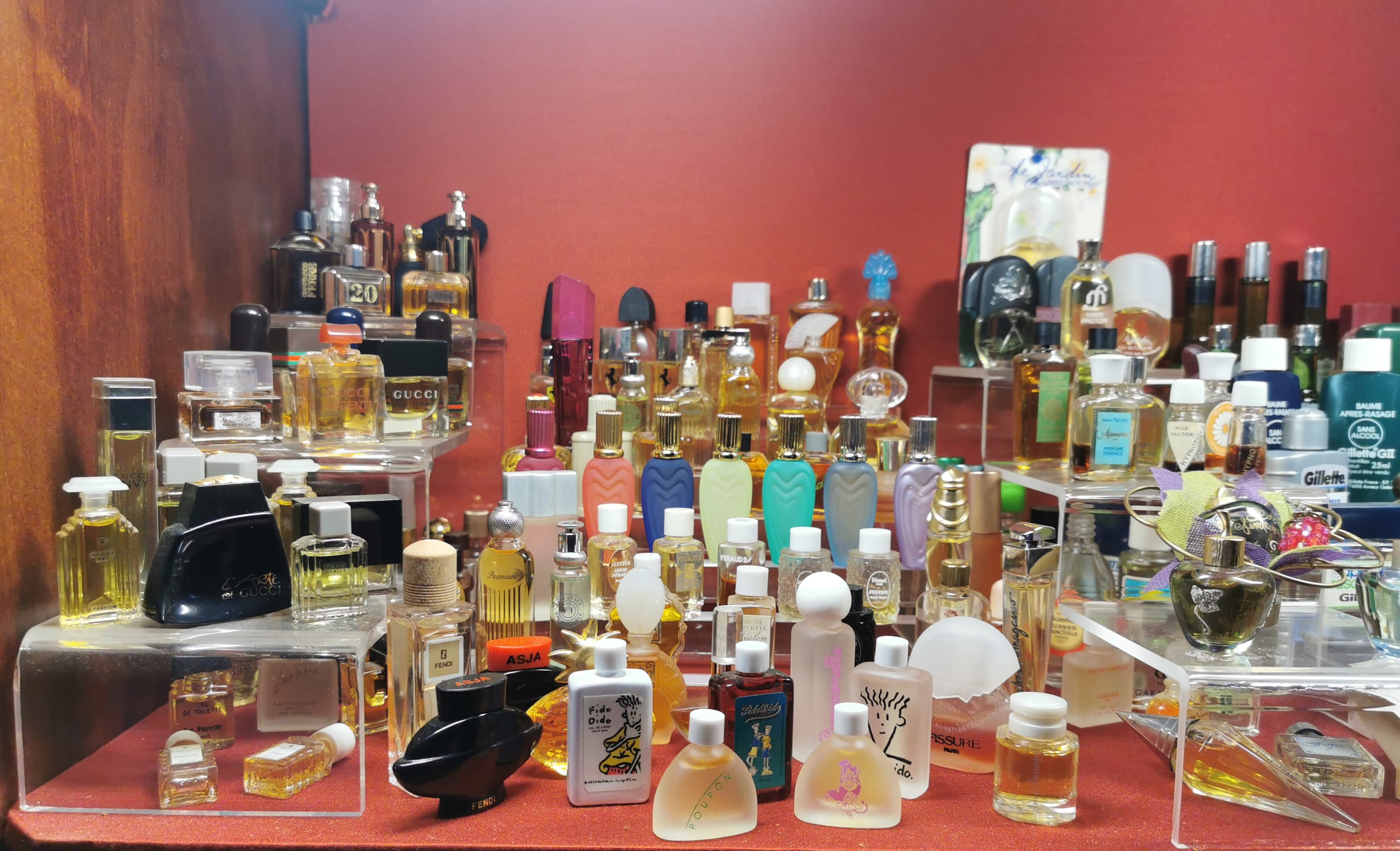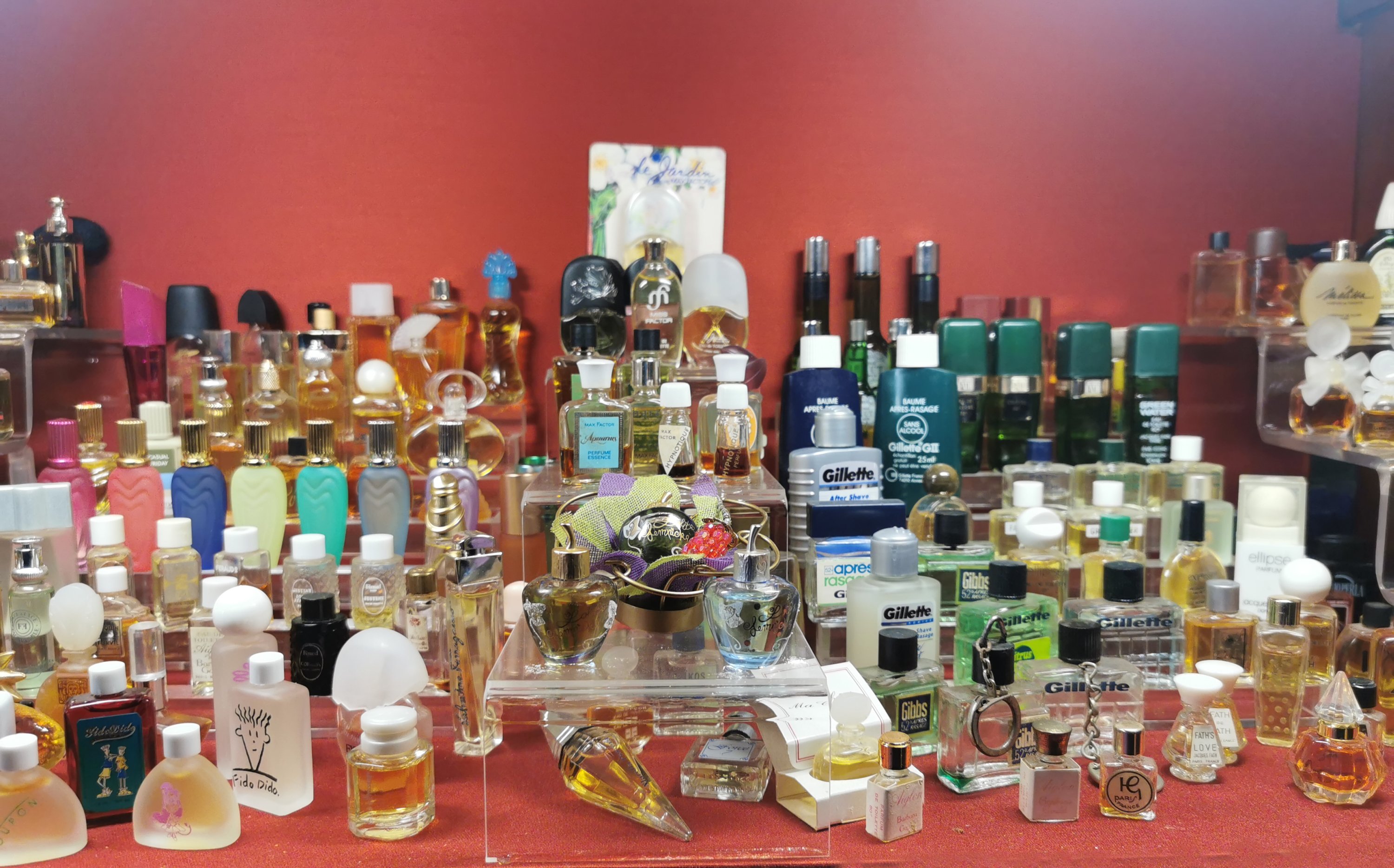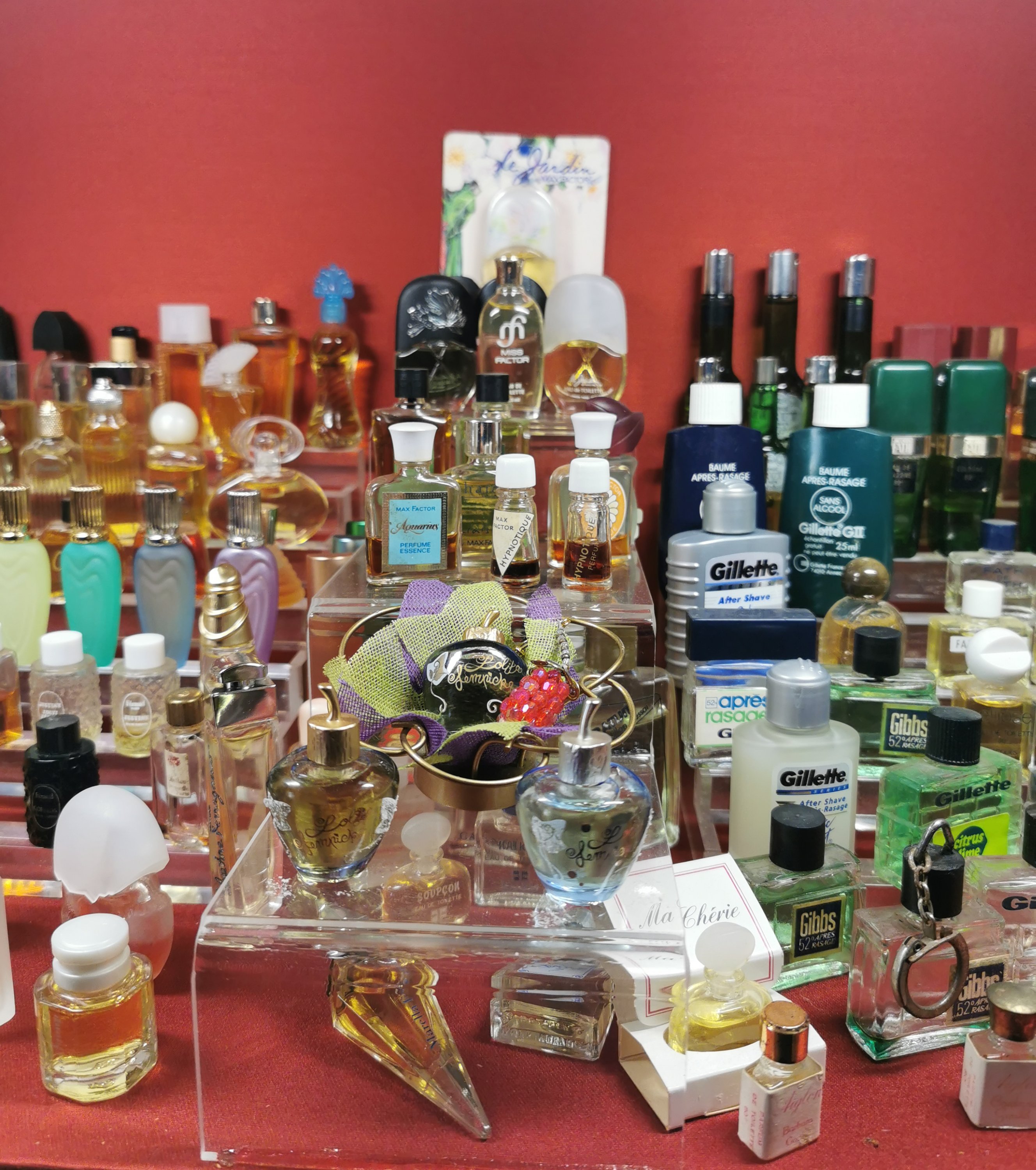 Assortiment d’environ 190 diminutifs parfums ou échantillons de parfums, la plupart avec leur étui carton titré.