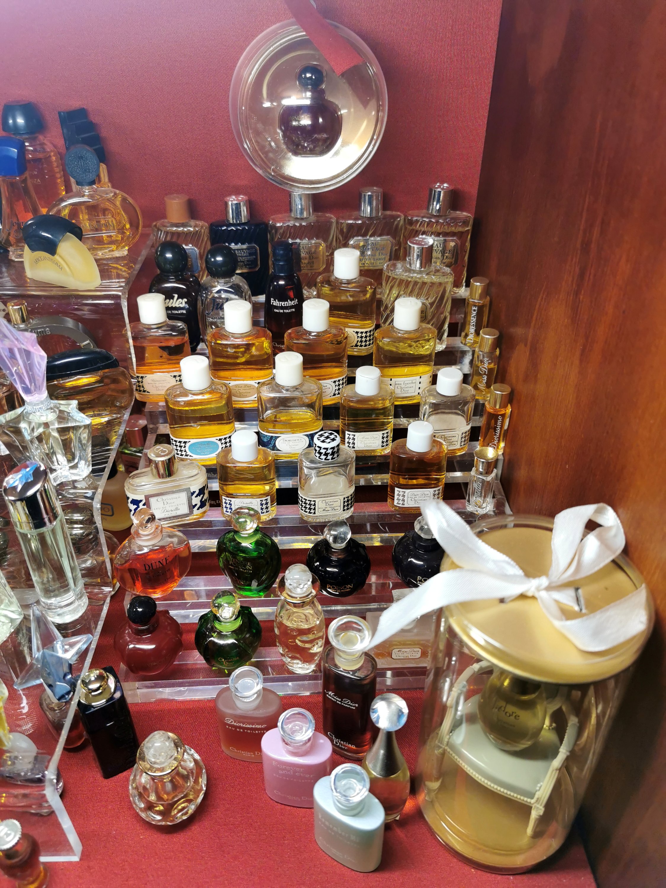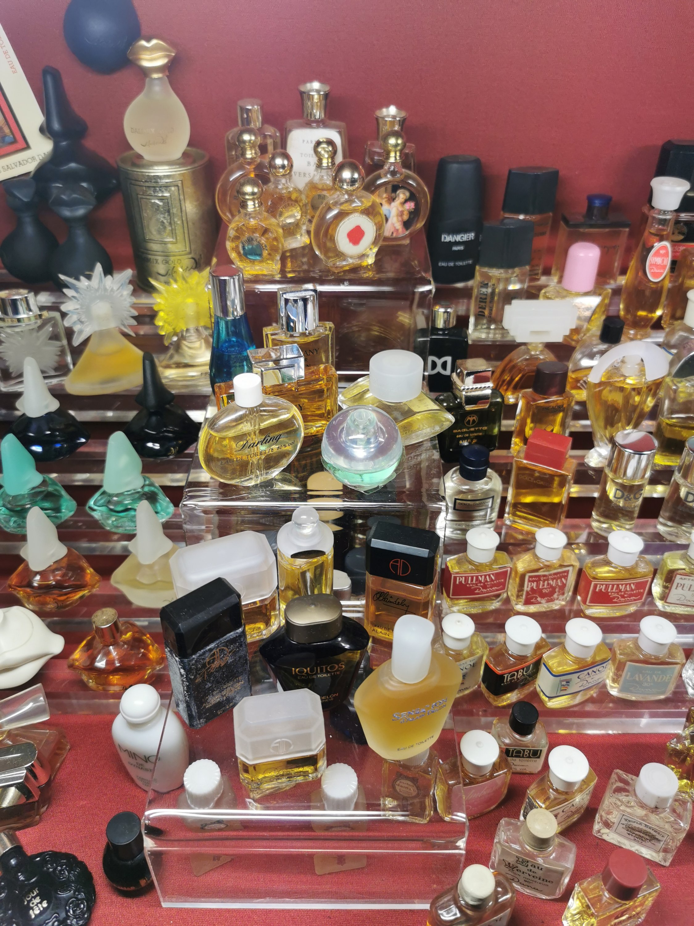 Assortiment denviron 180 diminutifs parfums ou échantillons de parfums, la plupart avec leur étui carton titré.