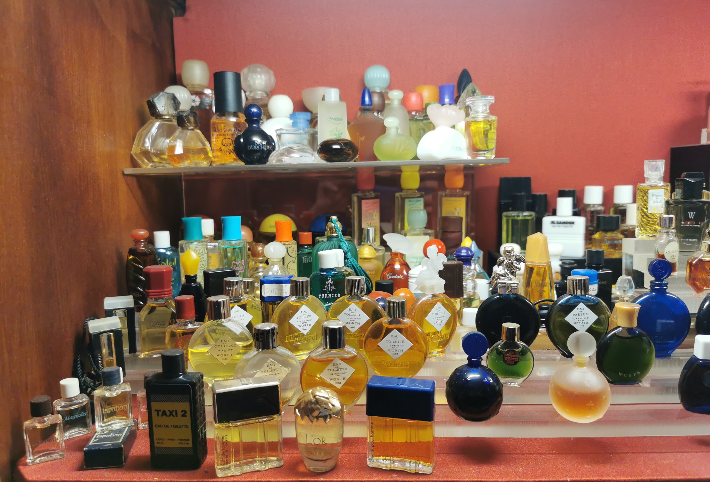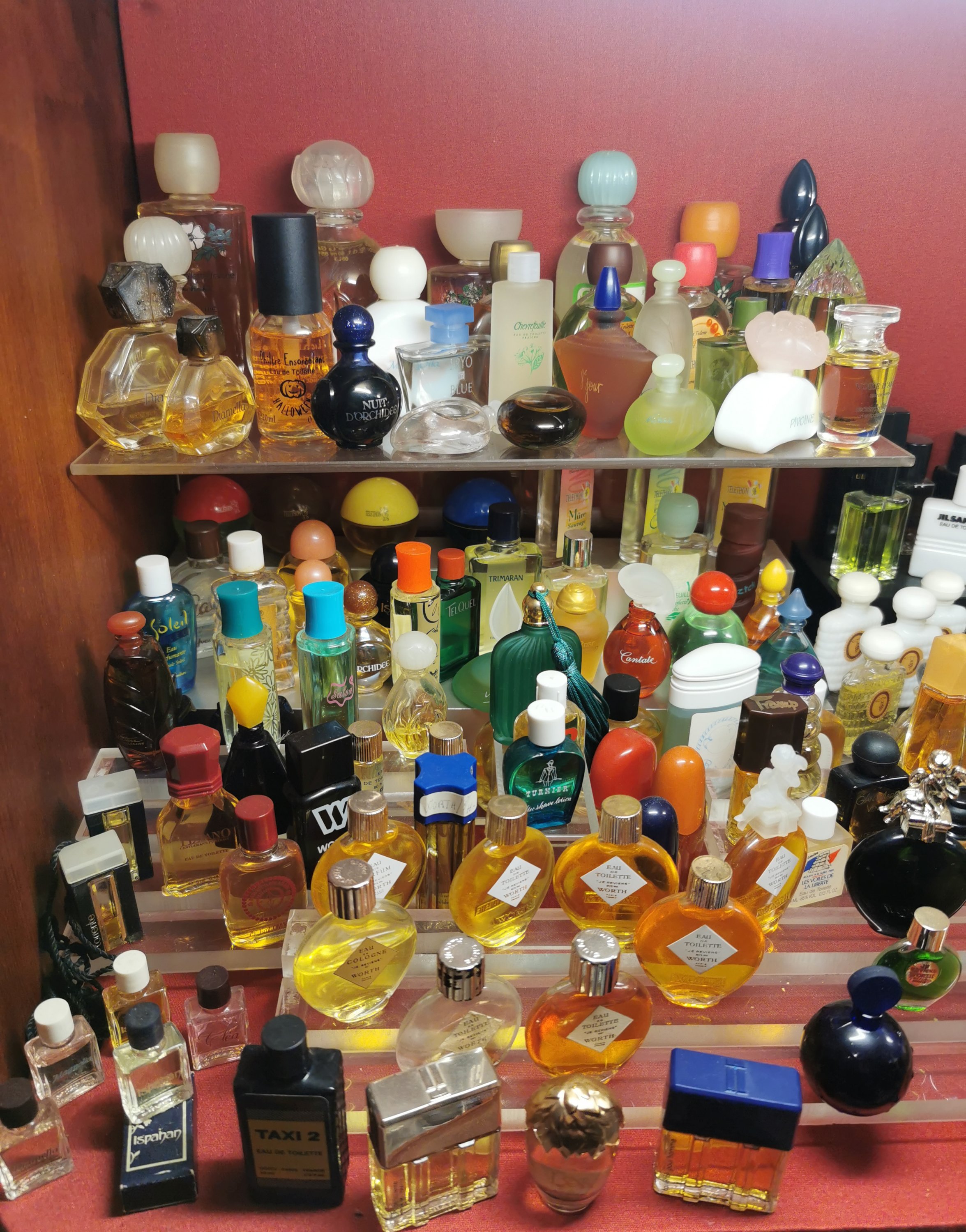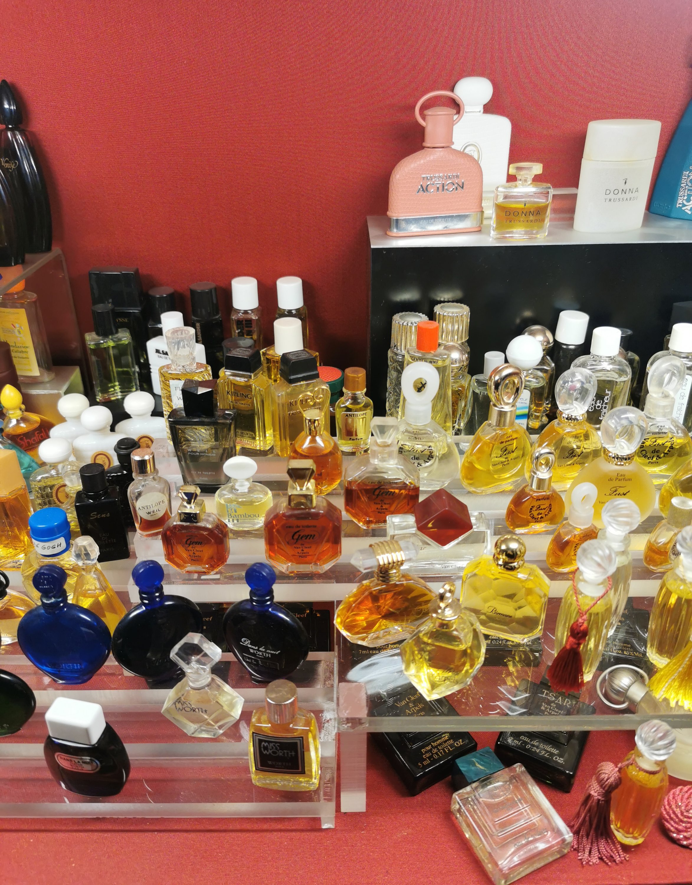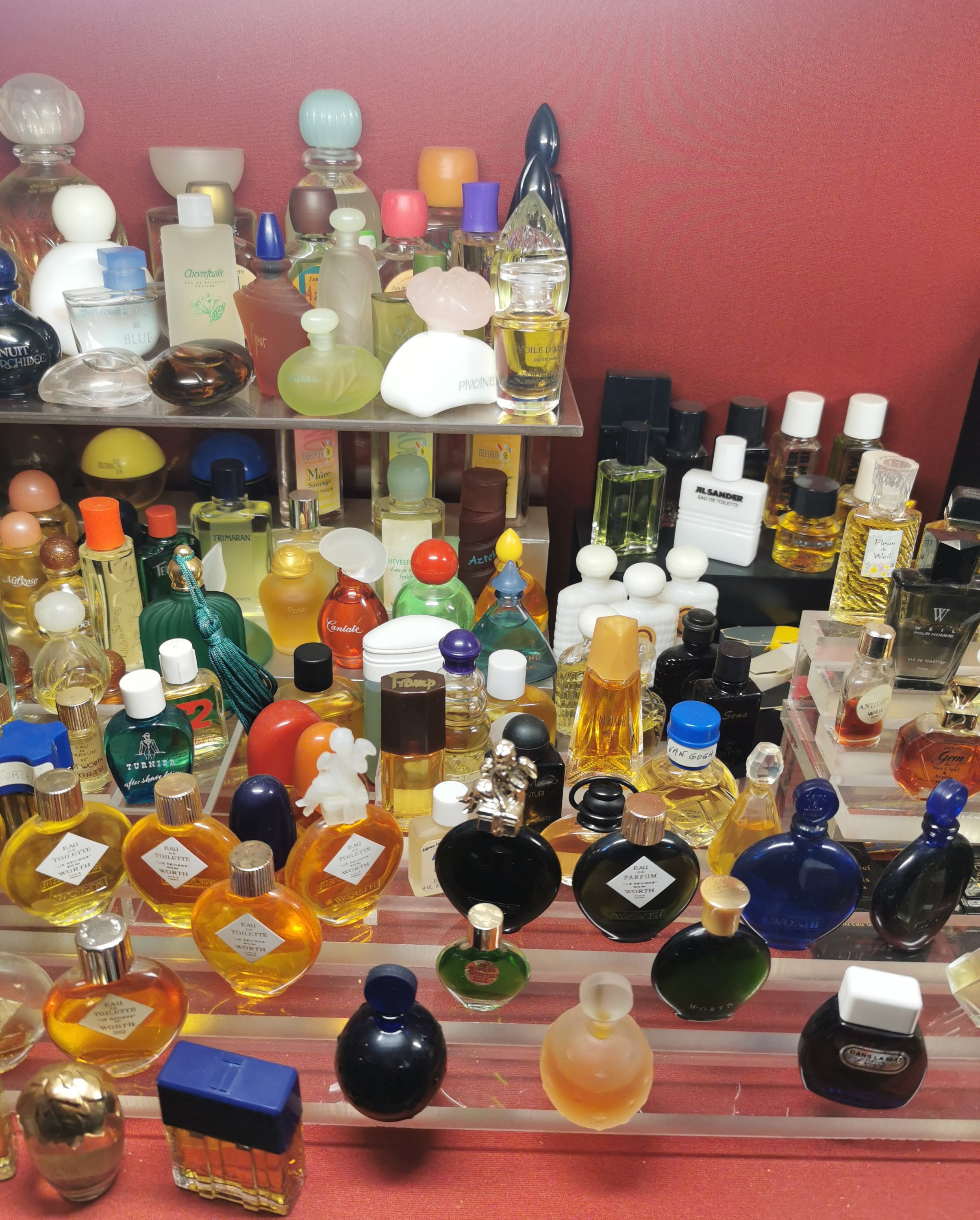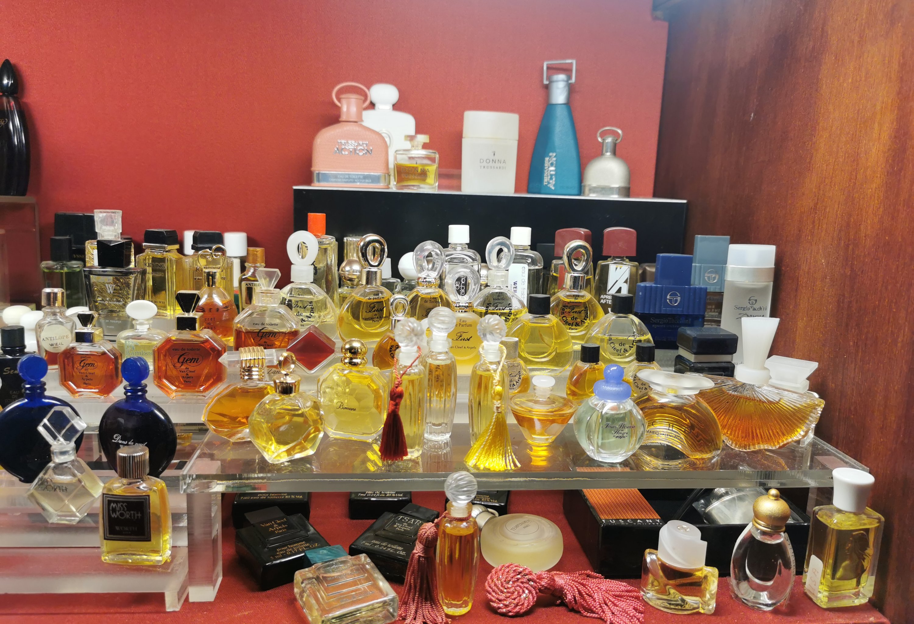 Assortiment d’environ 150 diminutifs parfums ou échantillons de parfums, la plupart avec leur étui carton titré.