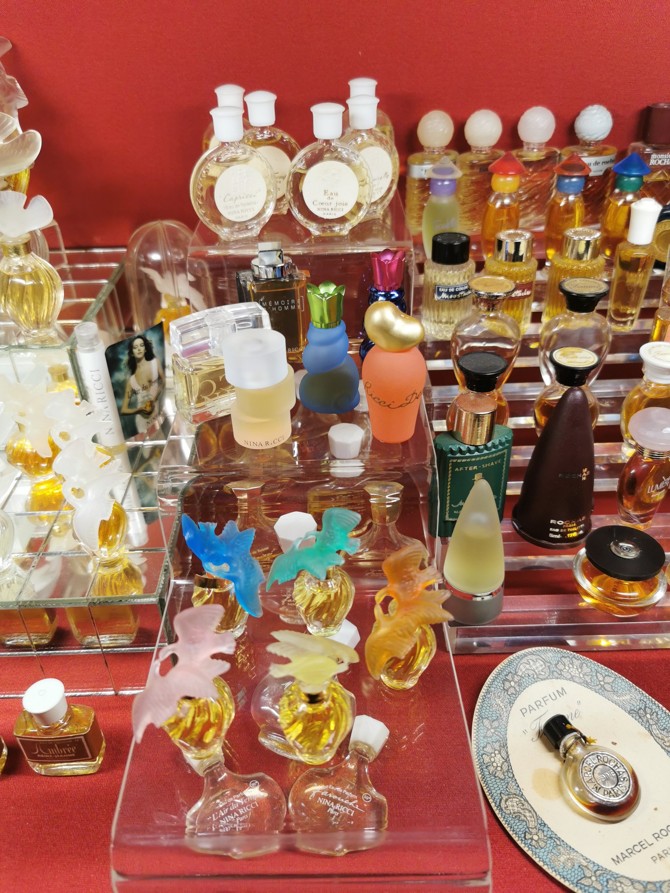 Assortiment denviron 120 diminutifs parfums ou échantillons de parfums, la plupart avec leur étui carton titré.