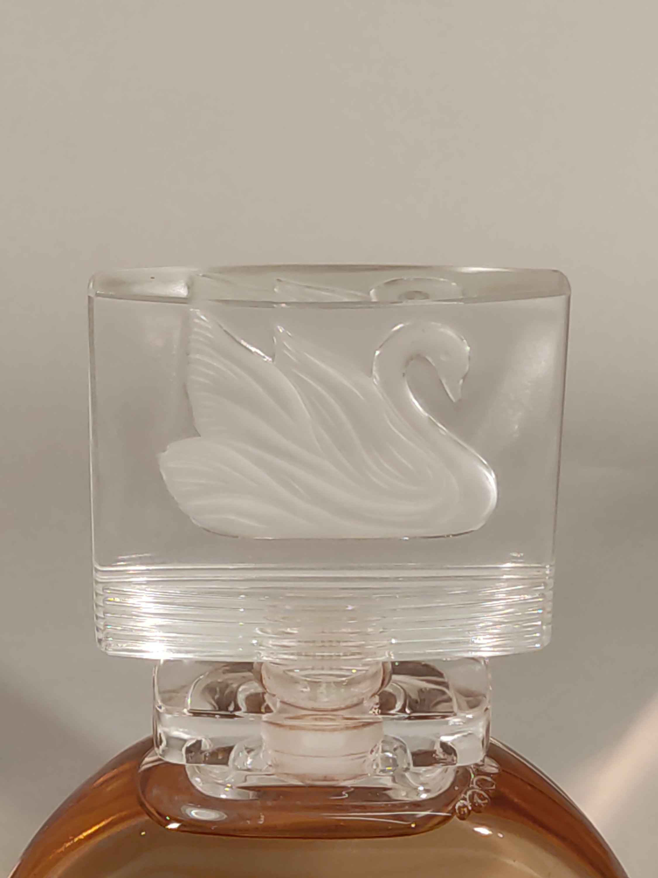 Flacon publicitaire décoratif en verre incolore pressé moulé.