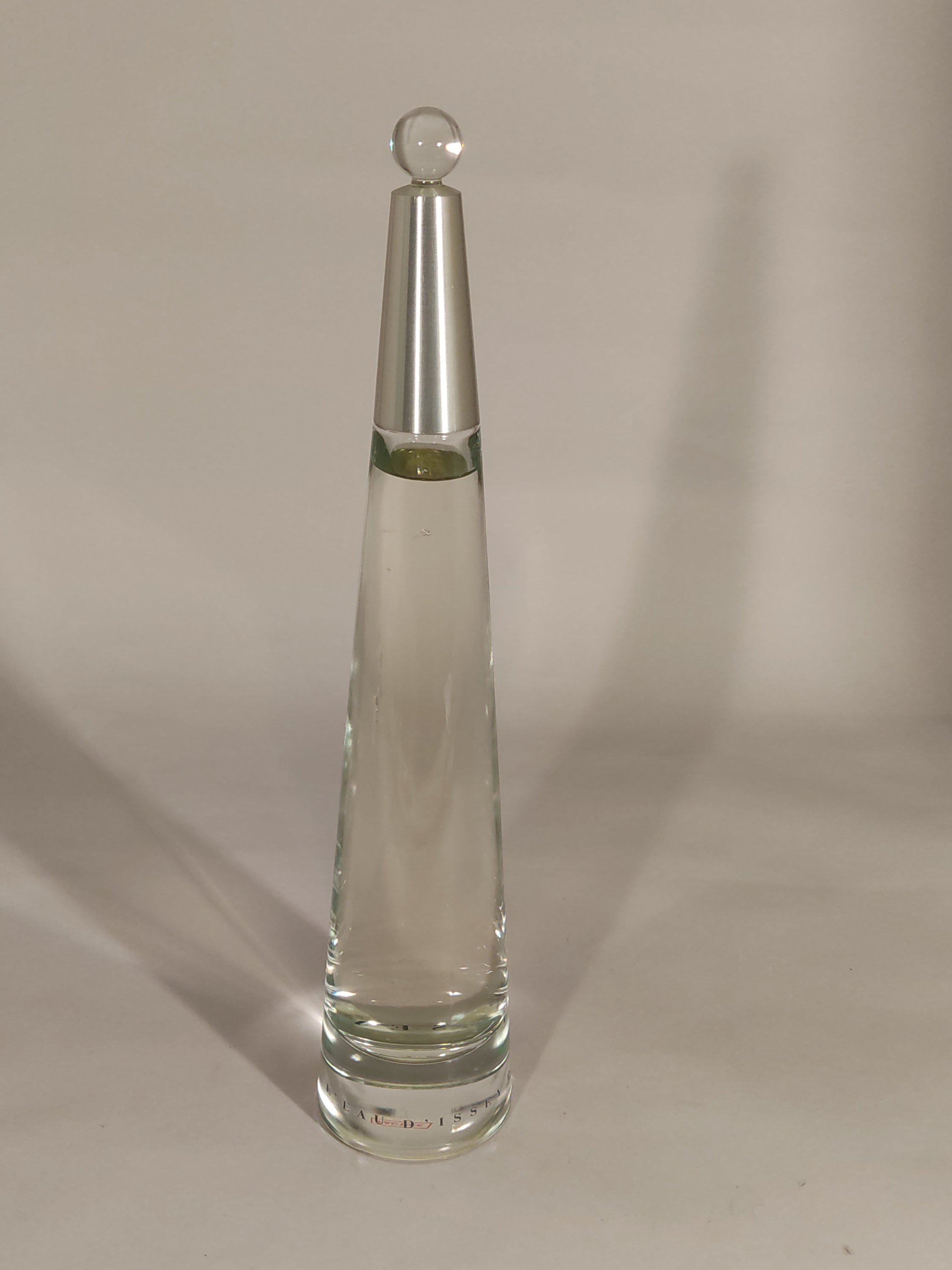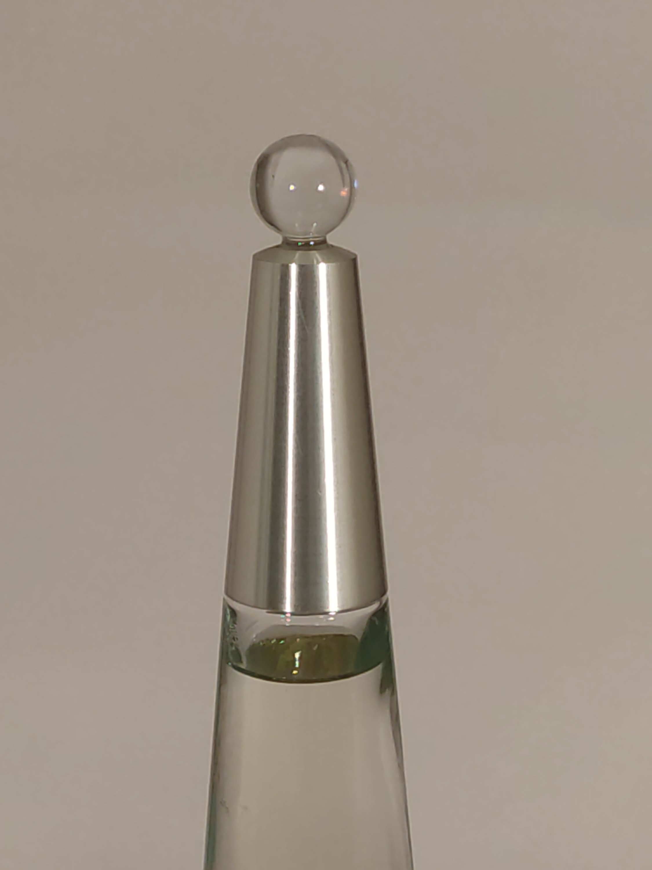 Flacon publicitaire décoratif en verre incolore pressé moulé et zamak argent mamti.