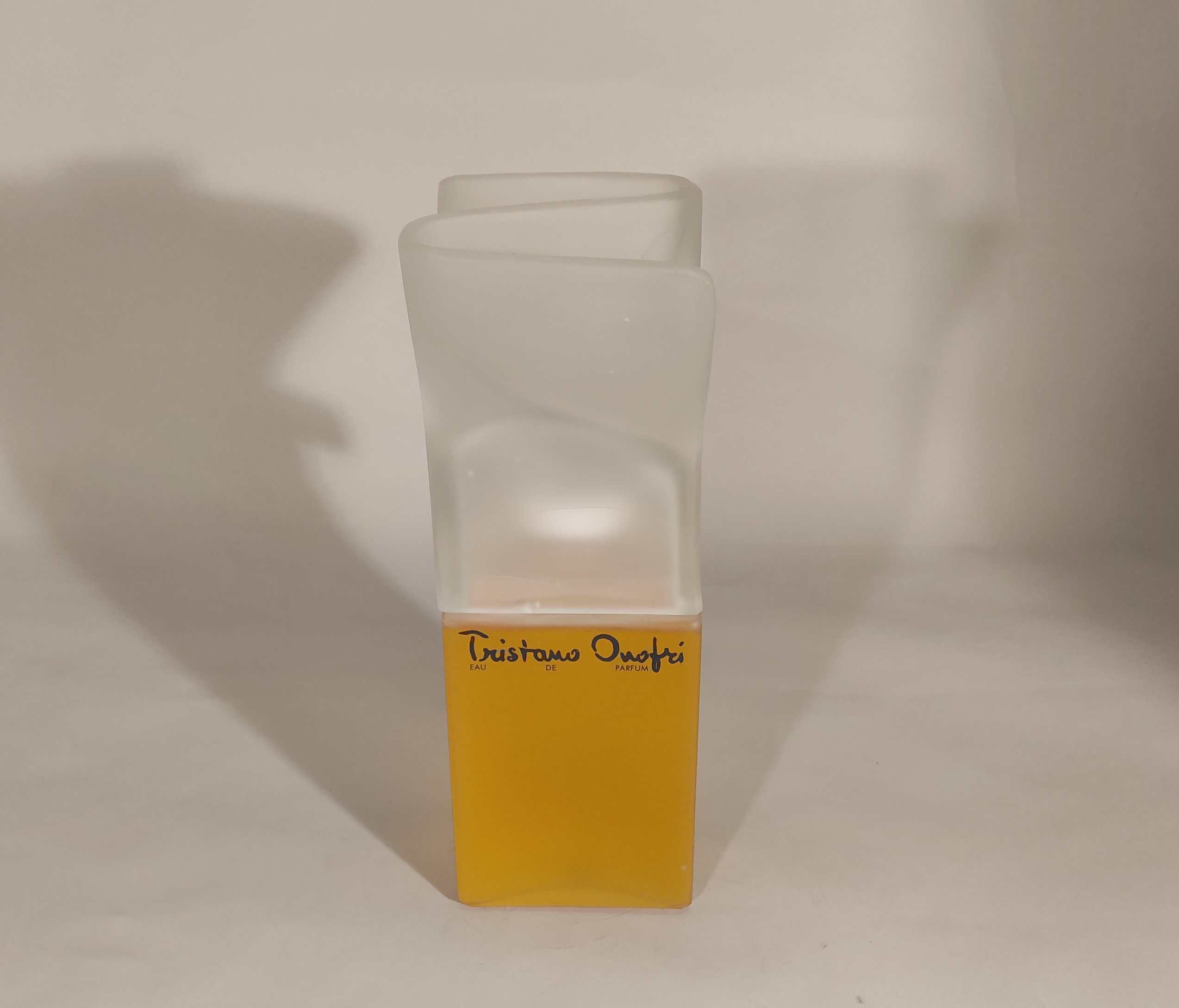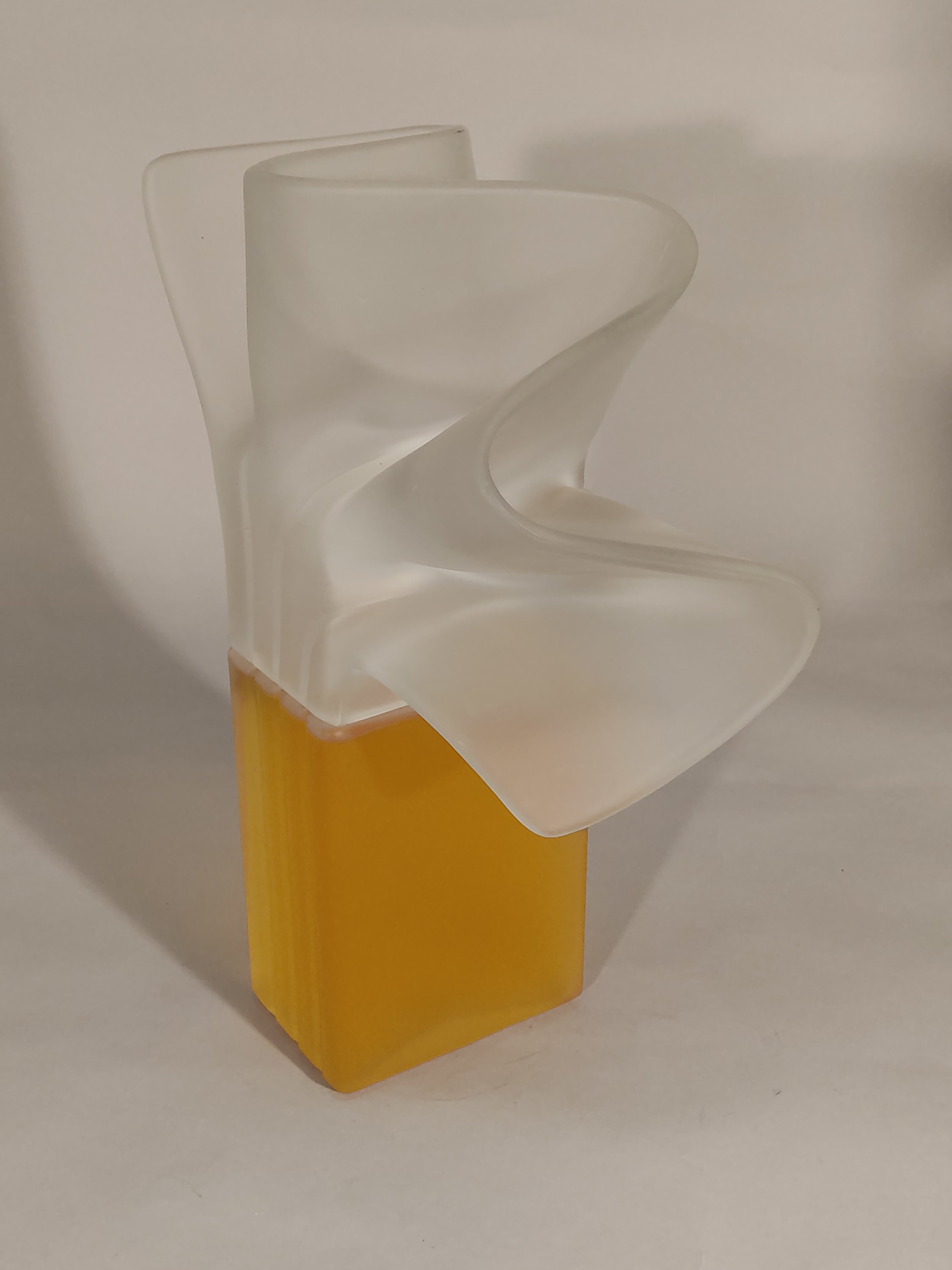 Flacon publicitaire décoratif en verre incolore dépoli et Surlyn dessiné par Serge Mansau.
