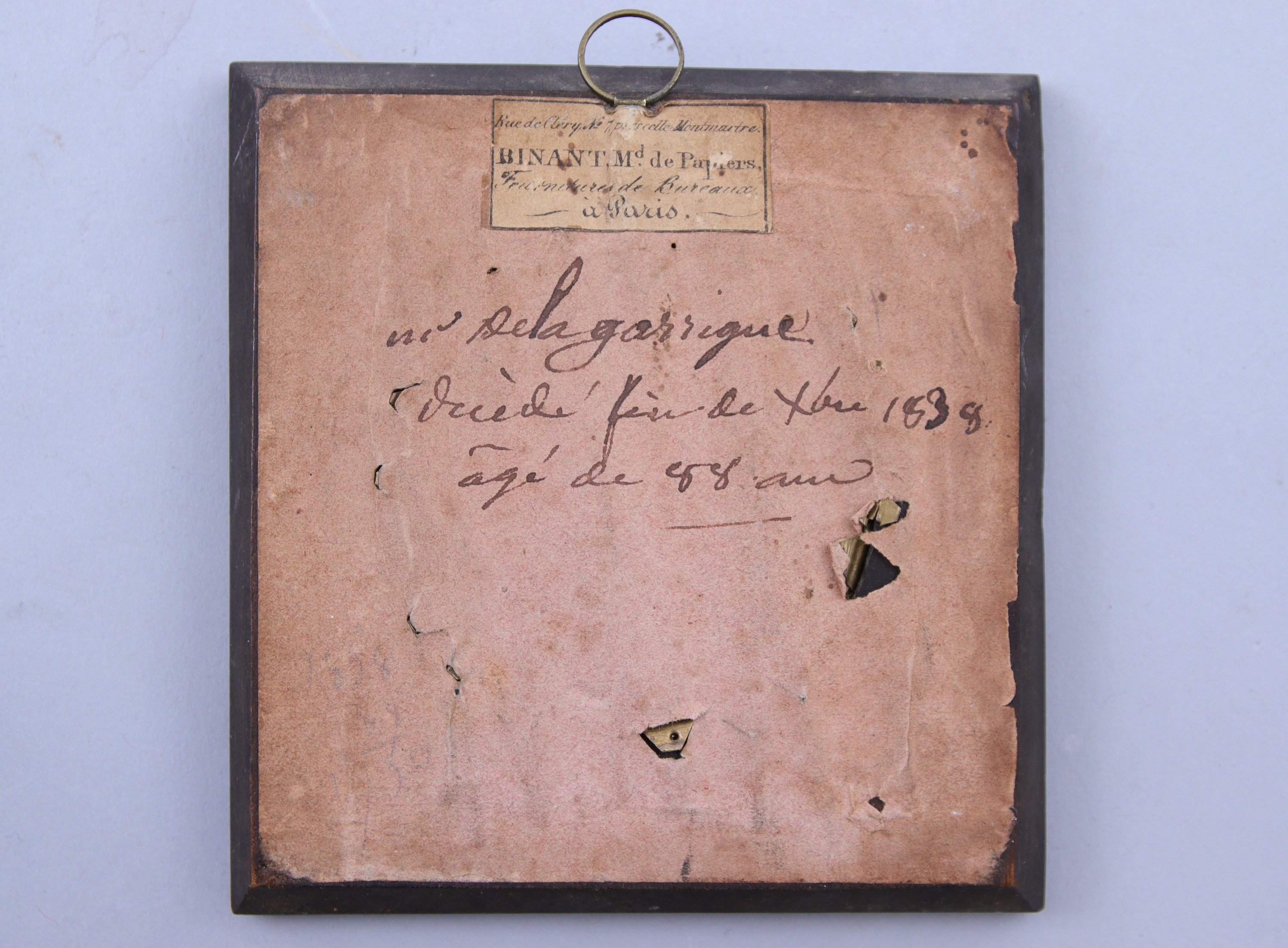 Joint: Attribué à Gilles-Louis Chrétien, Portrait dun homme de profil, gravure. Indication au "Delagarrigue / décédé fin de Xbre 1838 / âgé de 88 ans". Diam. 6 cm. (à vue)