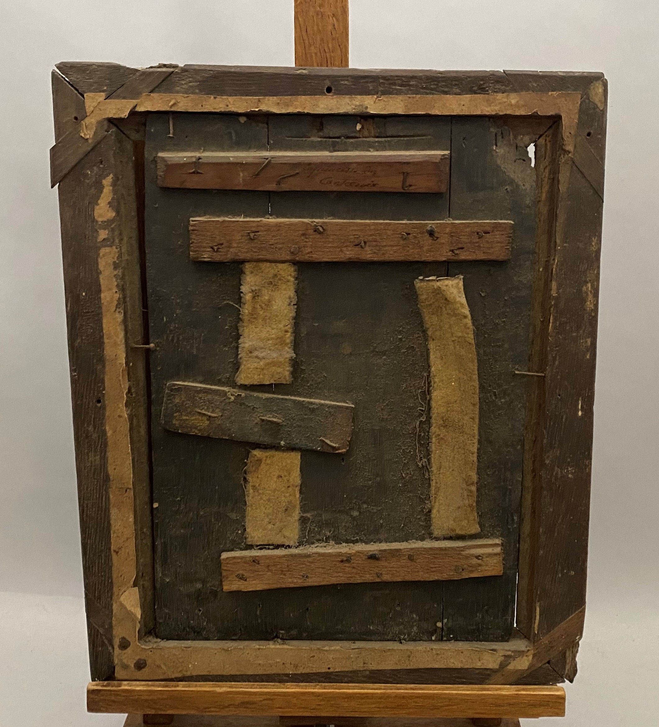 Panneau de chêne renforcé. Joli cadre Louis XIII. Inscription au revers: " La princesse de Cantecroix".