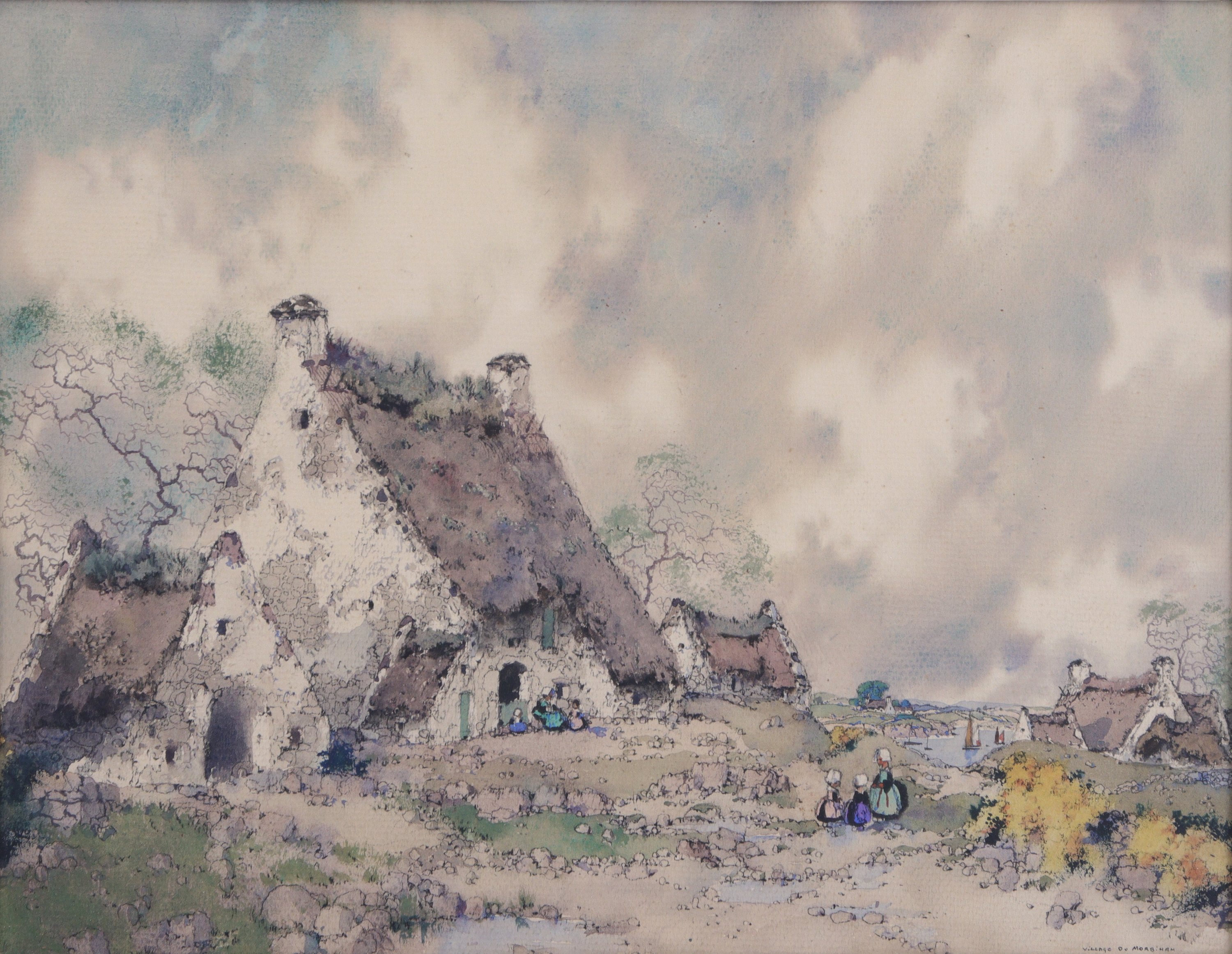 Ernest Pierre Guérin (France, 1887-1952)"Village du Morbihan. Bretagne"Aquarelle gouachée. Titrée...