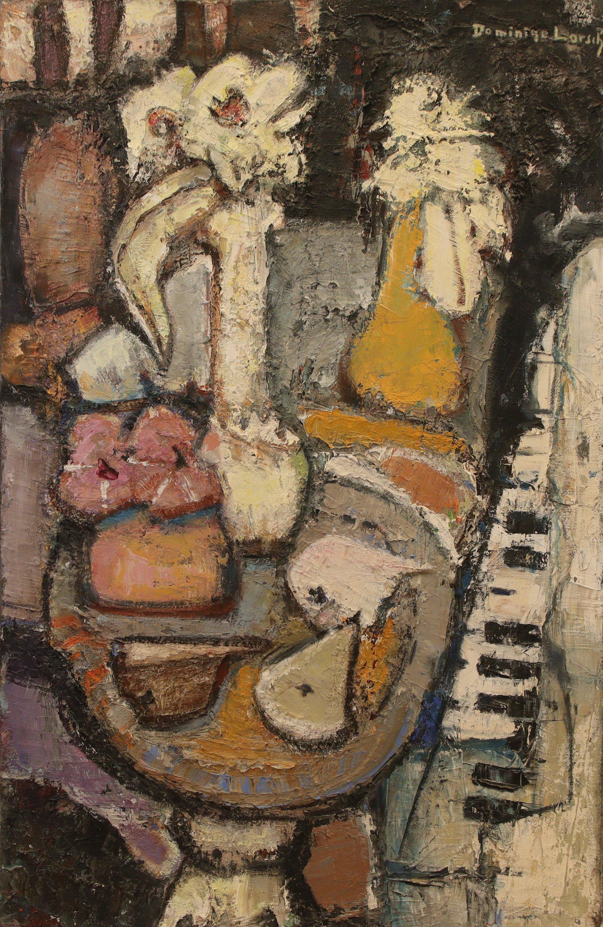 Dominique Lorsch (Français, ? -1990)Nature morte au pianoToile.Signée en haut...