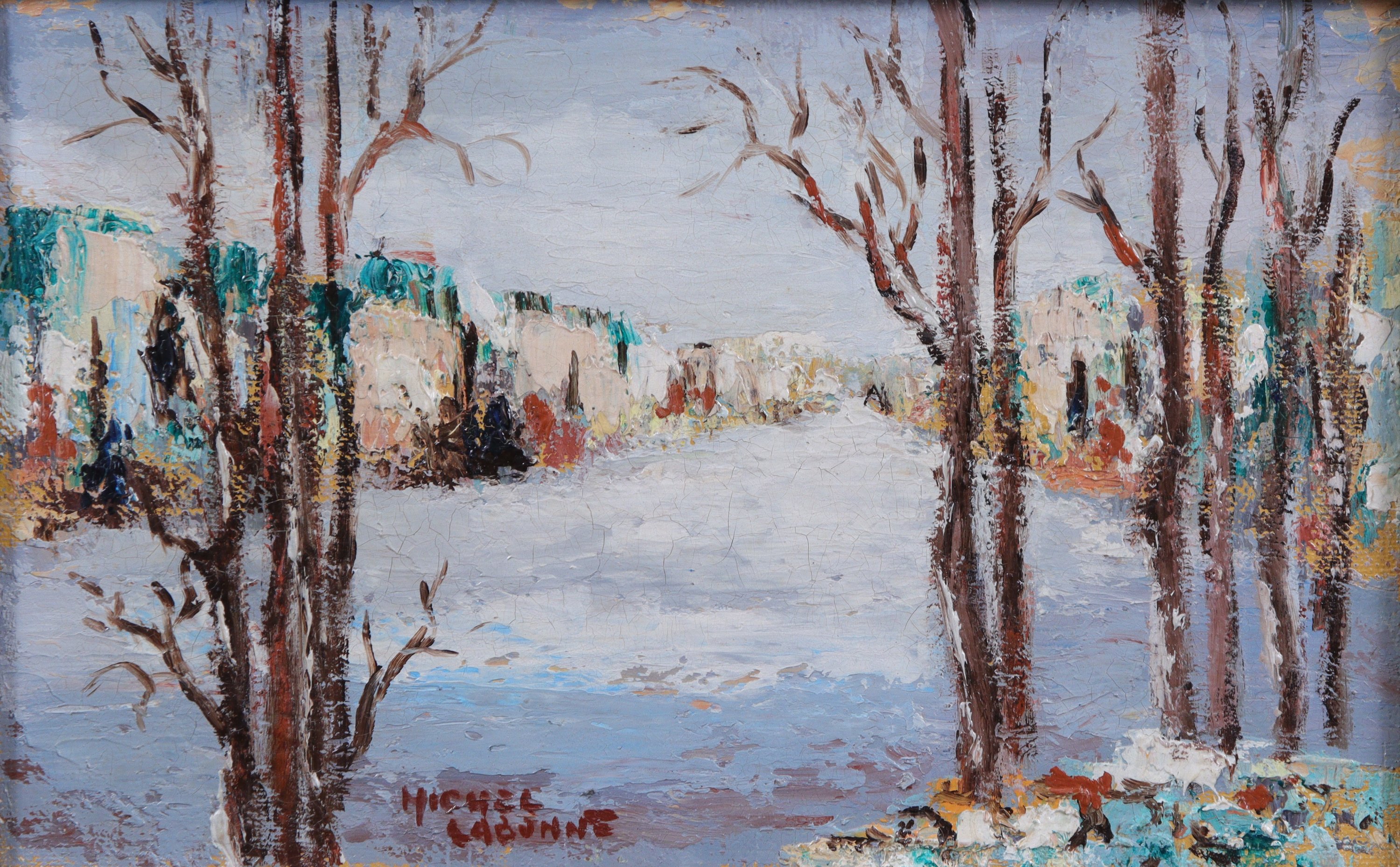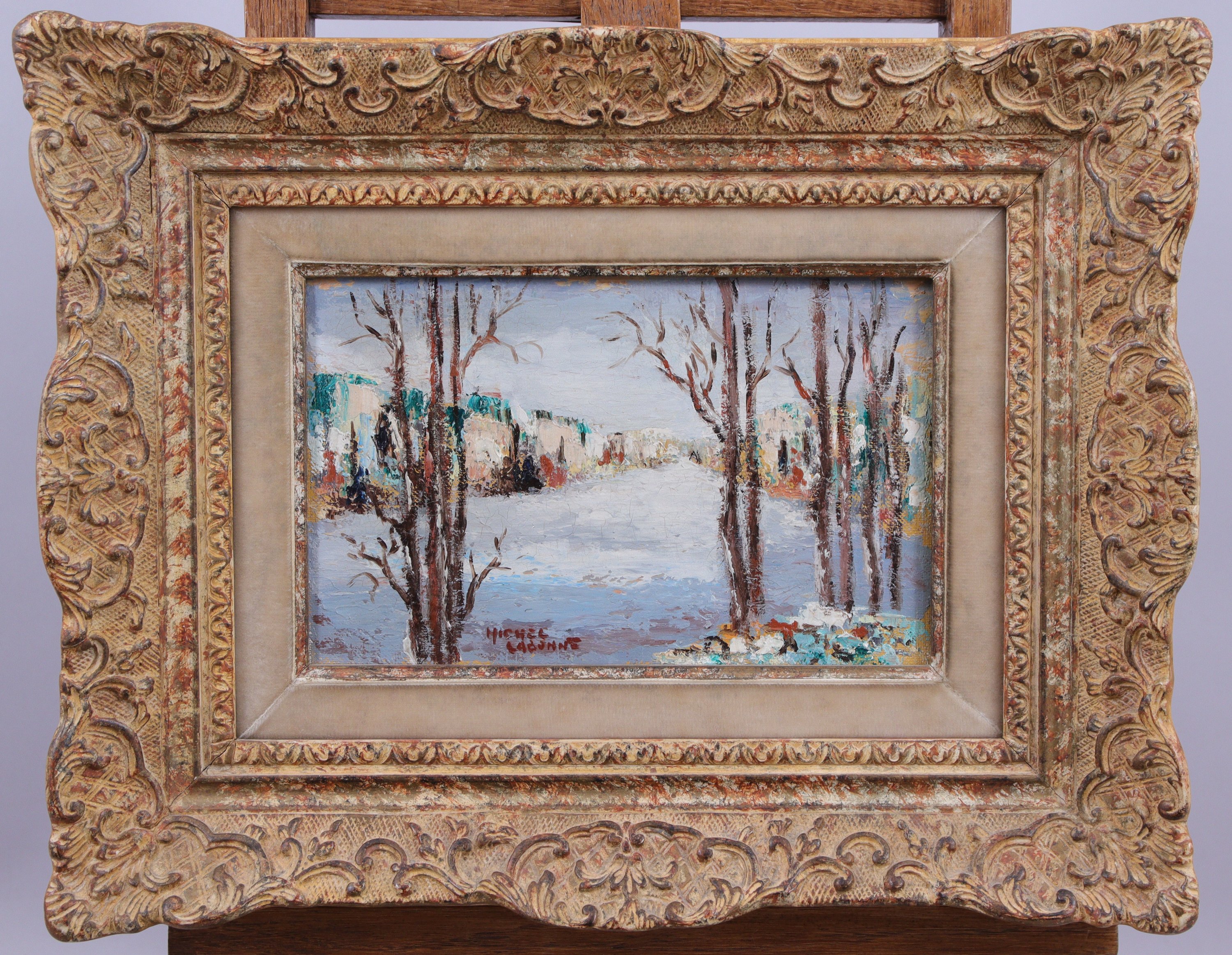 Michel Labonne (Français, 1912-1990)Paysage enneigéToile. Signée en bas à droite....