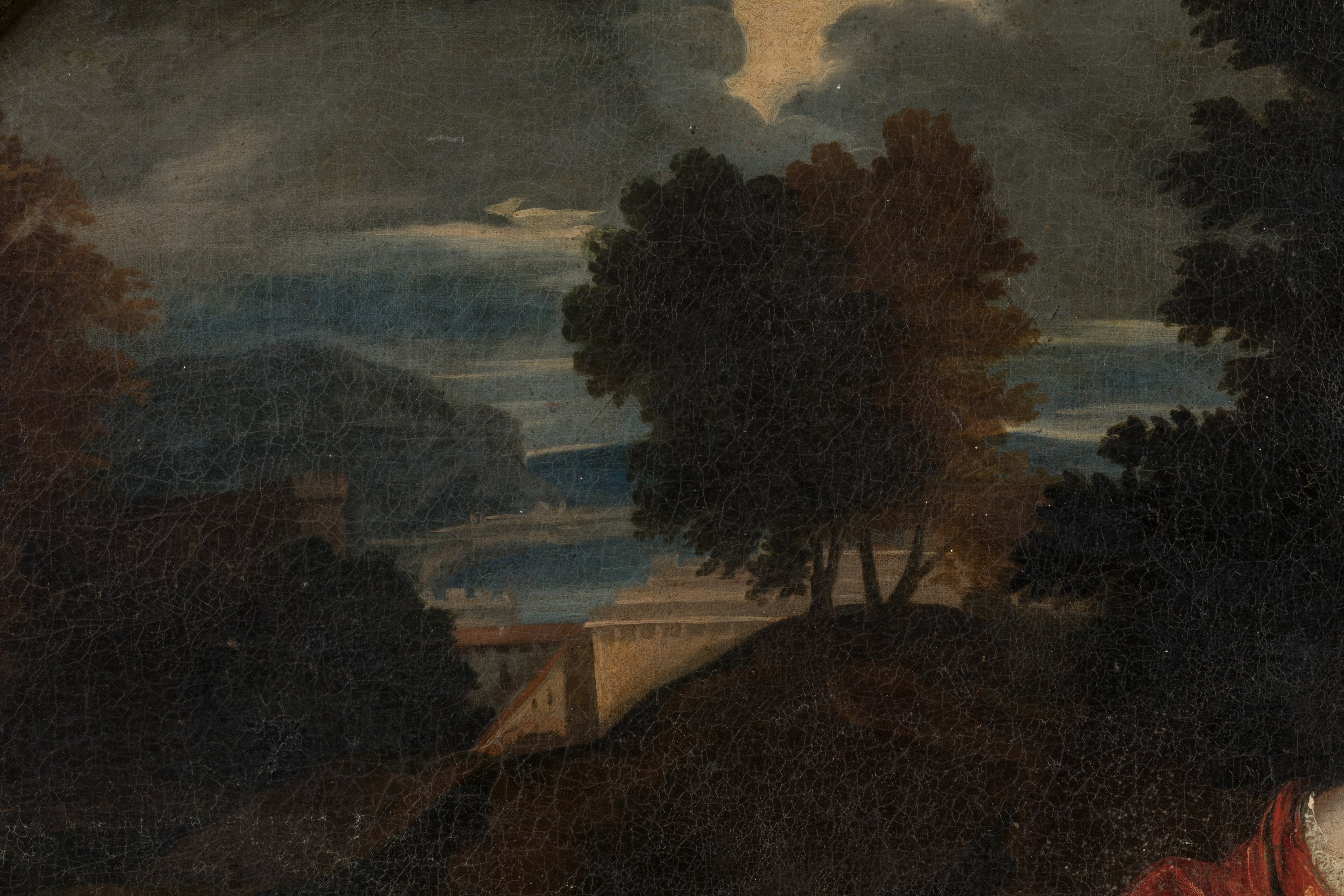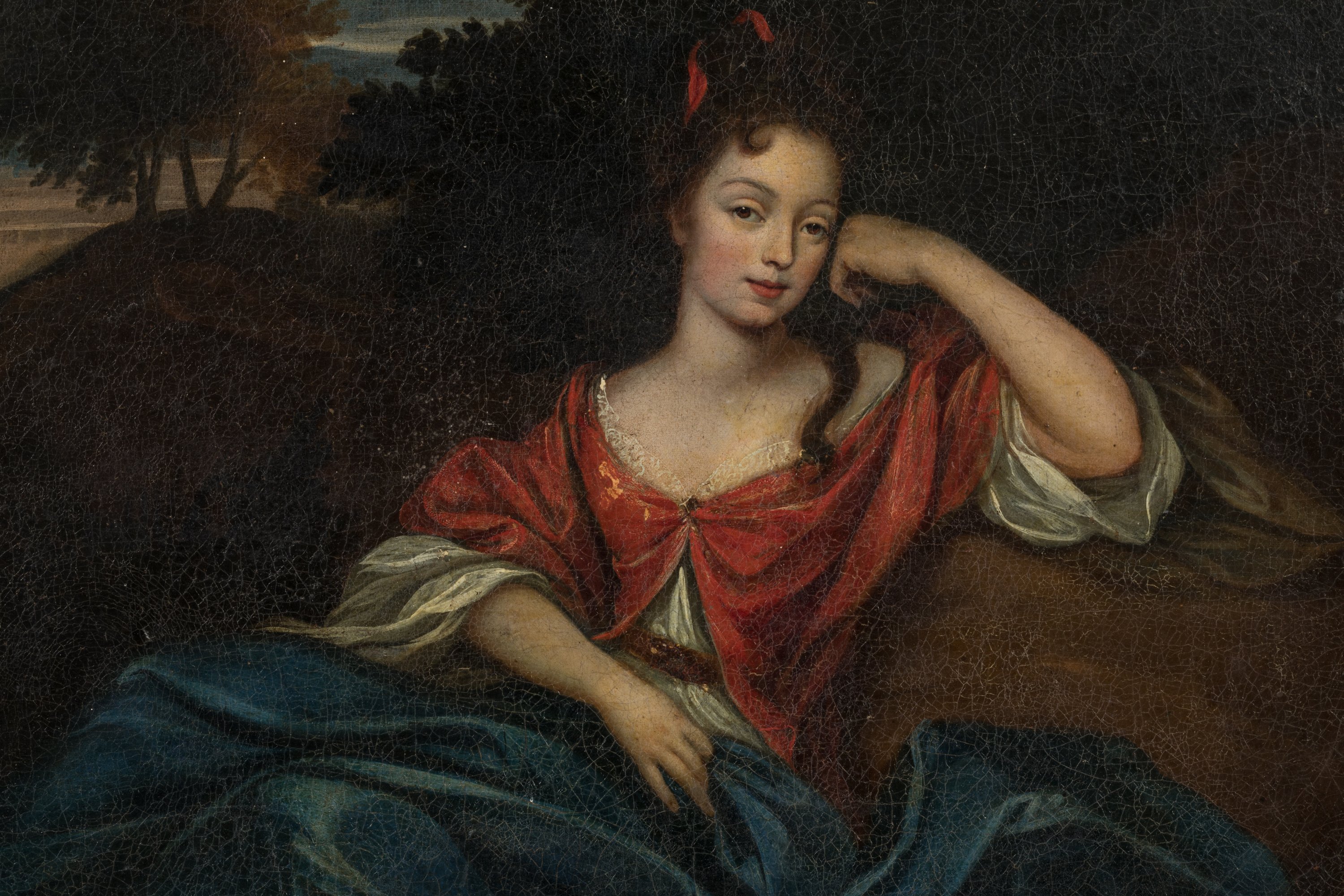 Two oval portraits of youngs ladies in a landscape attributed to Henri Gascard. In Louis XIV period carved giltwood frames.