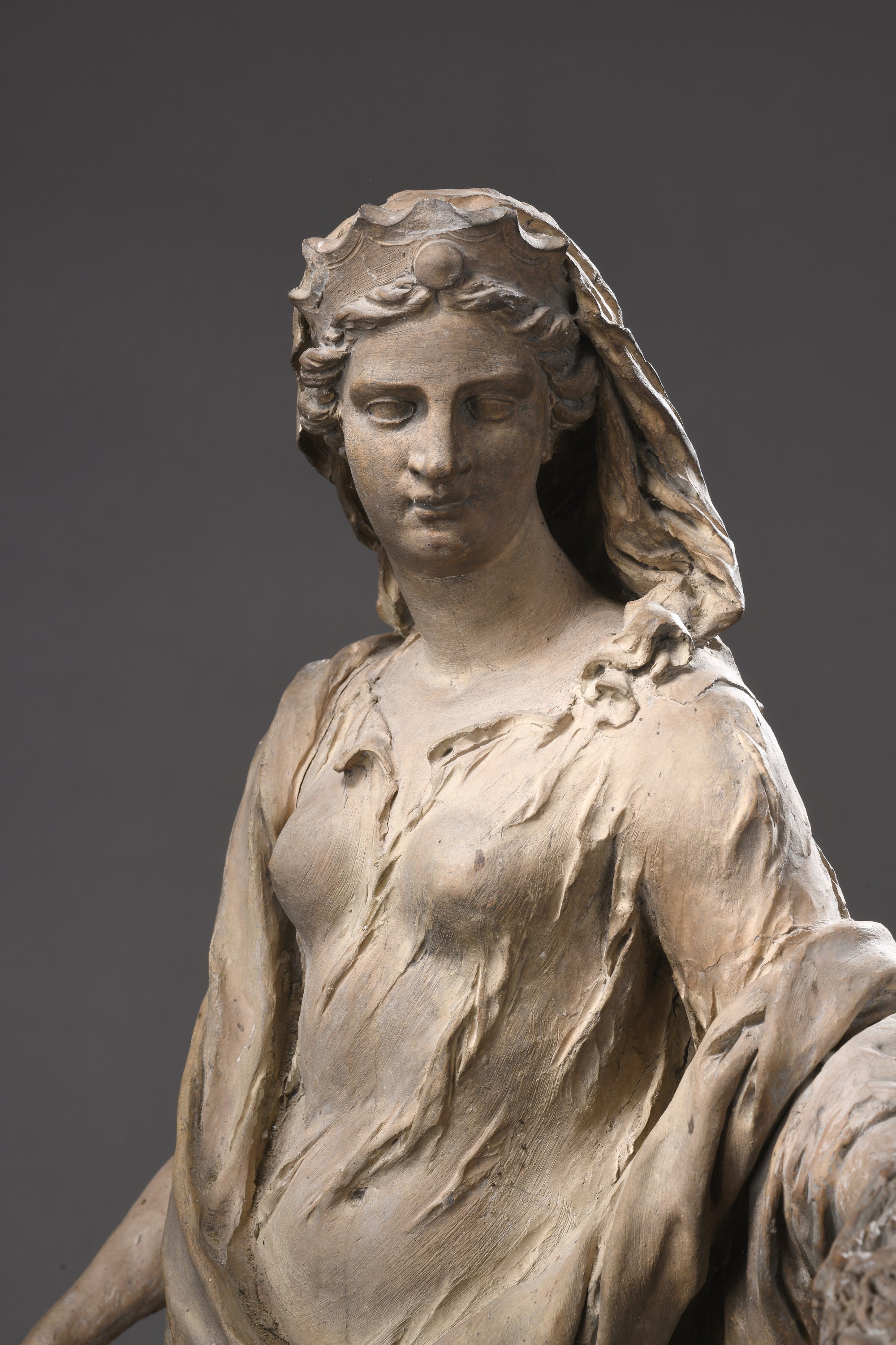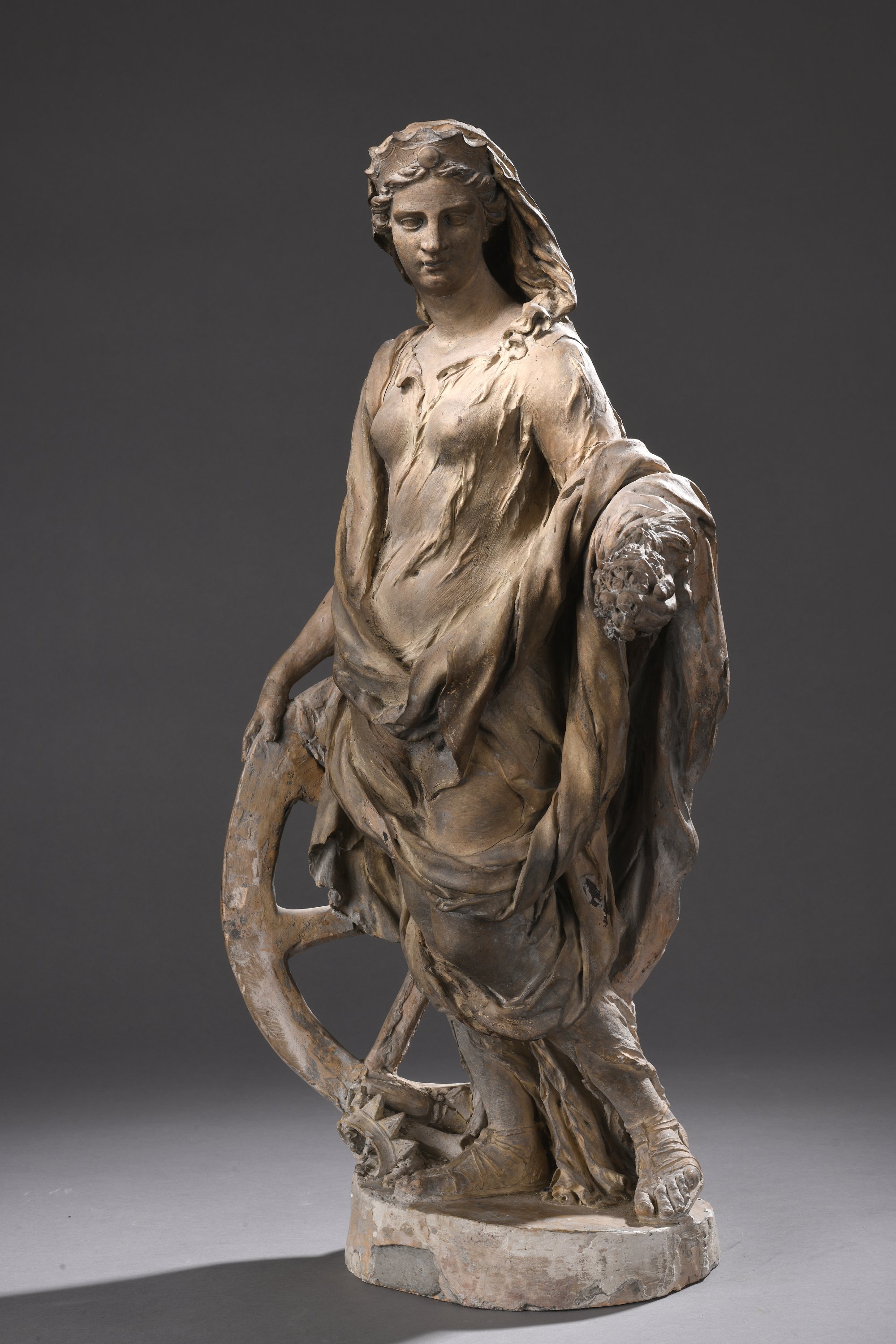École française vers 1700Sainte Catherine d'AlexandrieStatuette en terre cuite originaleHaut....