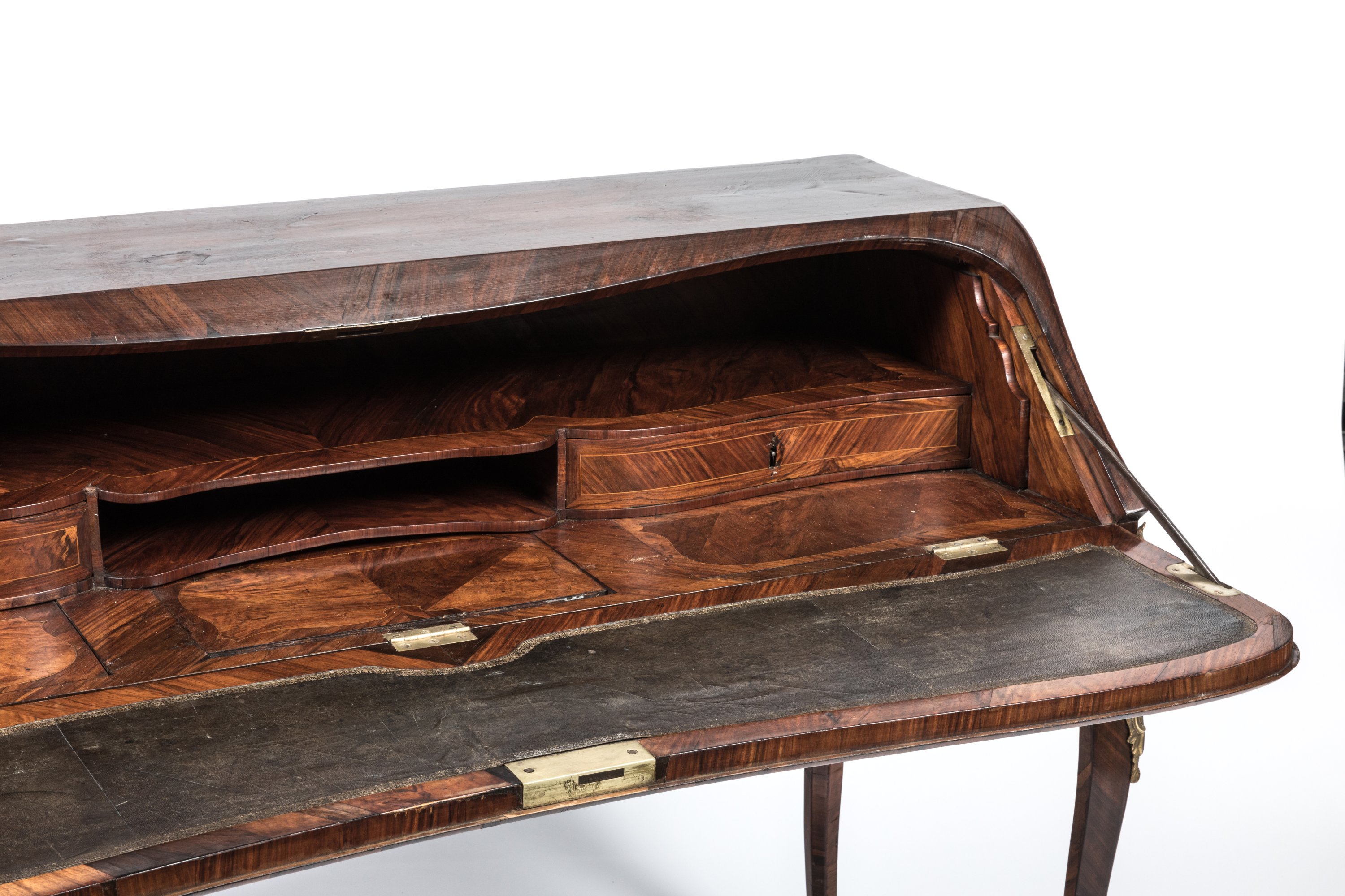 Louis XV Period. A palissander veneered slant-top desk by Christophe Wolff. Gilt bronze ornaments.