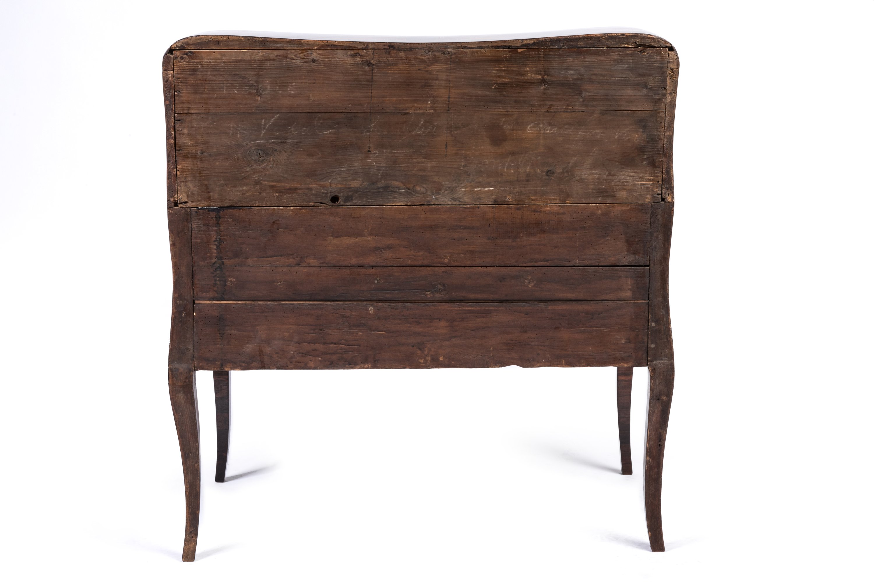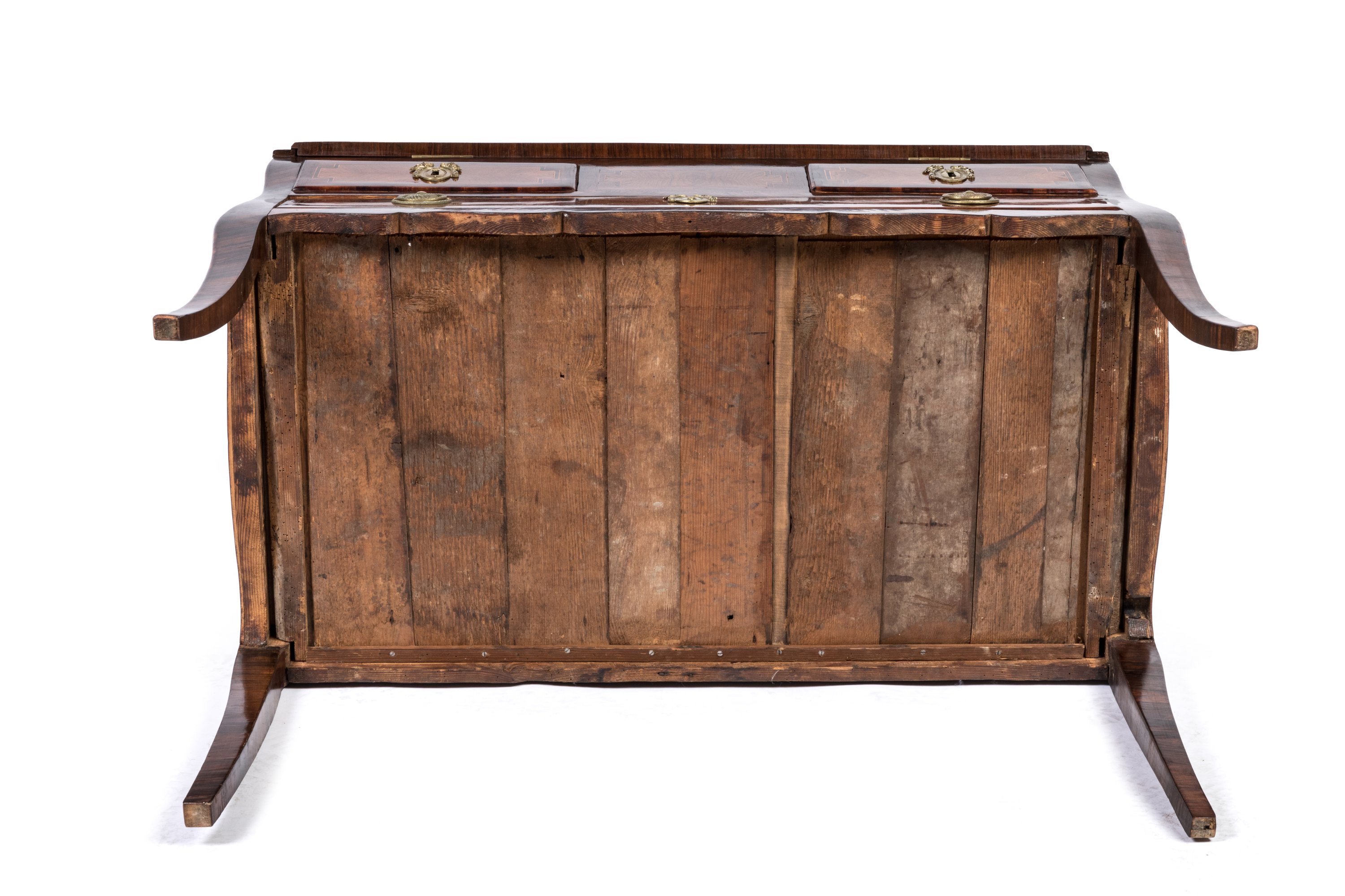 Ornementation rapportée en bronze doré, comme entrées de serrure et poignées de tirage mobiles.